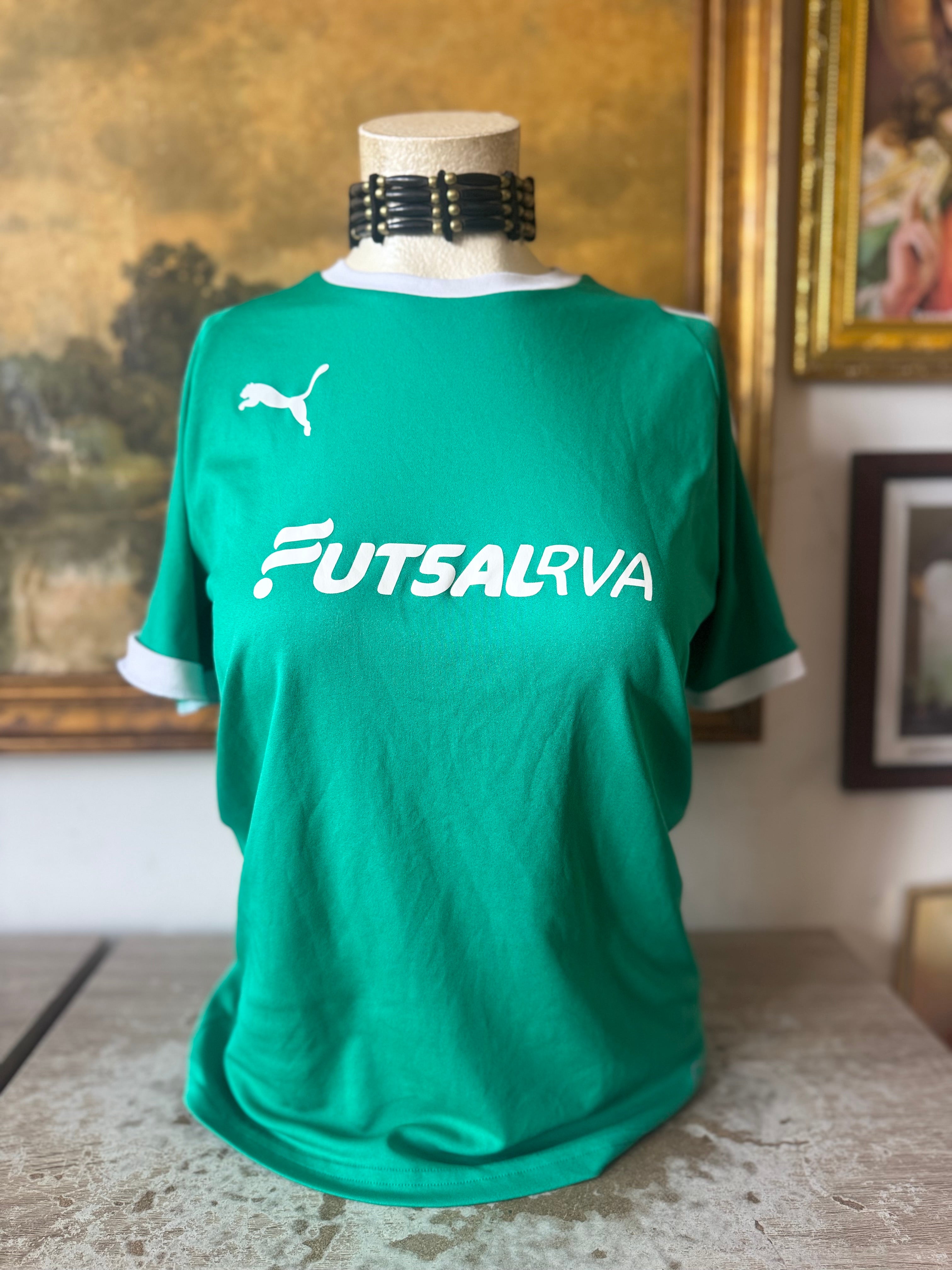 Description: Elevate your soccer game with the Puma Futsal RVA Soccer Jersey. Designed for sporty performance on the field, this size XL jersey is perfect for any soccer enthusiast. Its lightweight and breathable material allows for maximum mobility and comfort, giving you an edge over the competition. Get ready to dominate the game with Puma.