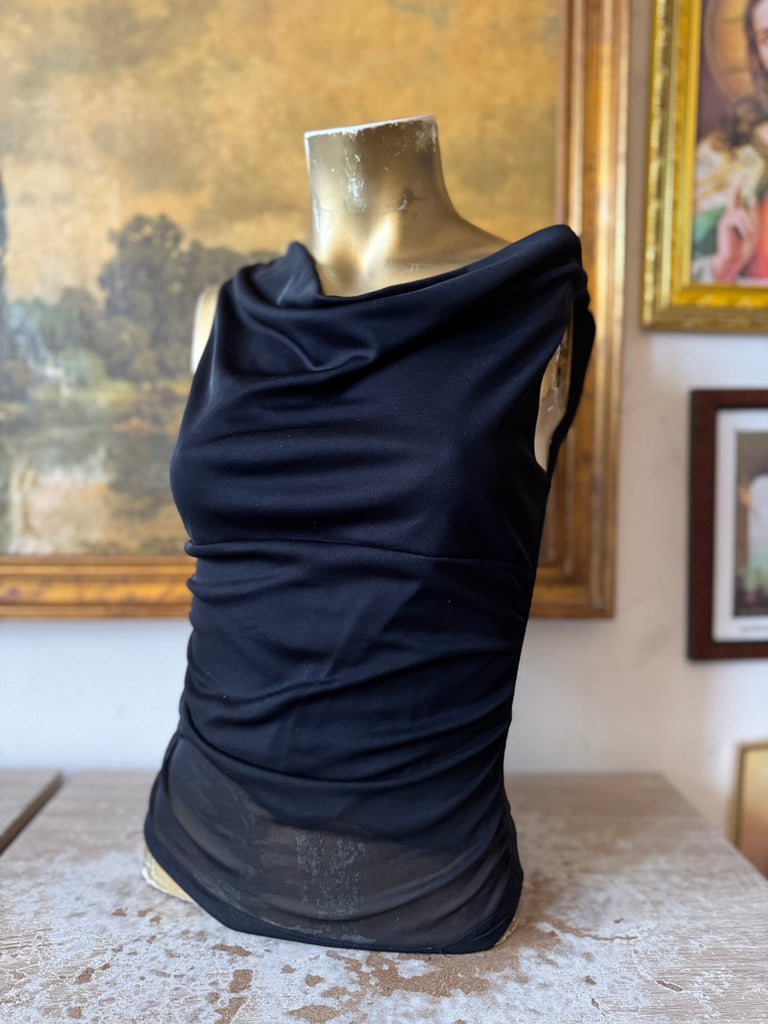 Y2K Black Velvet Accordion Zip Blouse w Exaggerated Sleeves Size Medium by Samuel Dong