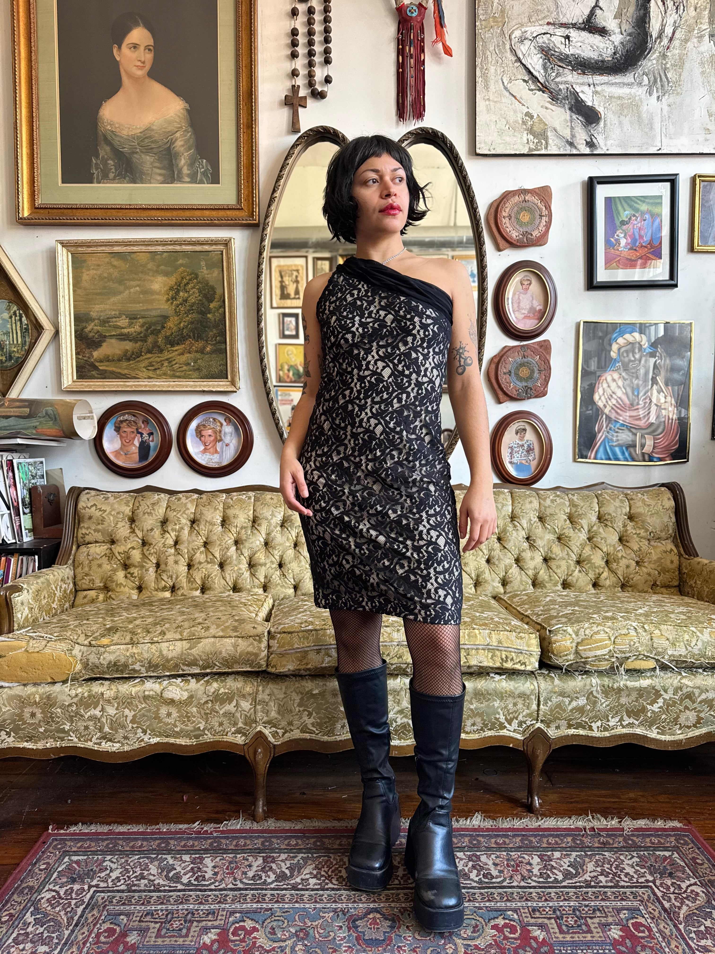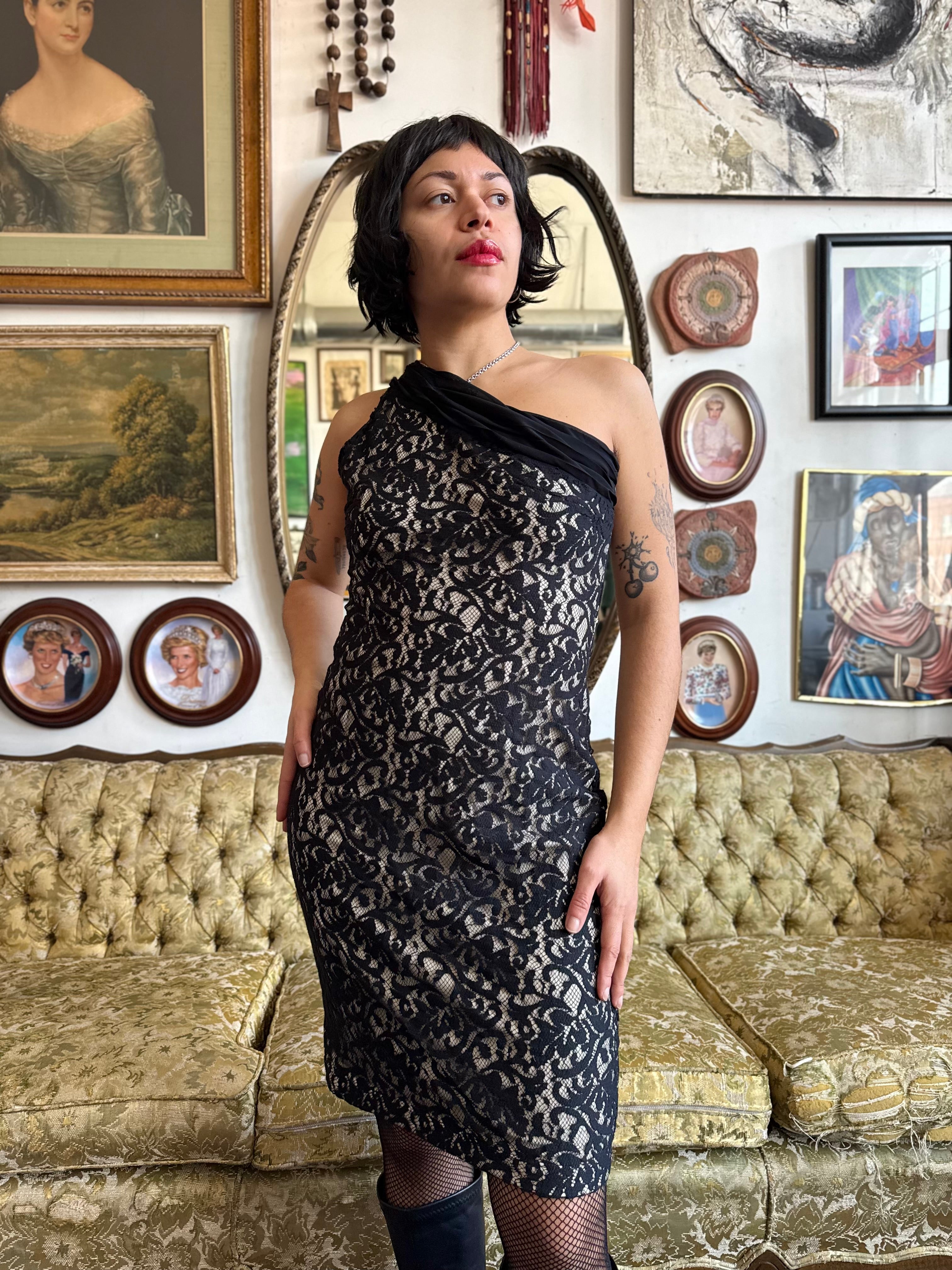 Y2K Rare Black and Lace One Sleeve Bodycon Mini Dress XS/0 by Limited