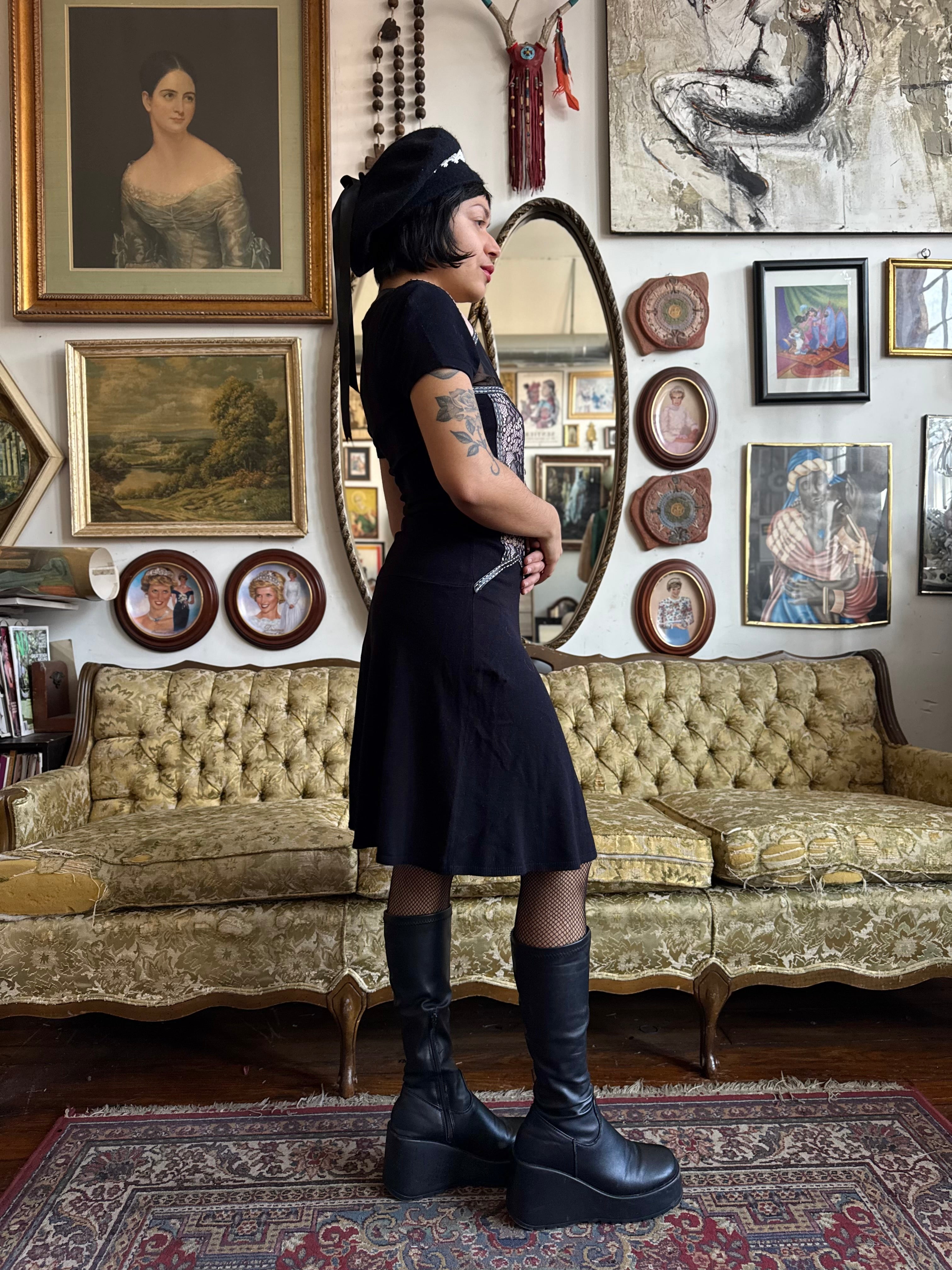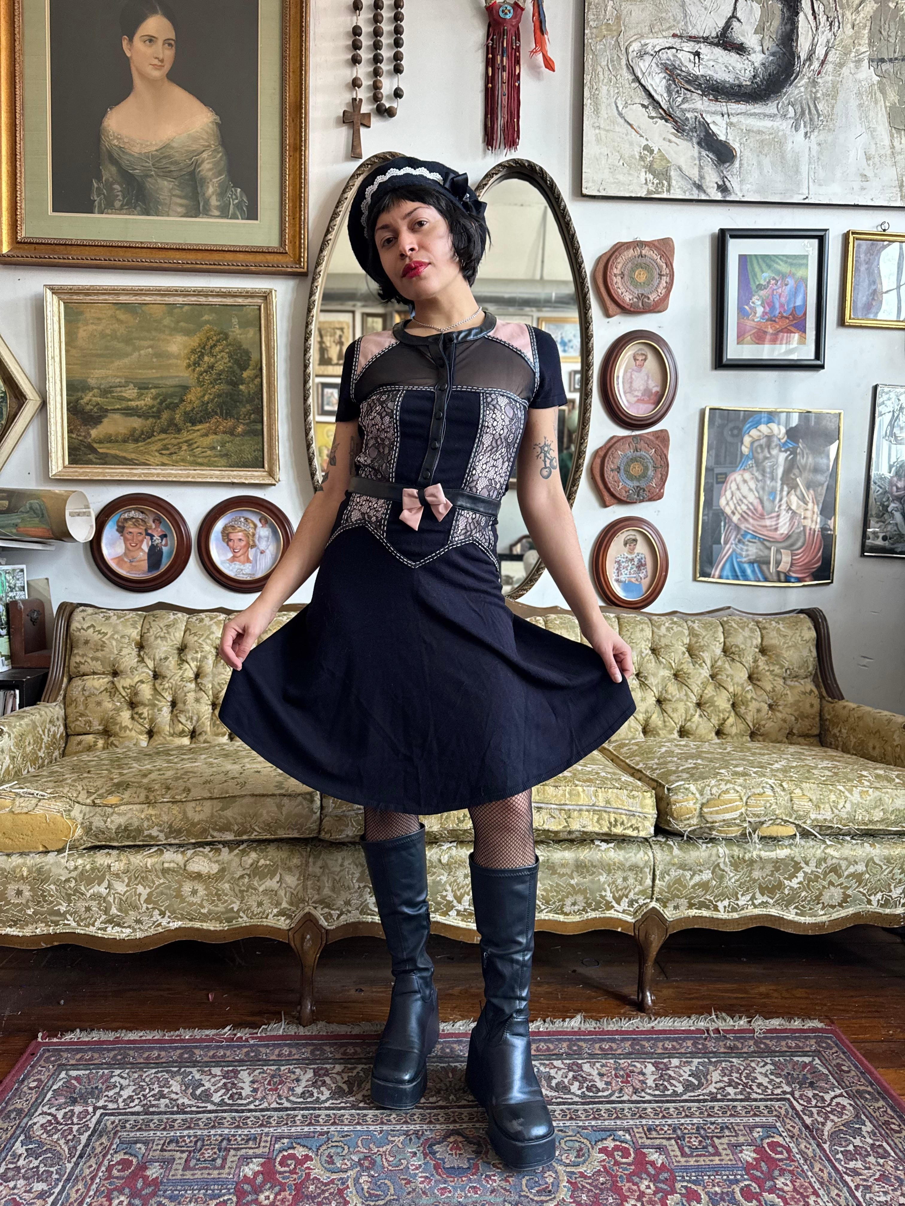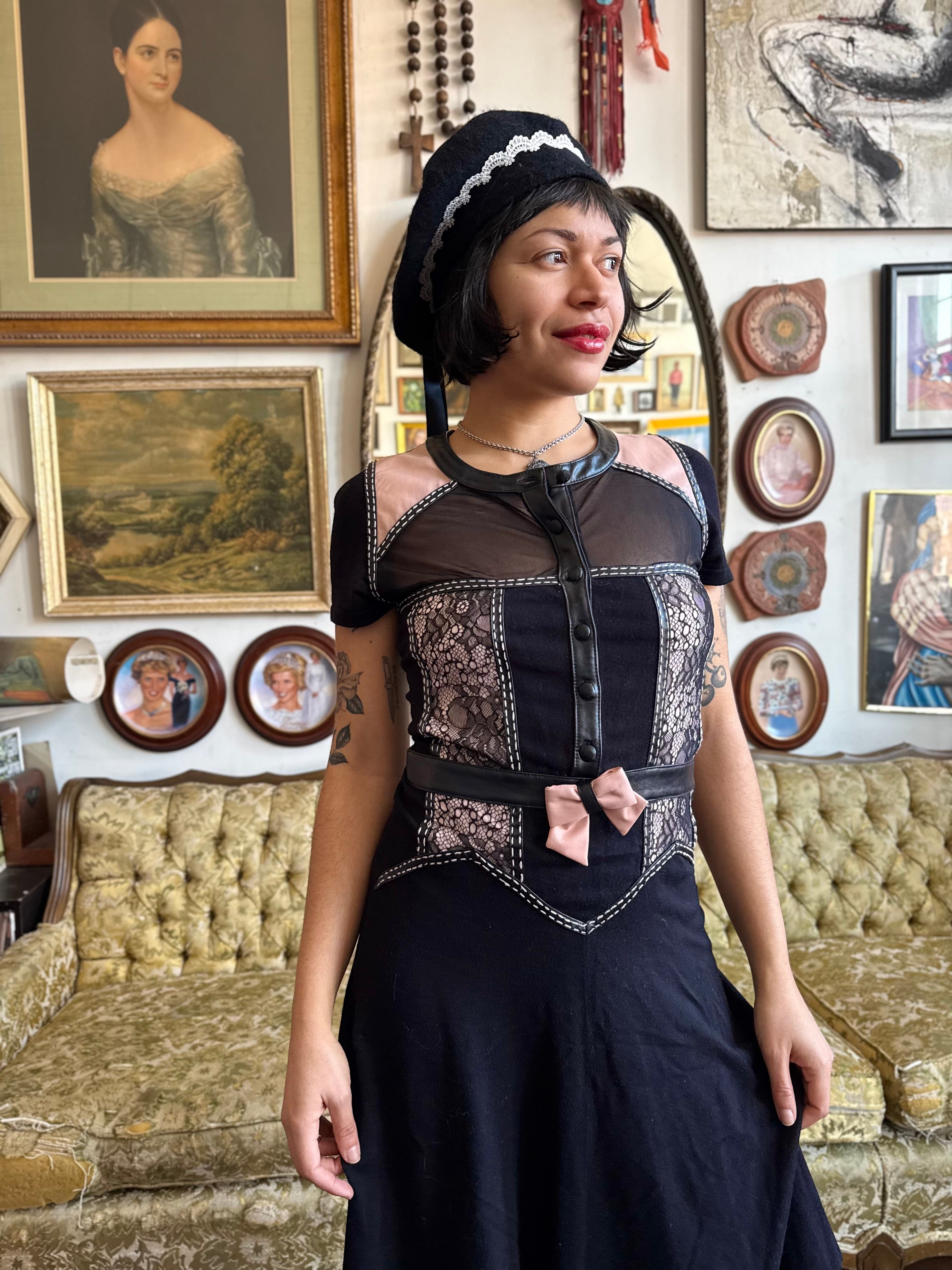 Y2K Princess of Darkness Pink and Lace Midi Dress Size S/M