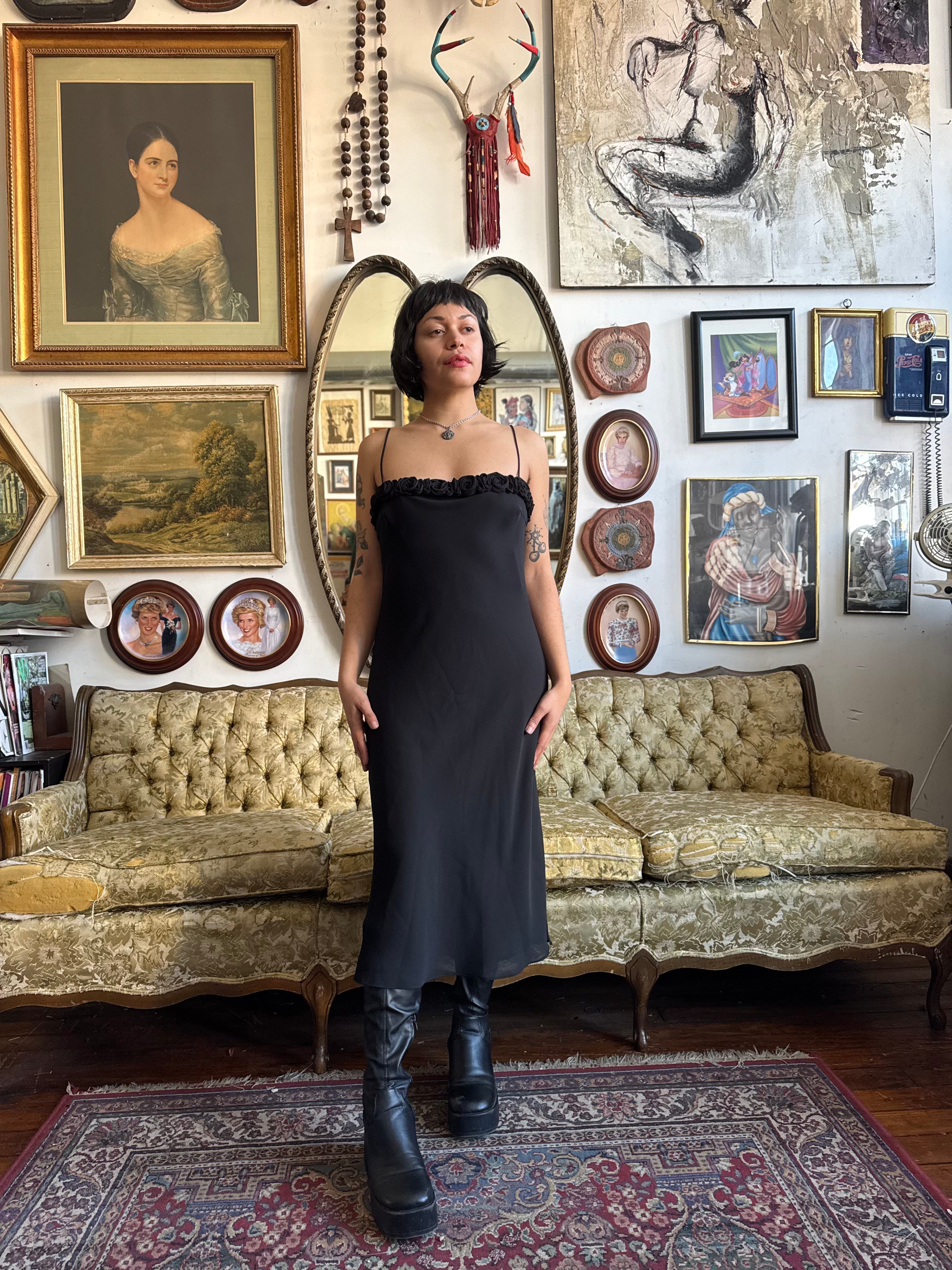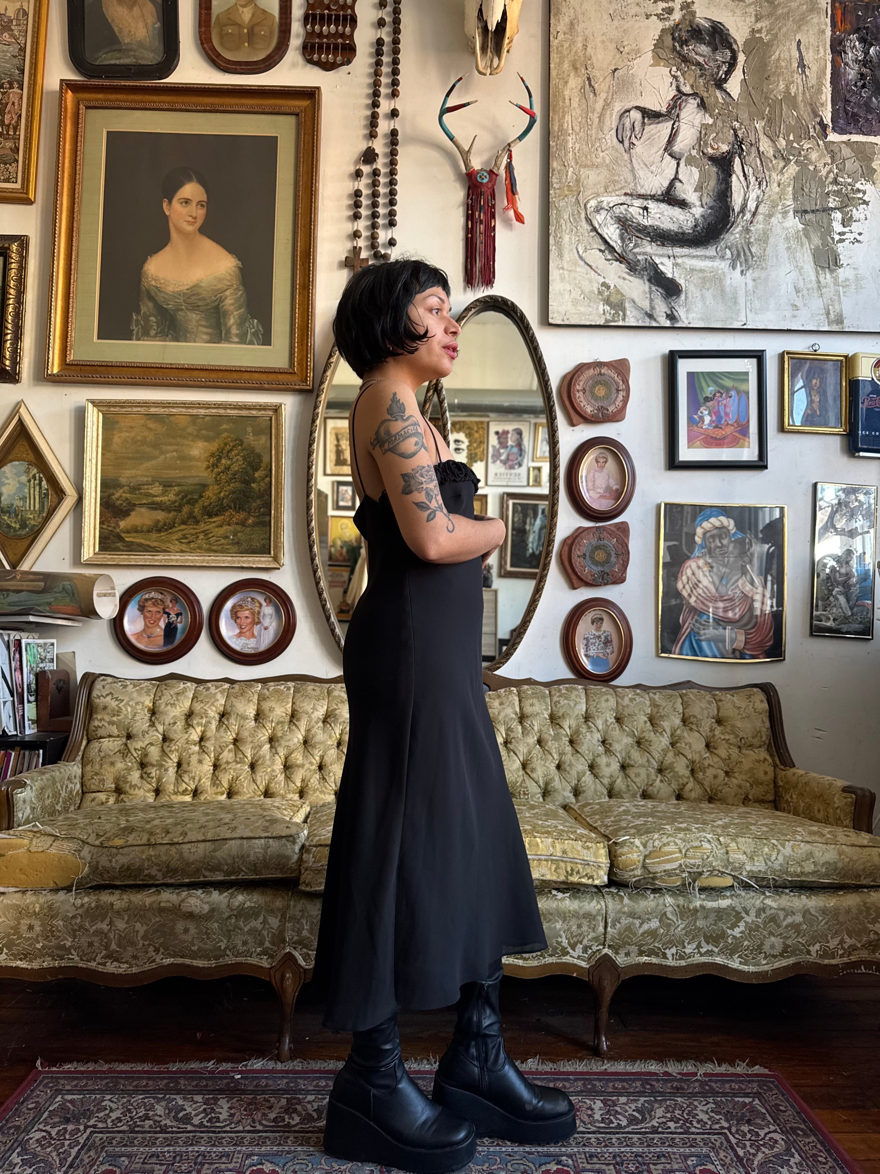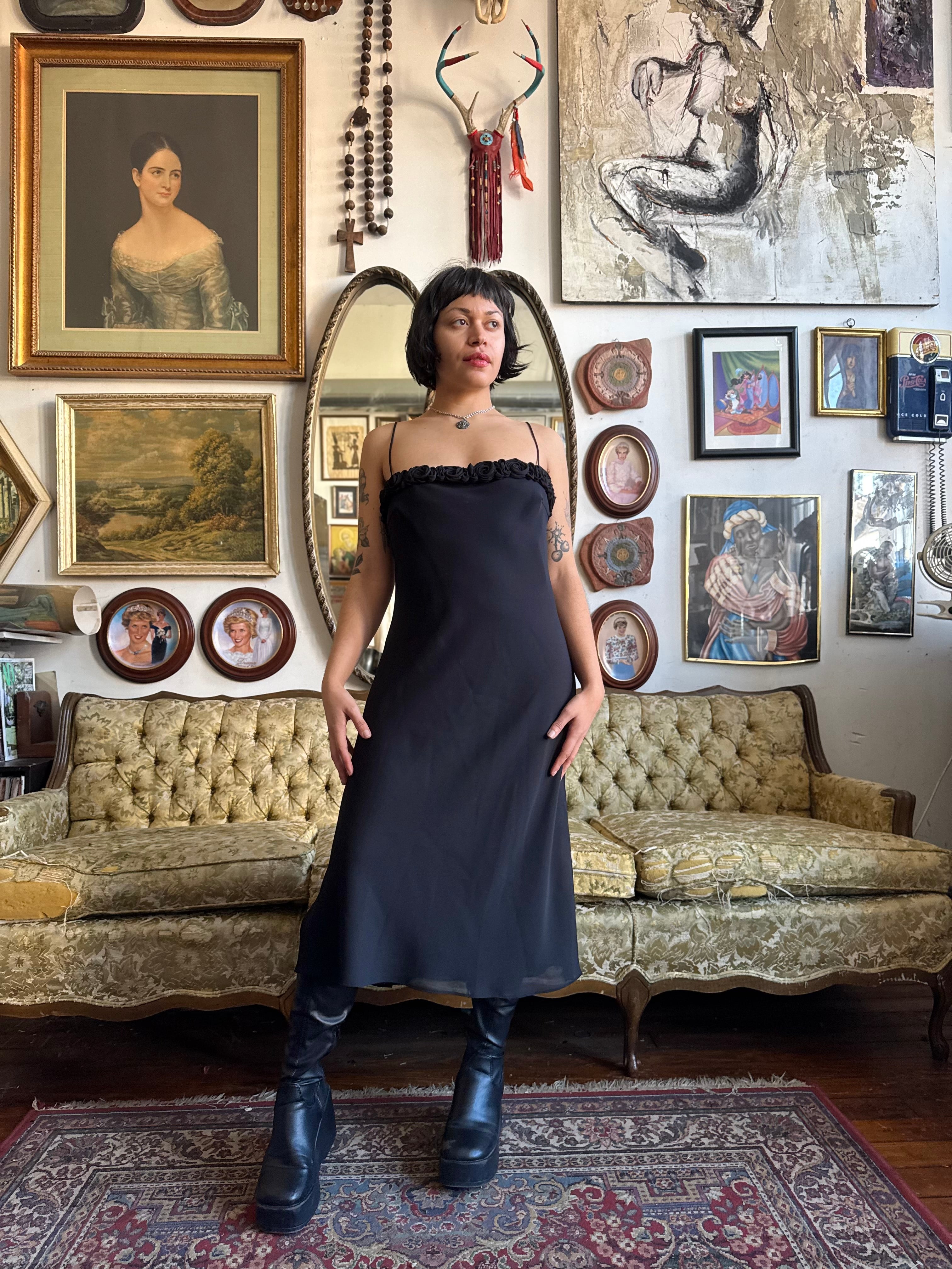 Y2K Sheer Black Dress w Rose bust Size Large by Witch and Wolf