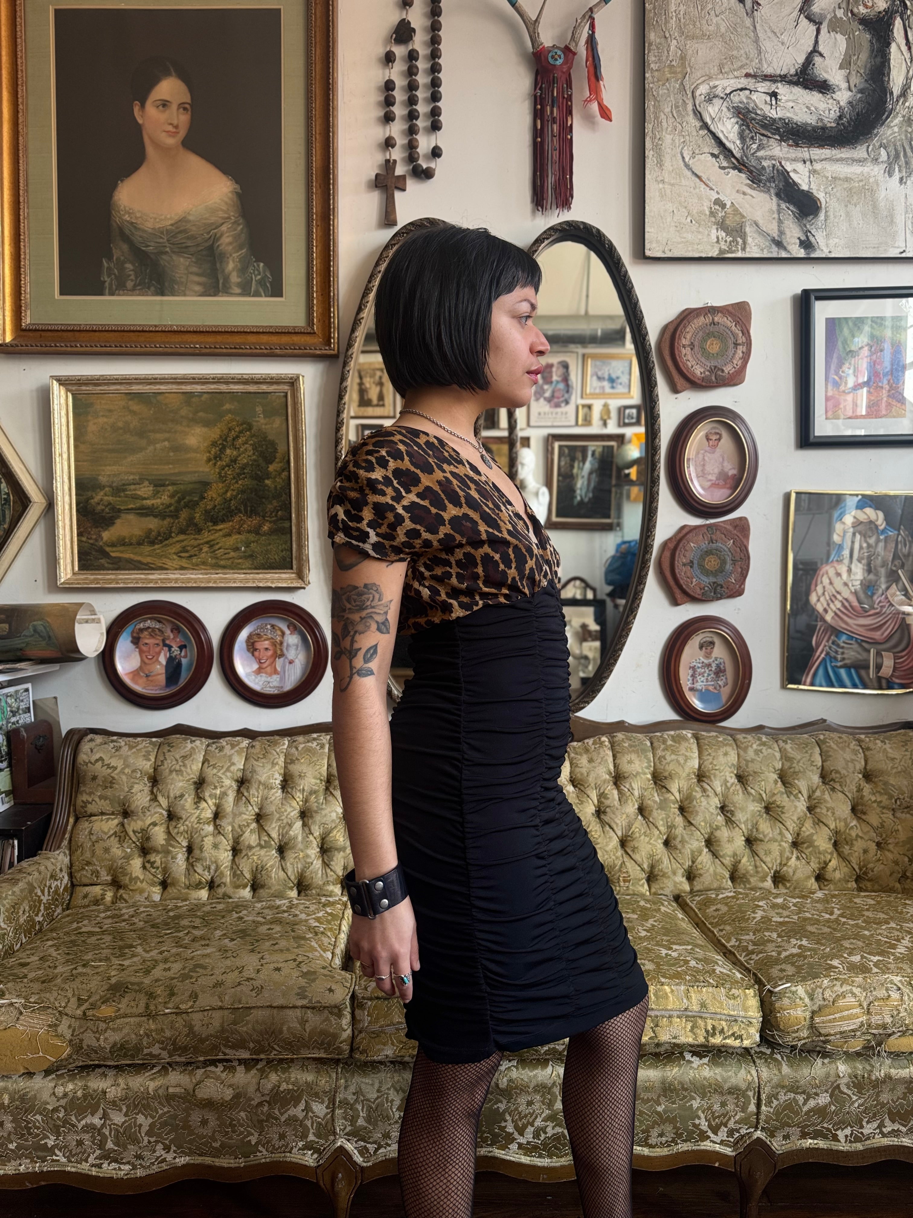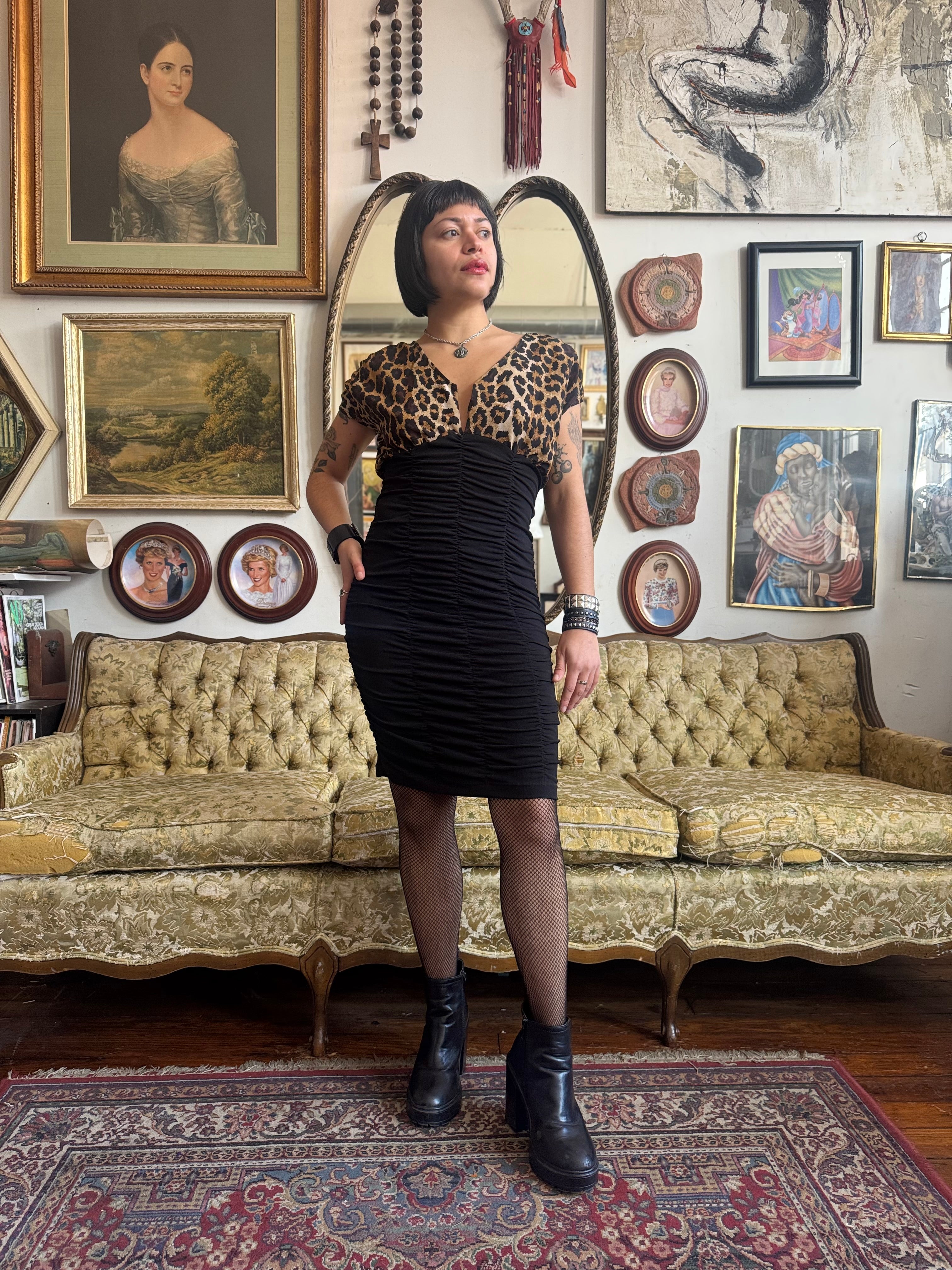 Y2k Sofia Vergara Cheetah Ruched Bodycon Dress Size S