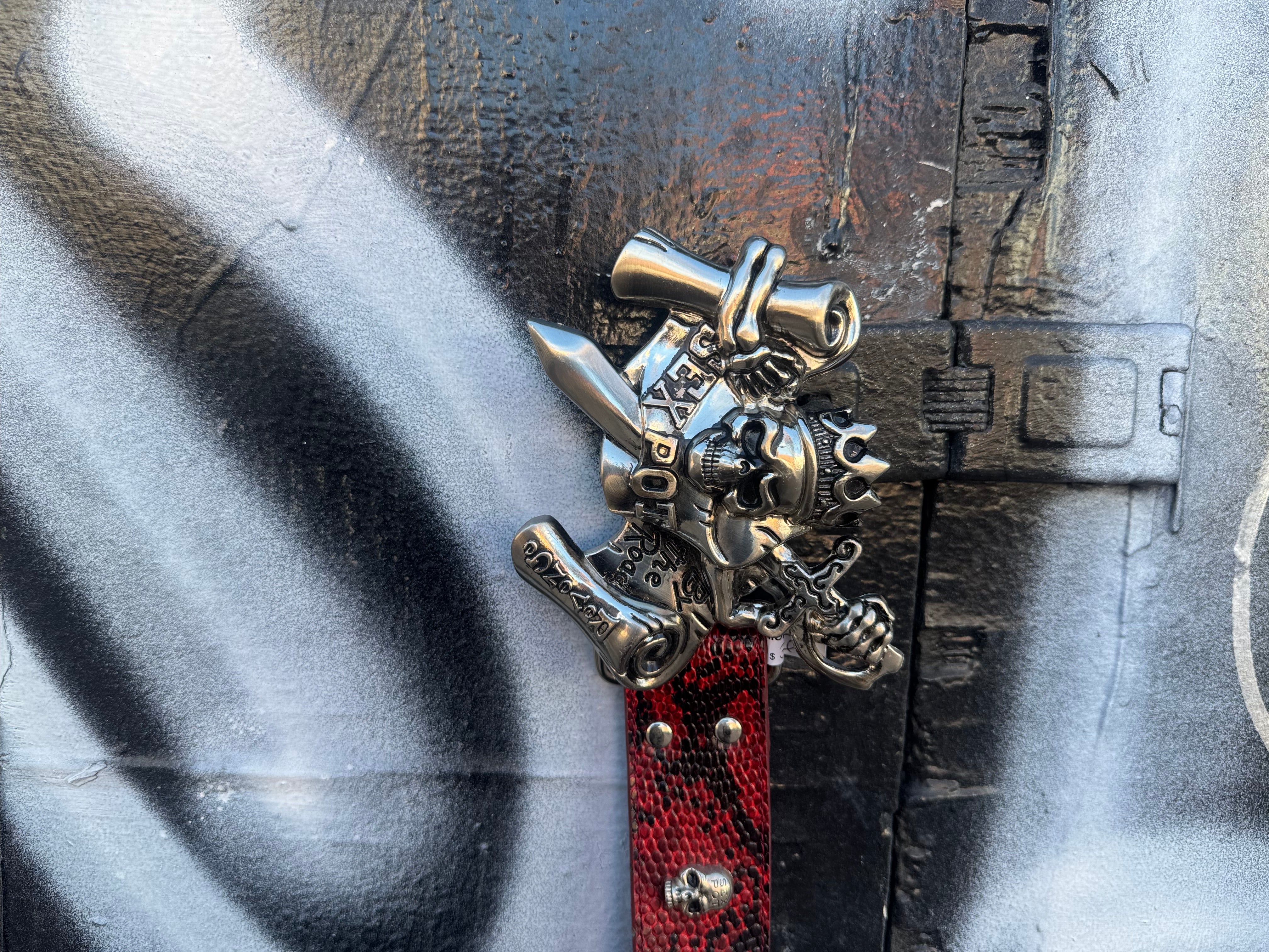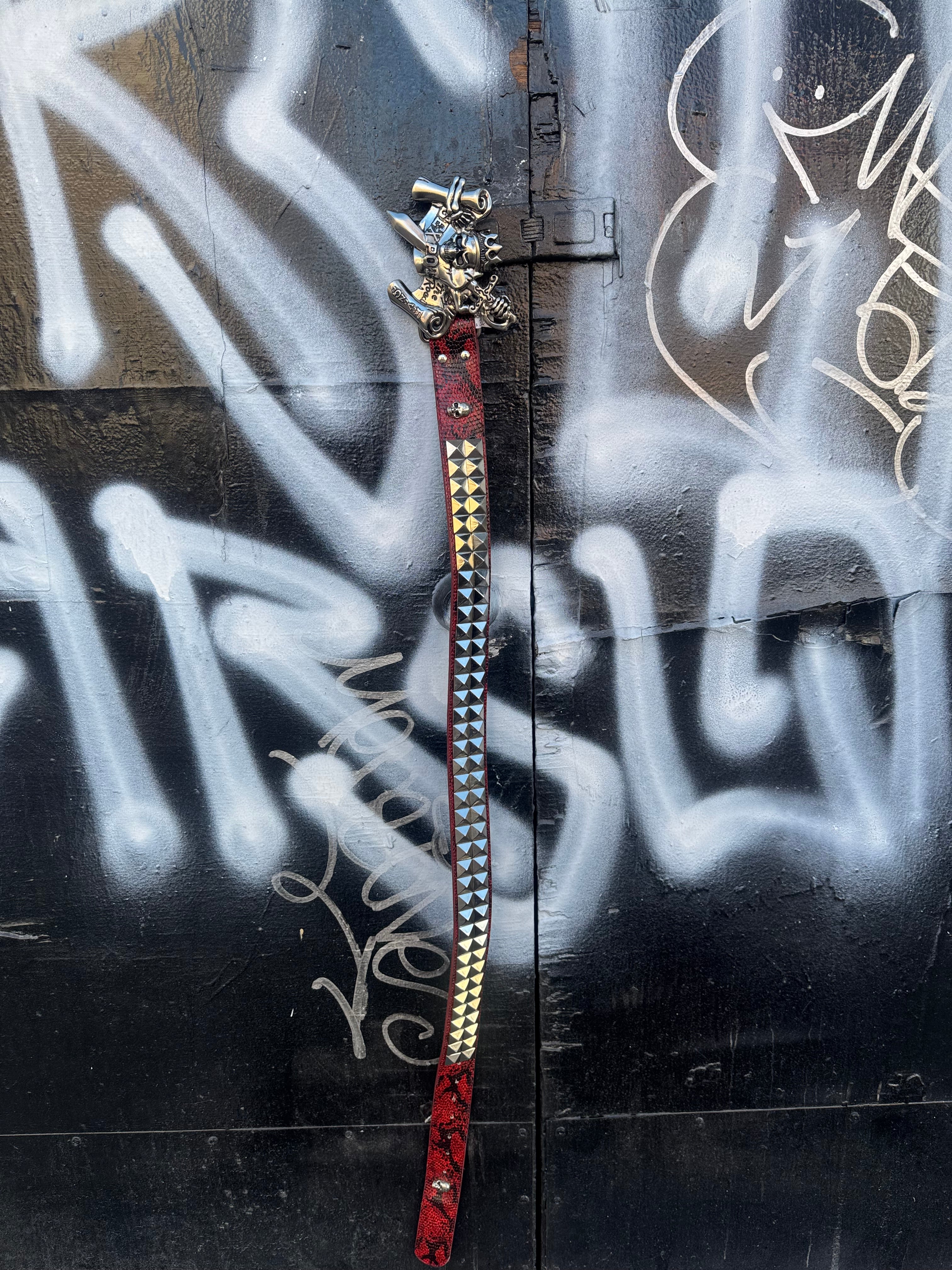 Y2k Sex Pot Red Snakeskin Studded Belt with Statement Buckle Size 30 - 36"