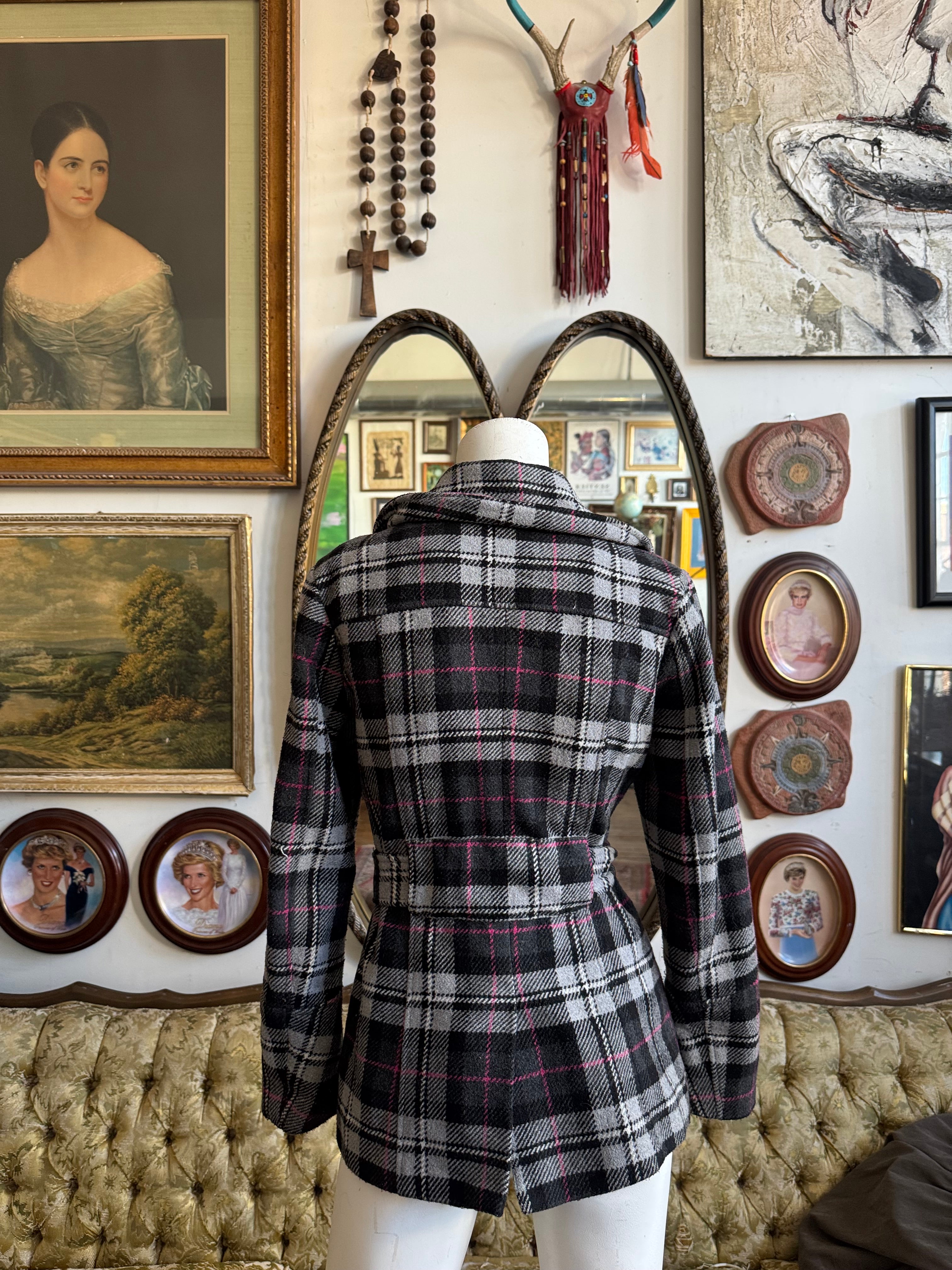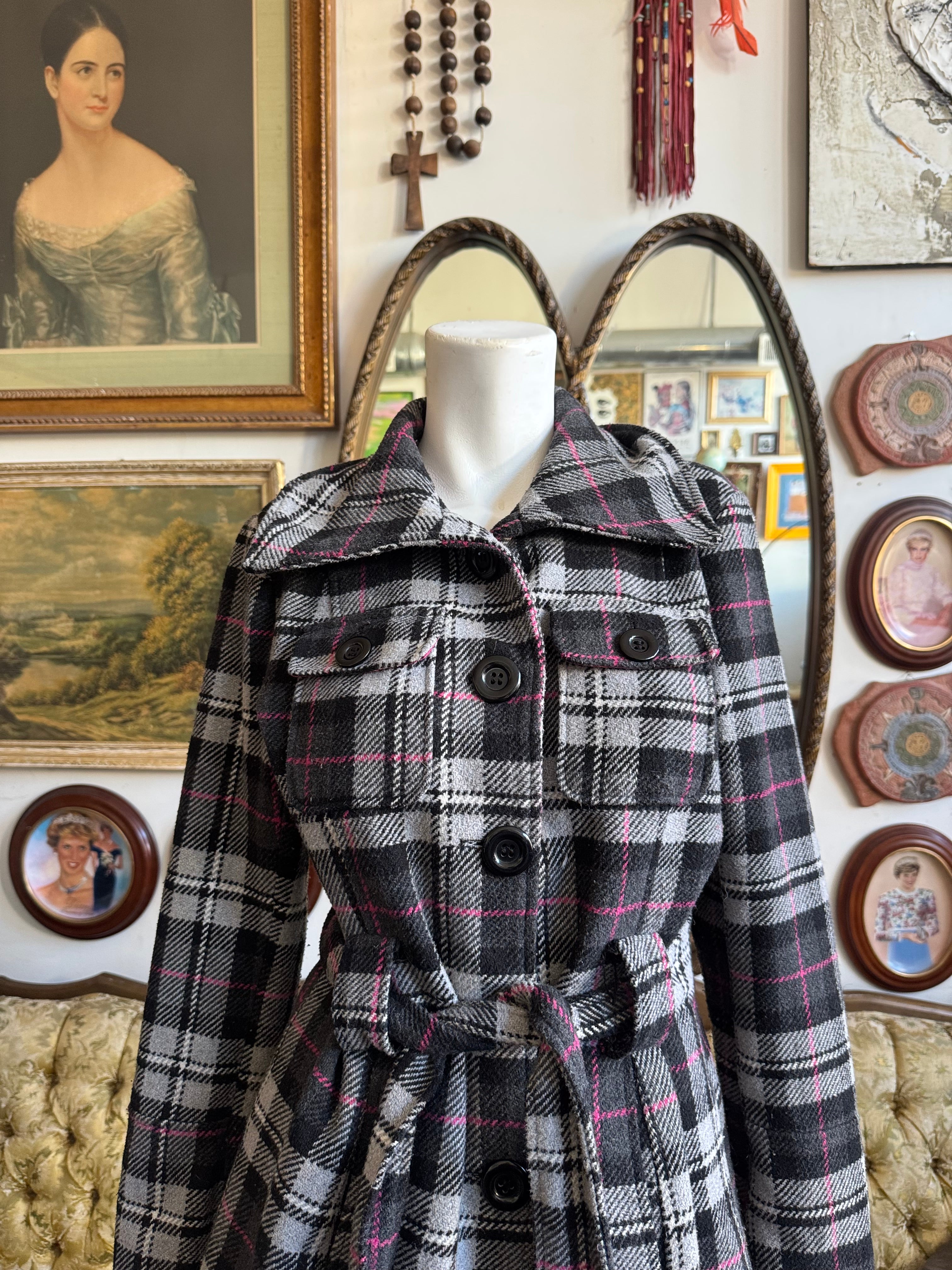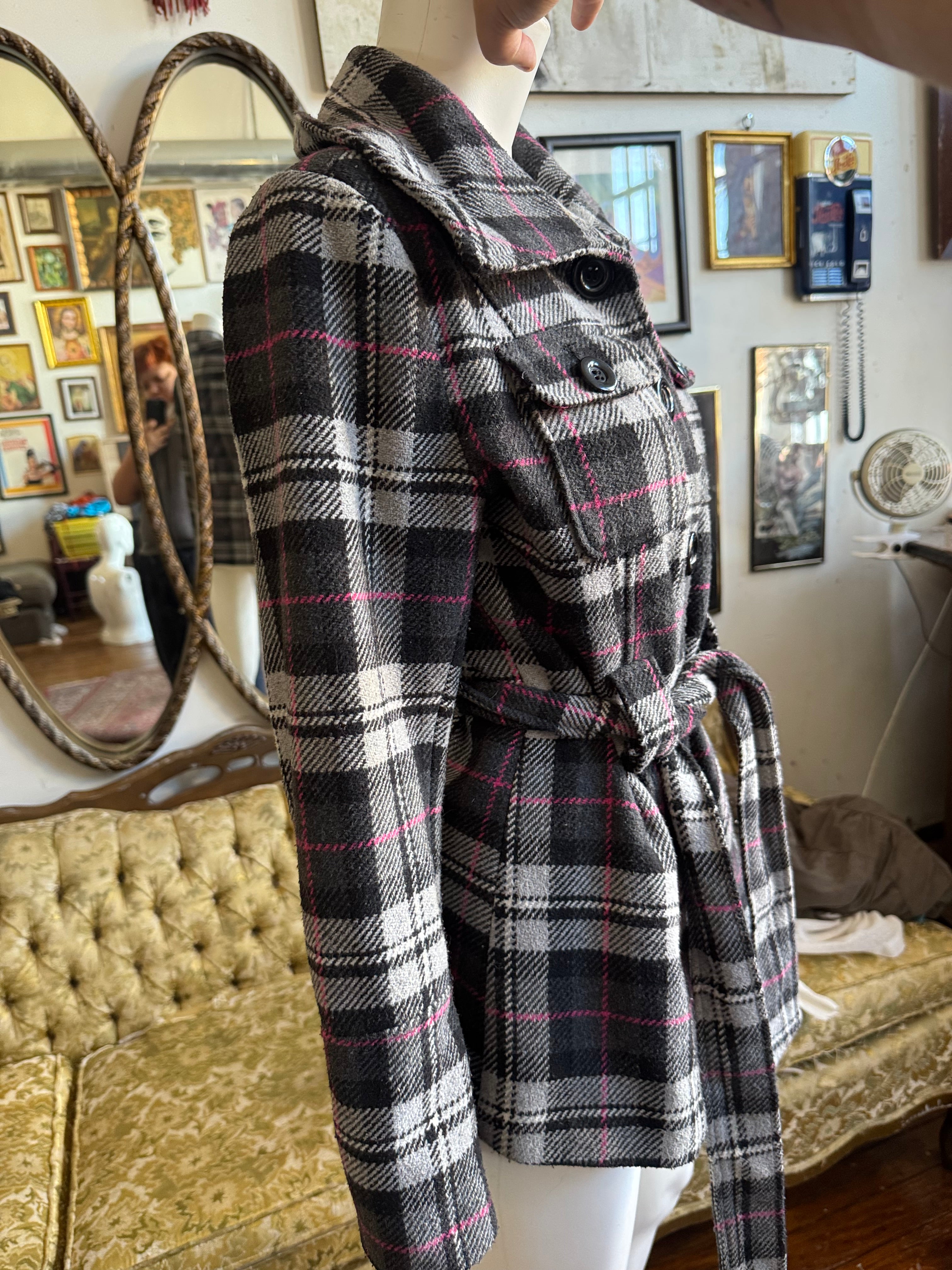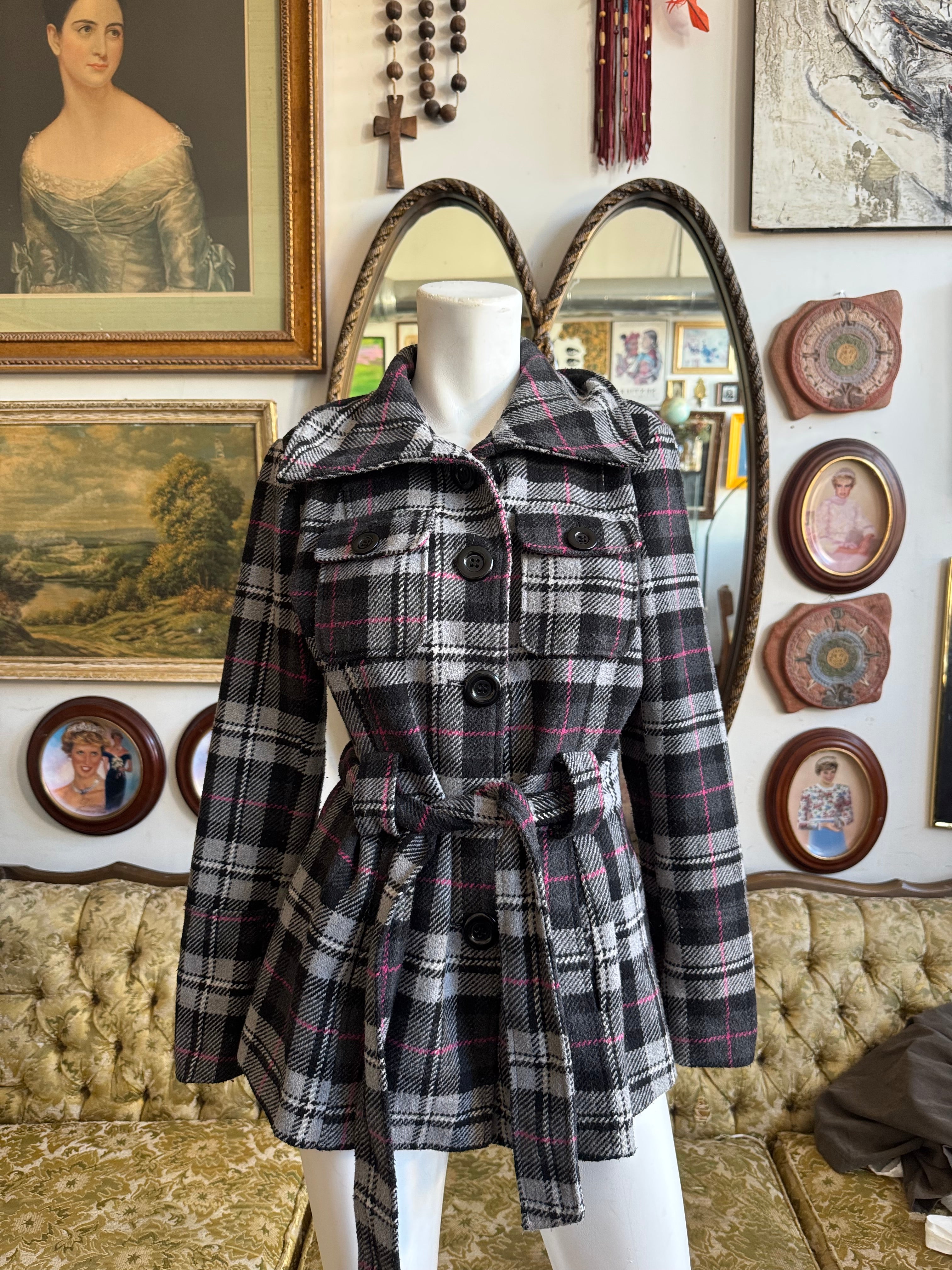 Y2k Say What Plaid Peacoat with Waist Tie Size S