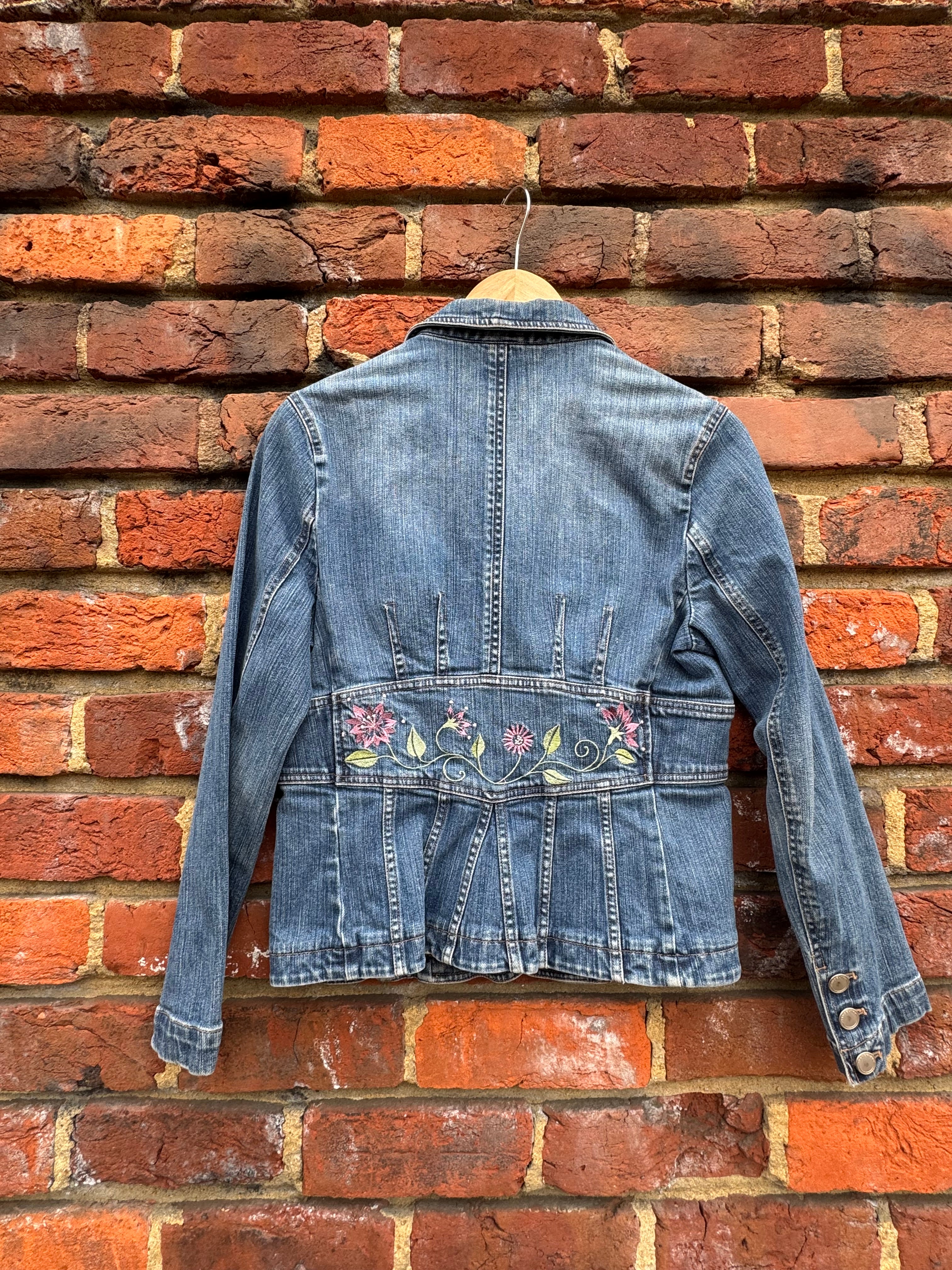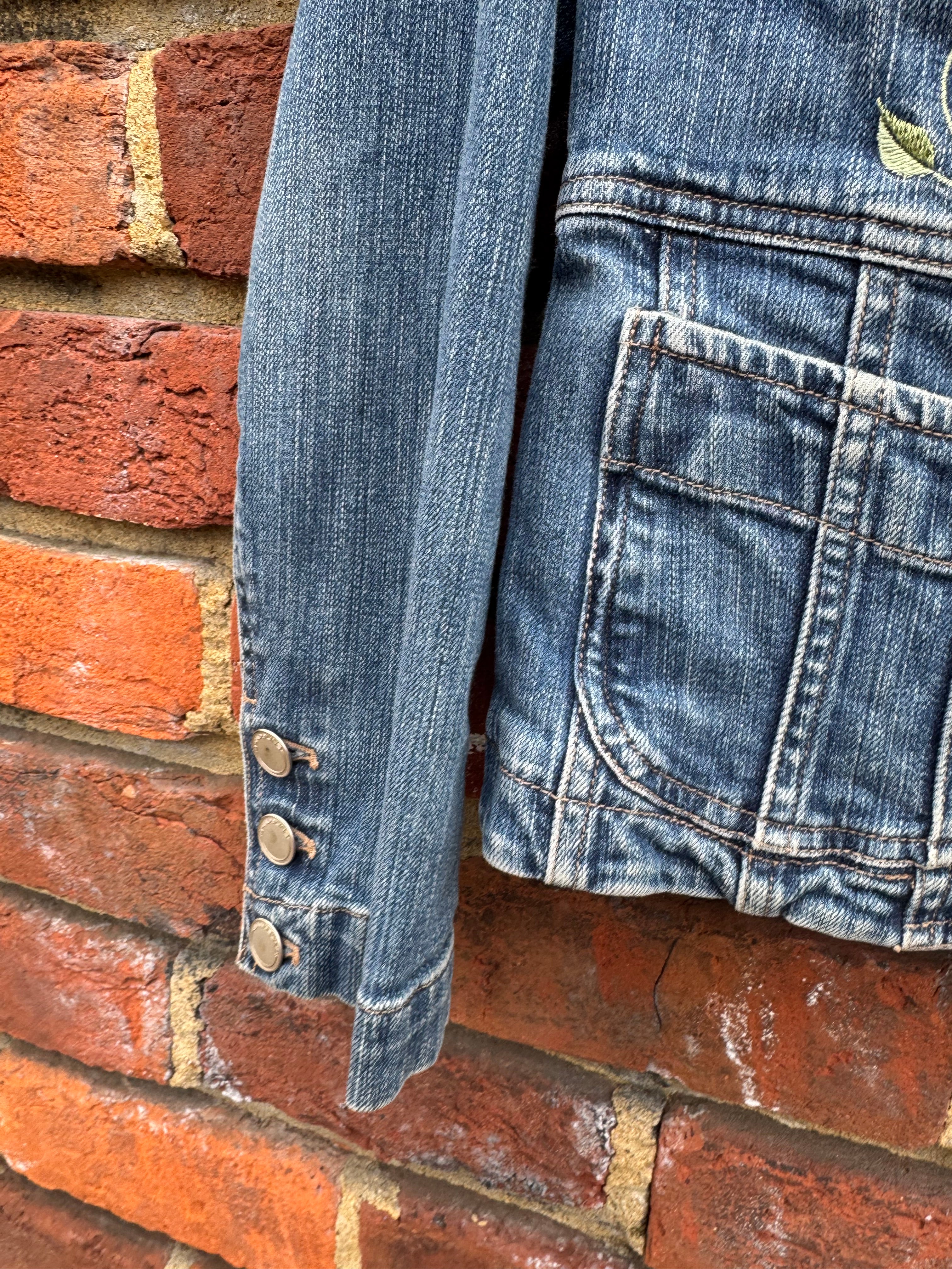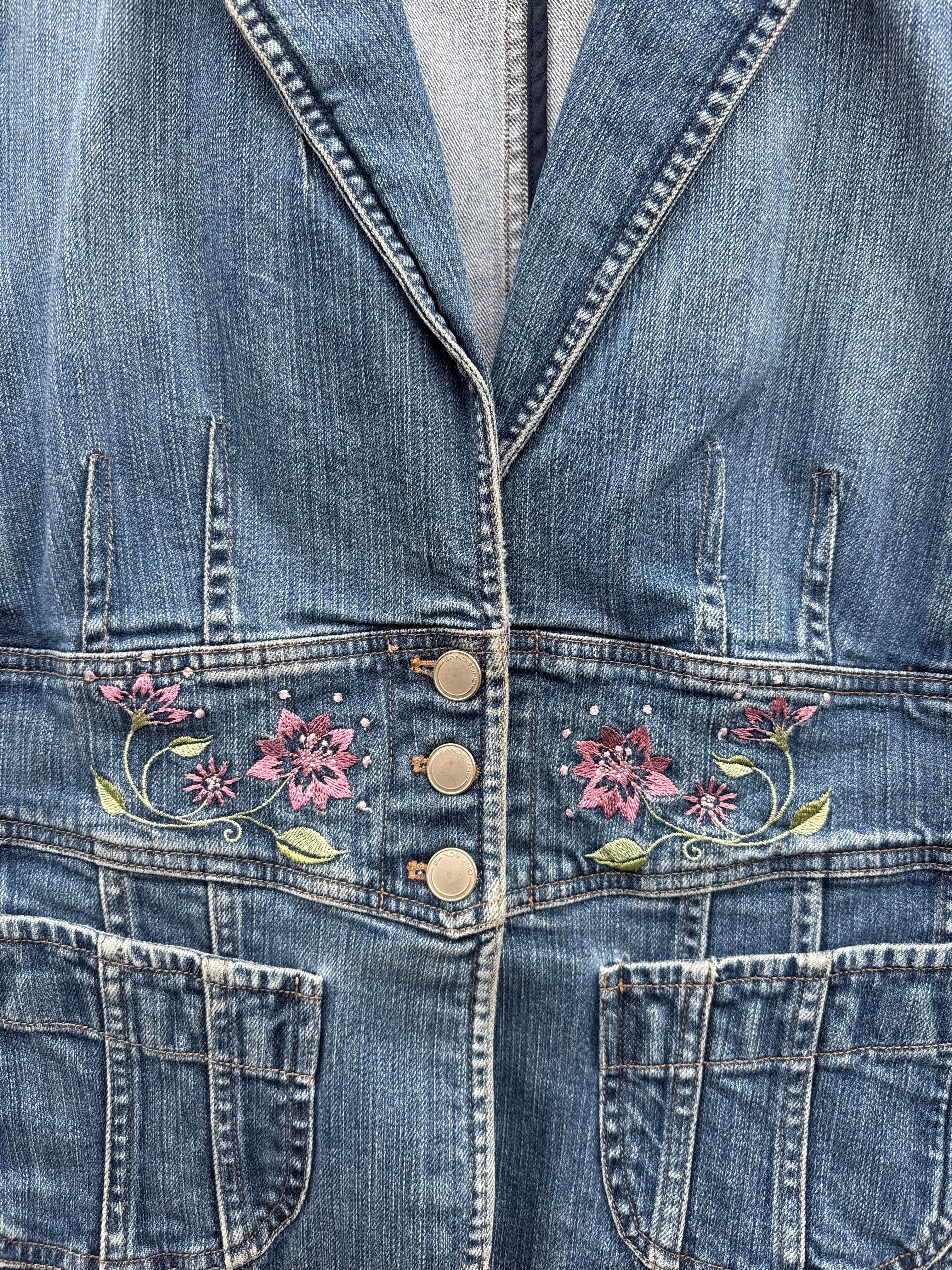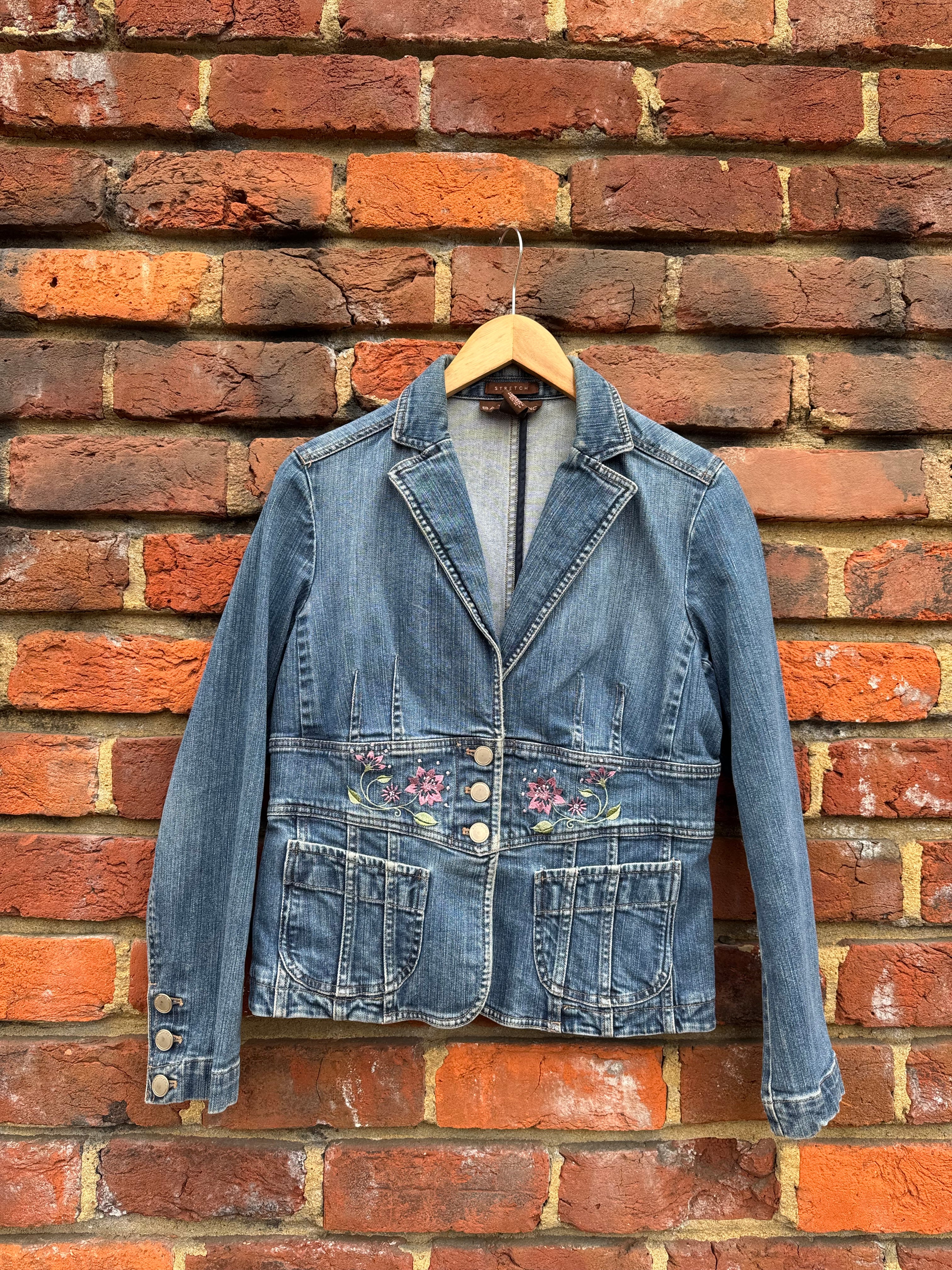 Y2k Bandolino Floral Embroidered Denim Blazer Size 10