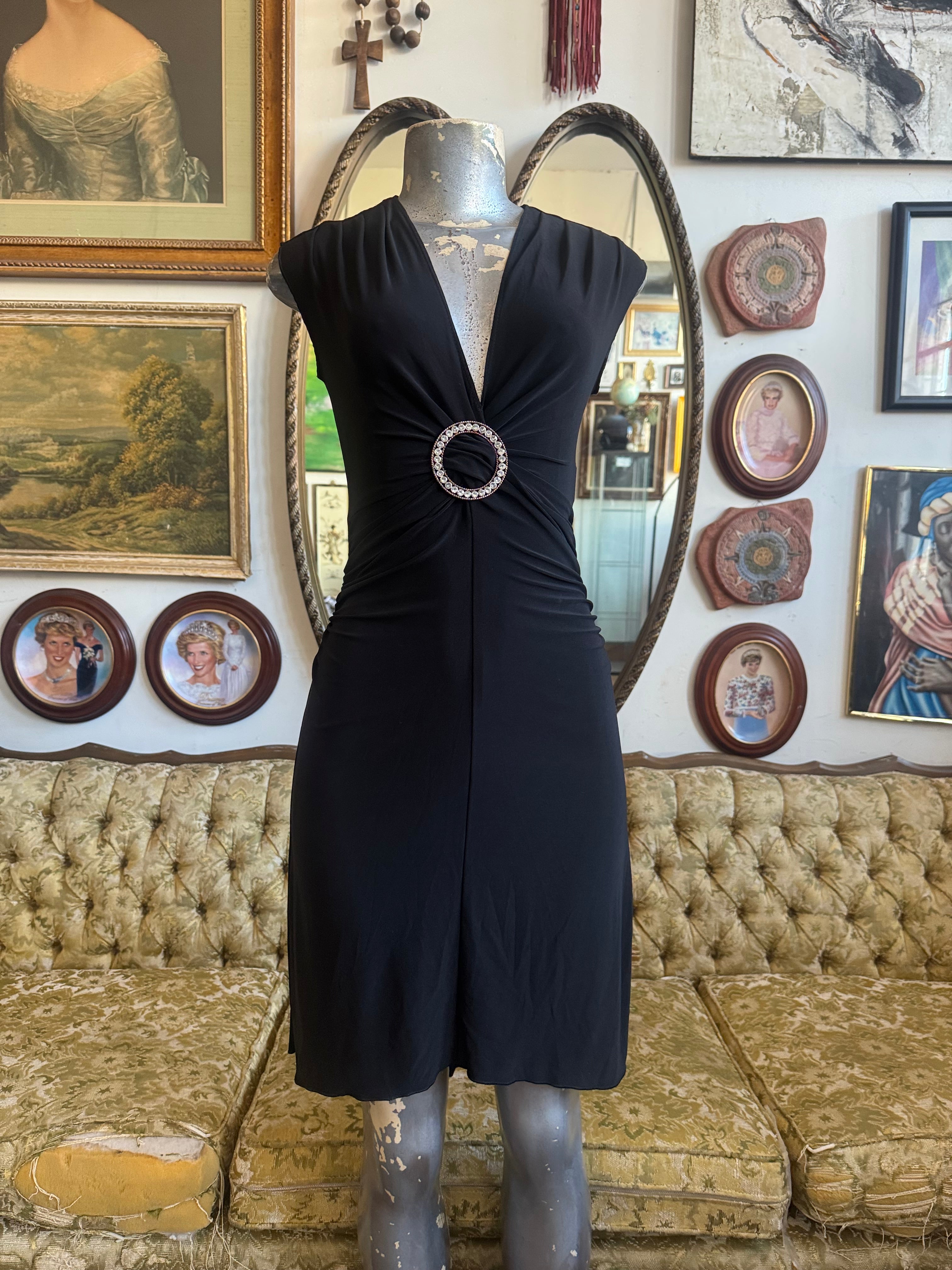 Y2k XOXO Black O-Ring Gathered Midi Dress Size S