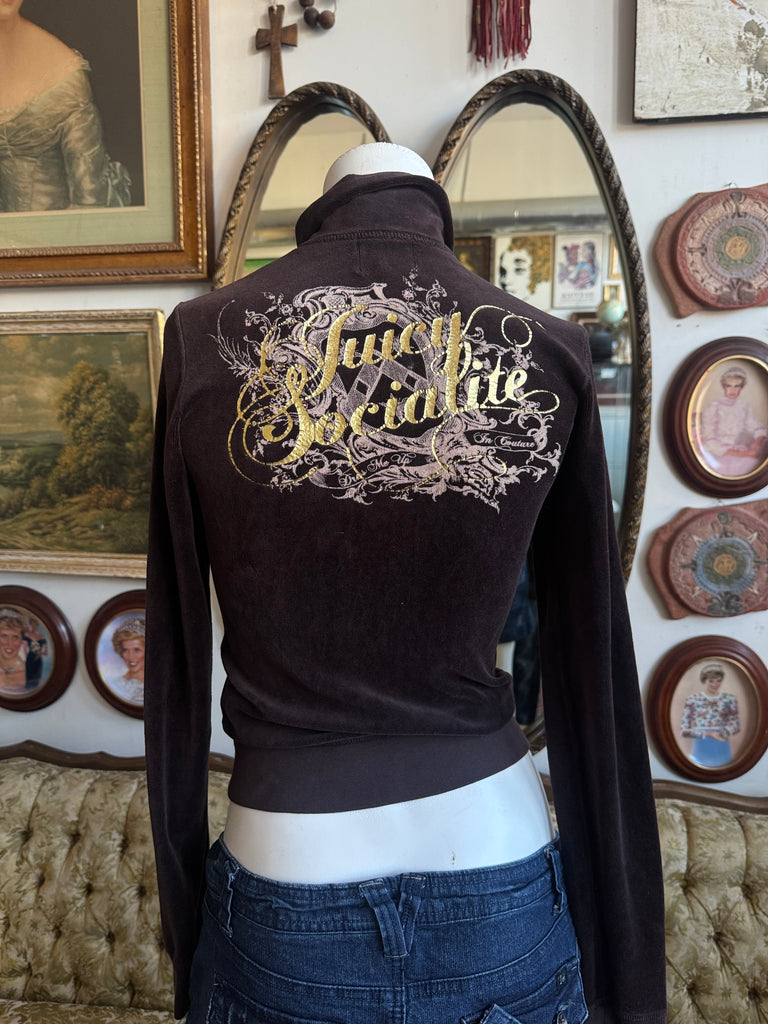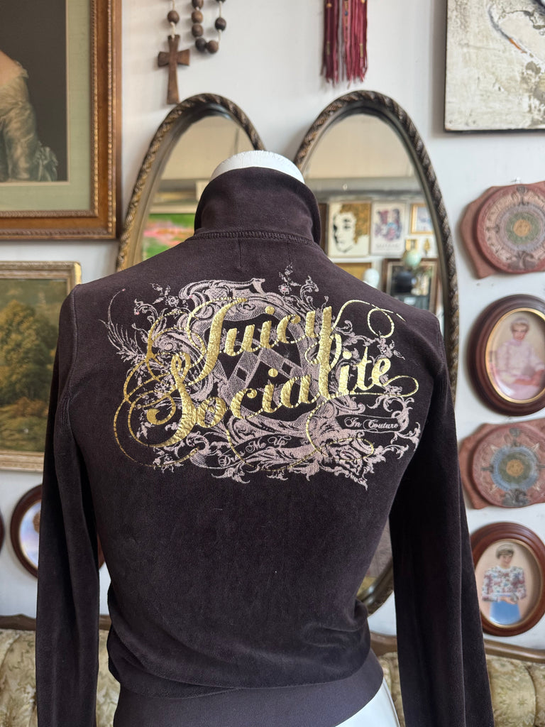 Y2K Brown Velour Juicy Couture Track Jacket Size Small
