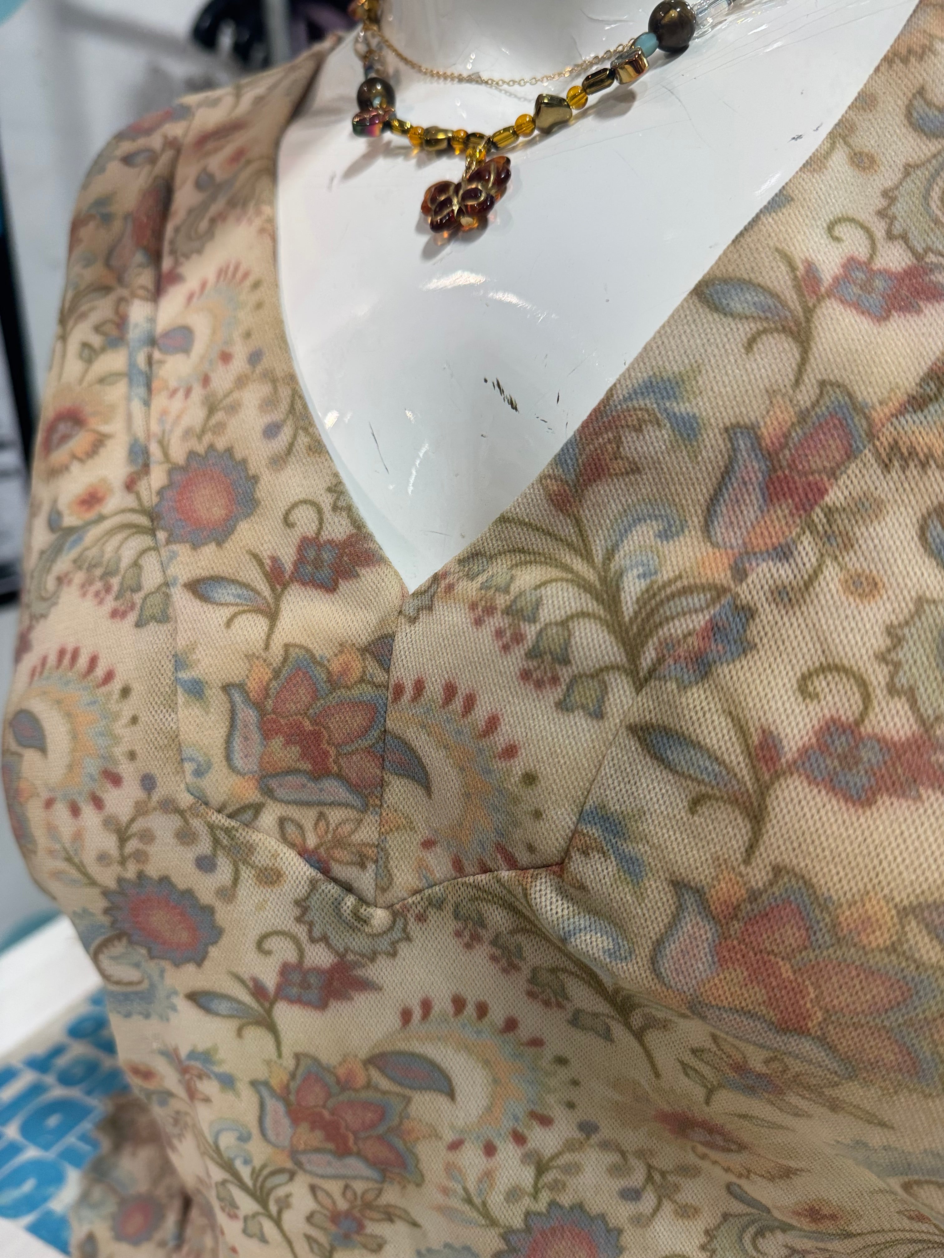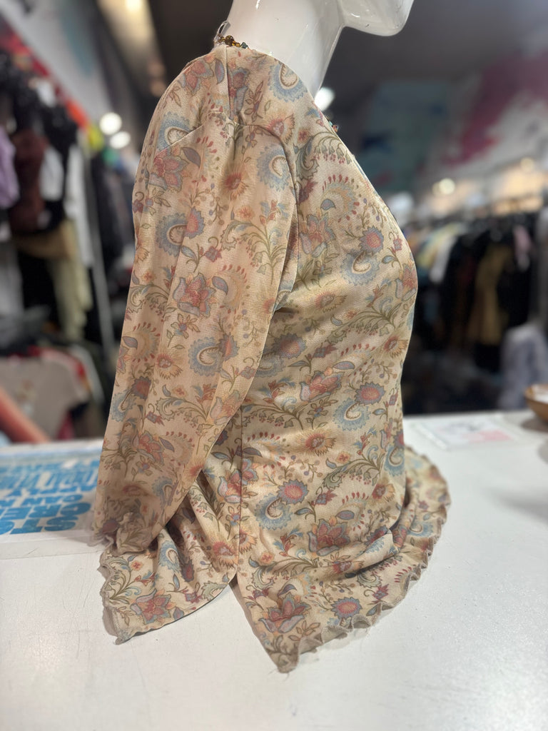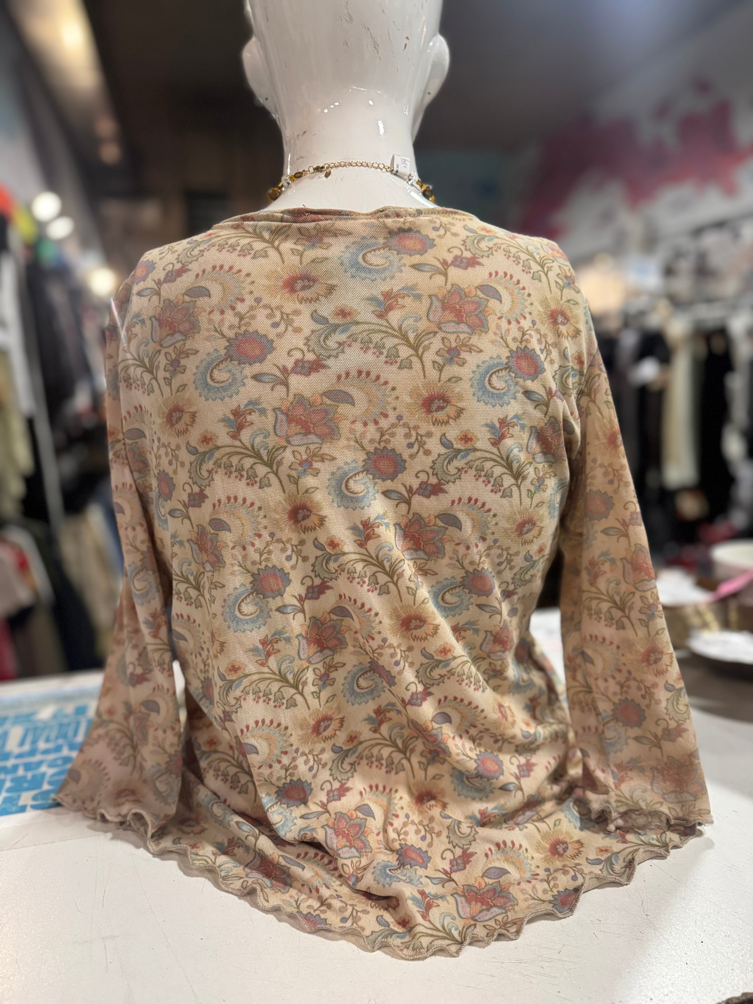 Y2K Mesh Boho Floral Print Quarter Sleeve Top Size Large