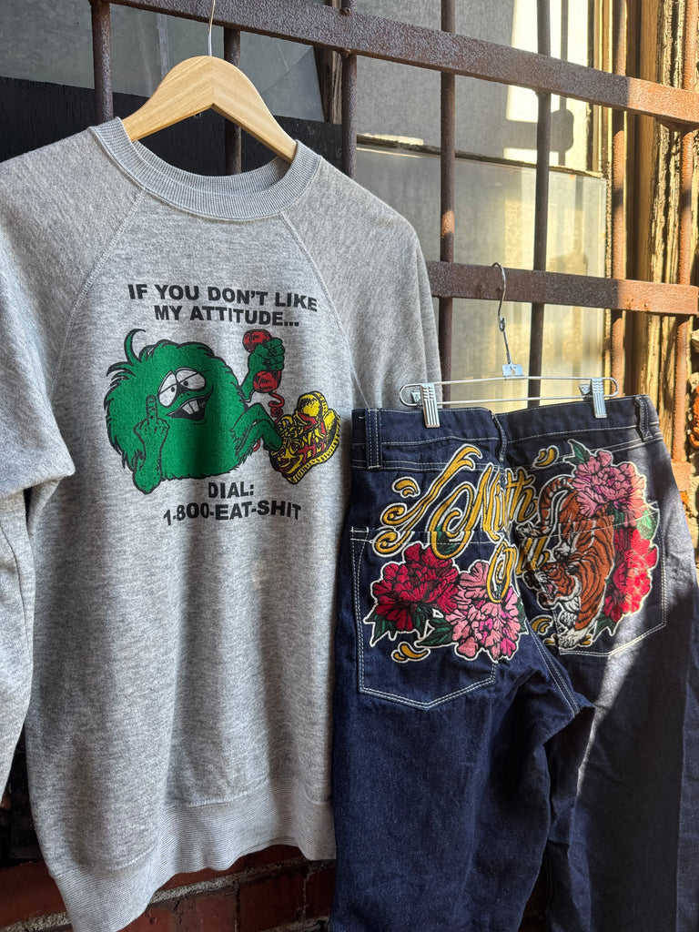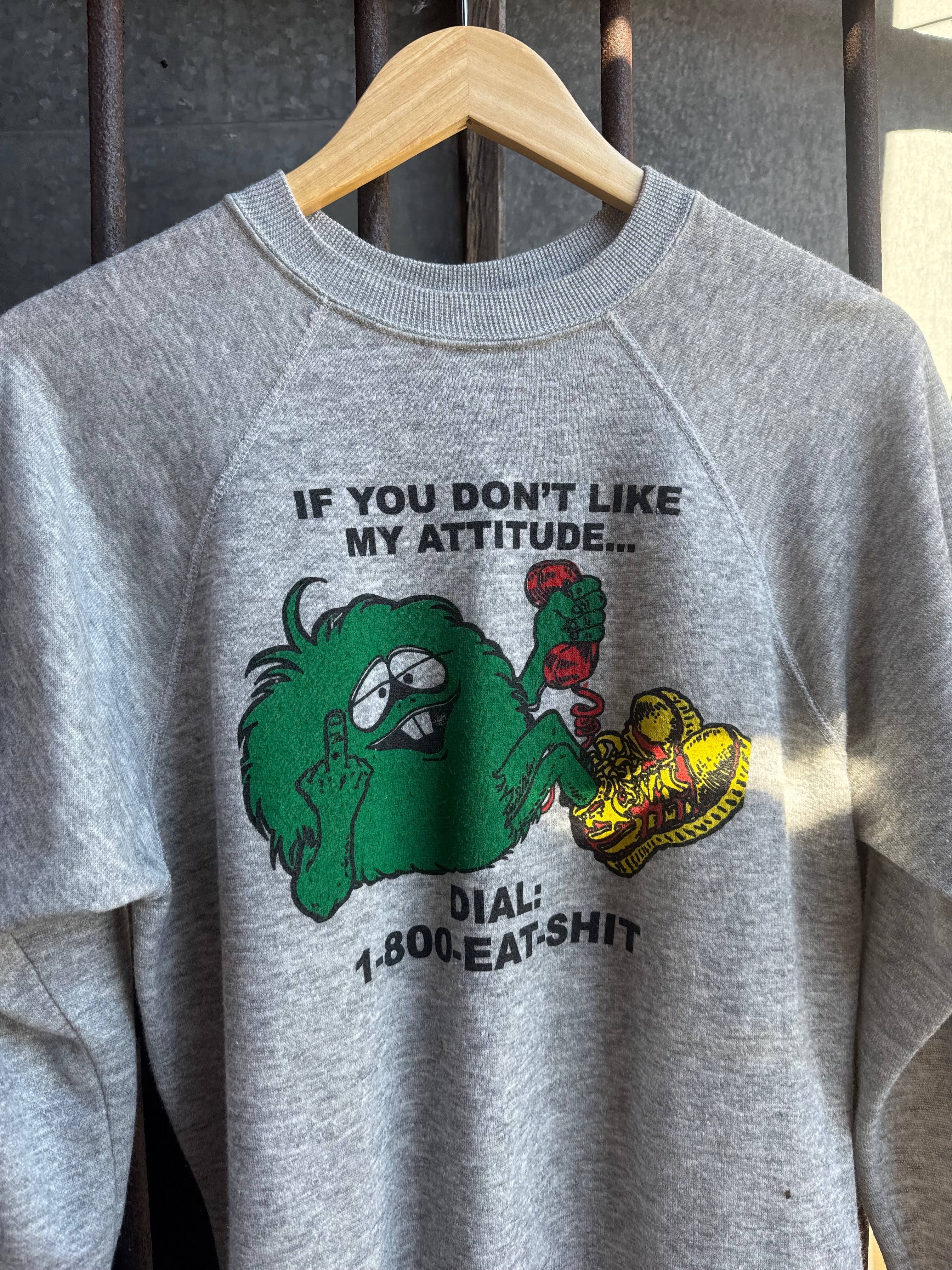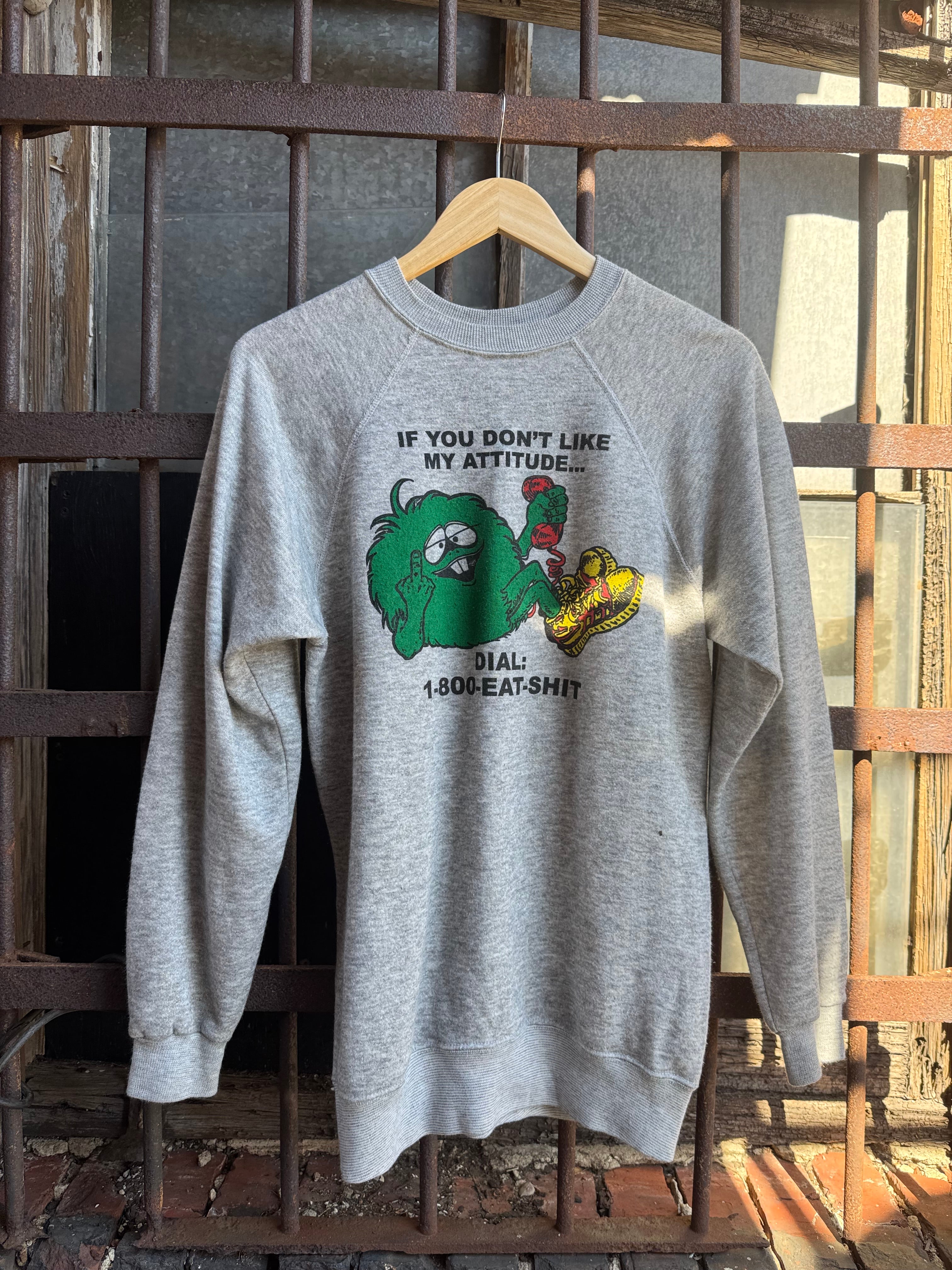 Vintage grey Crewneck that reads “If you don’t like my attitude… Dial: 1-800-EAT-SHIT”