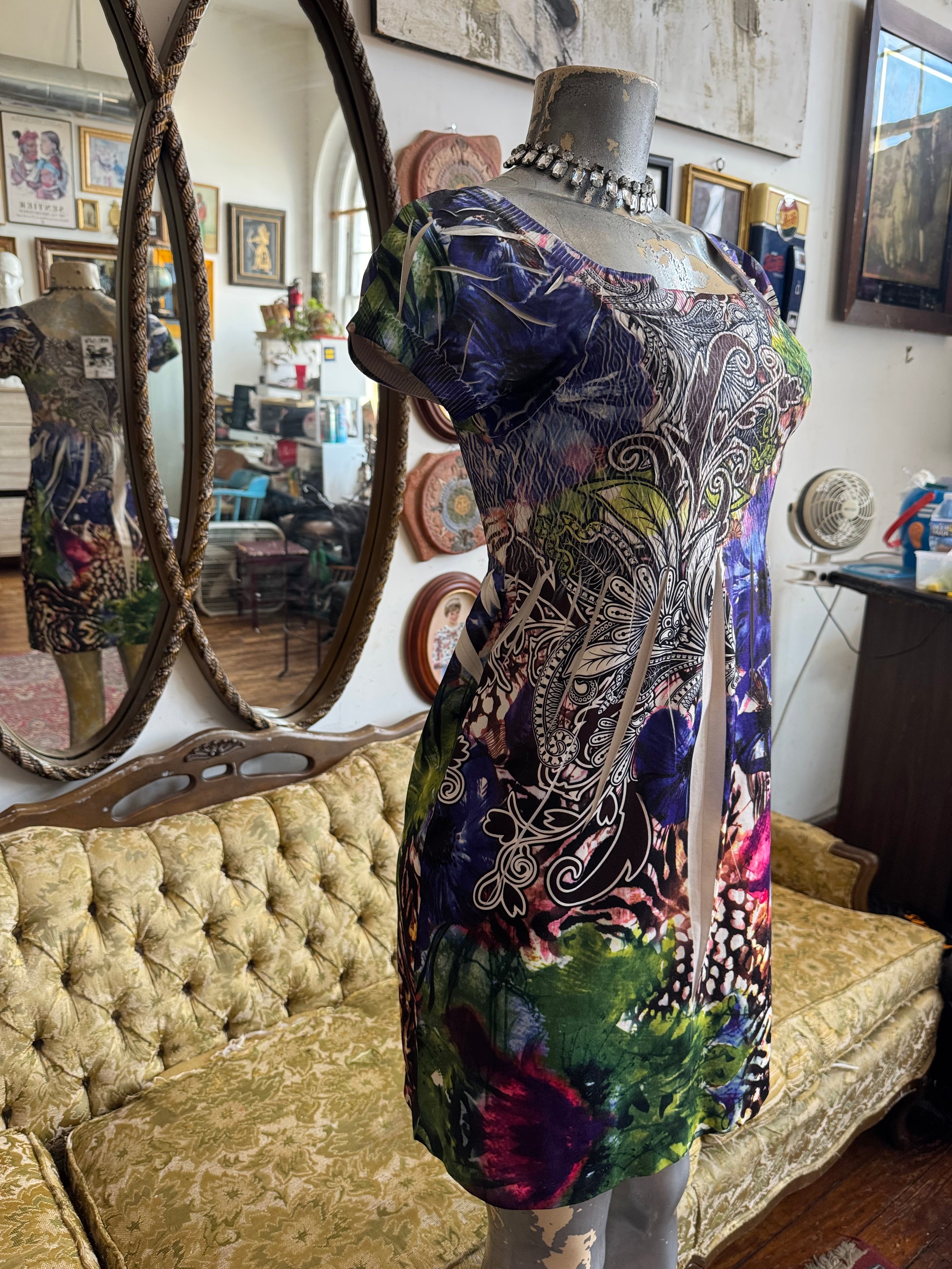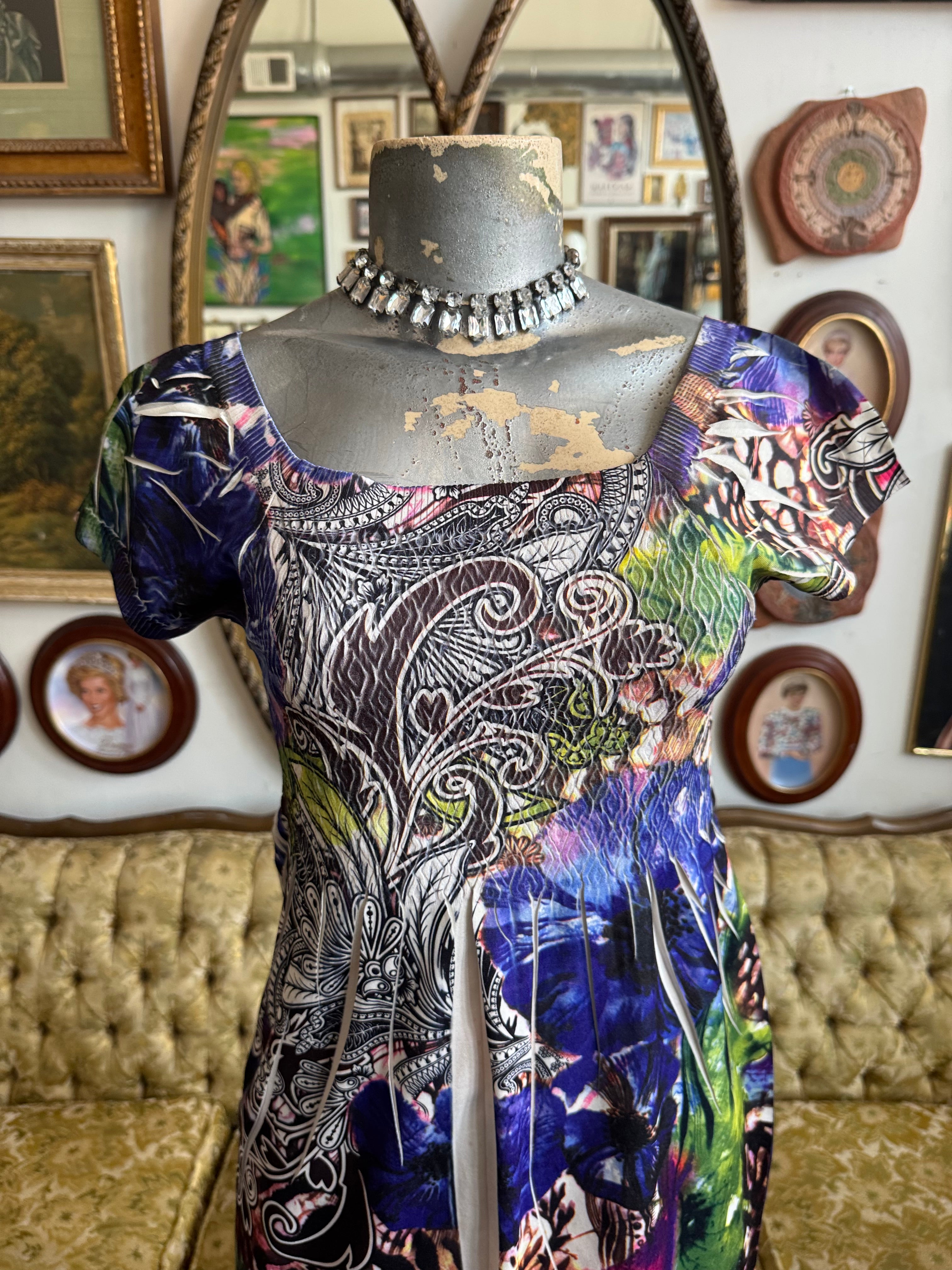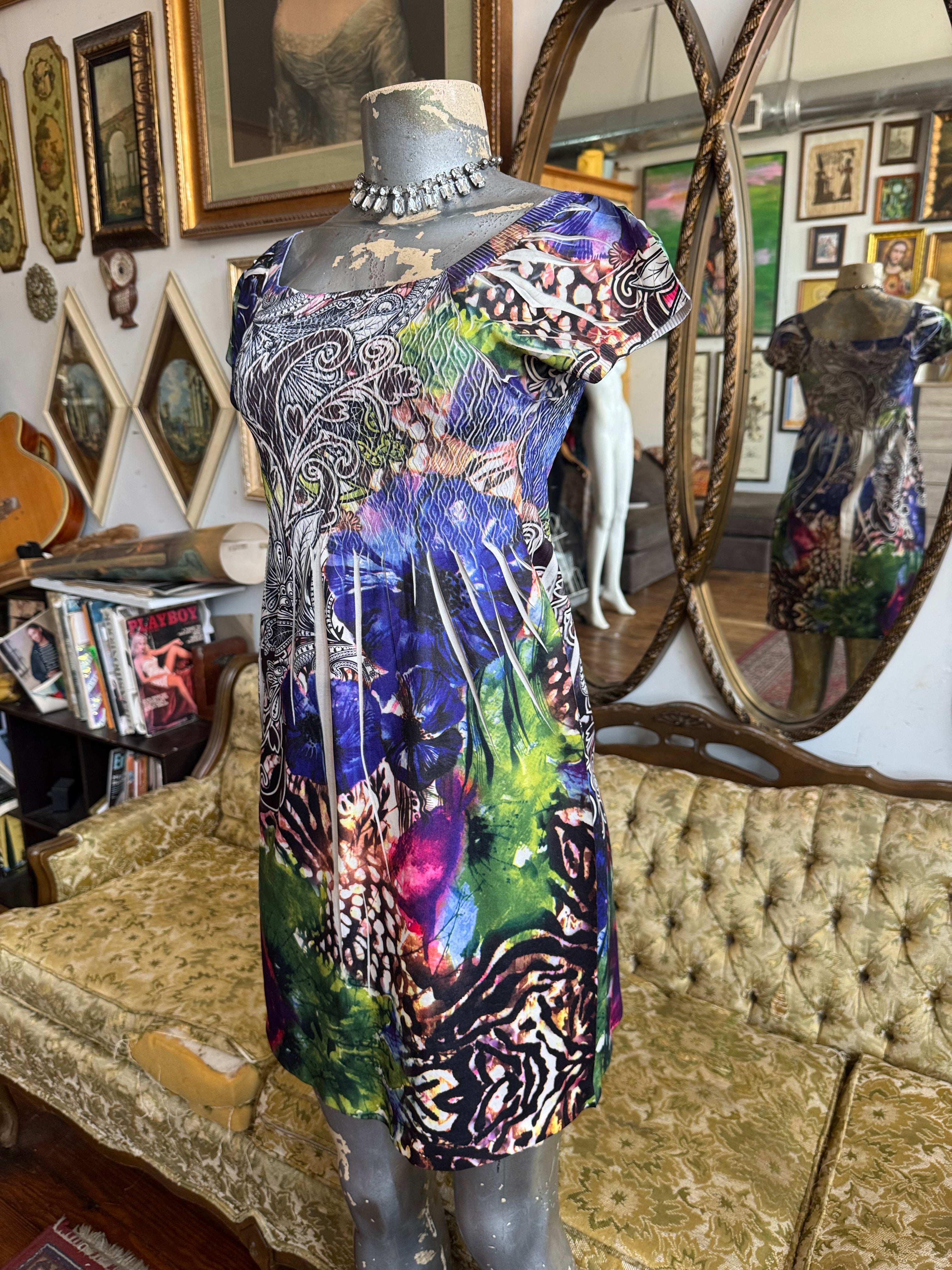 Y2K Rainbow Patterned Mini Dress Size M/L