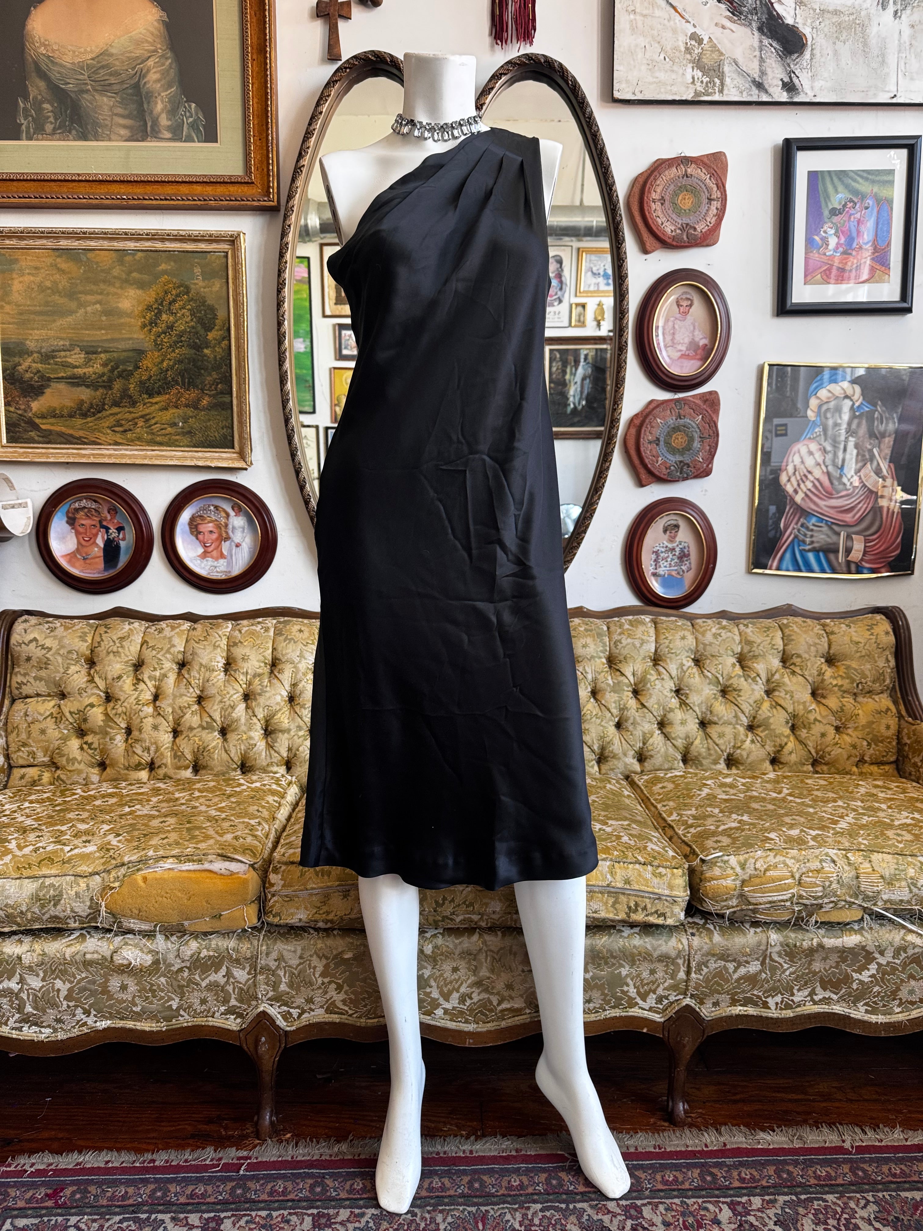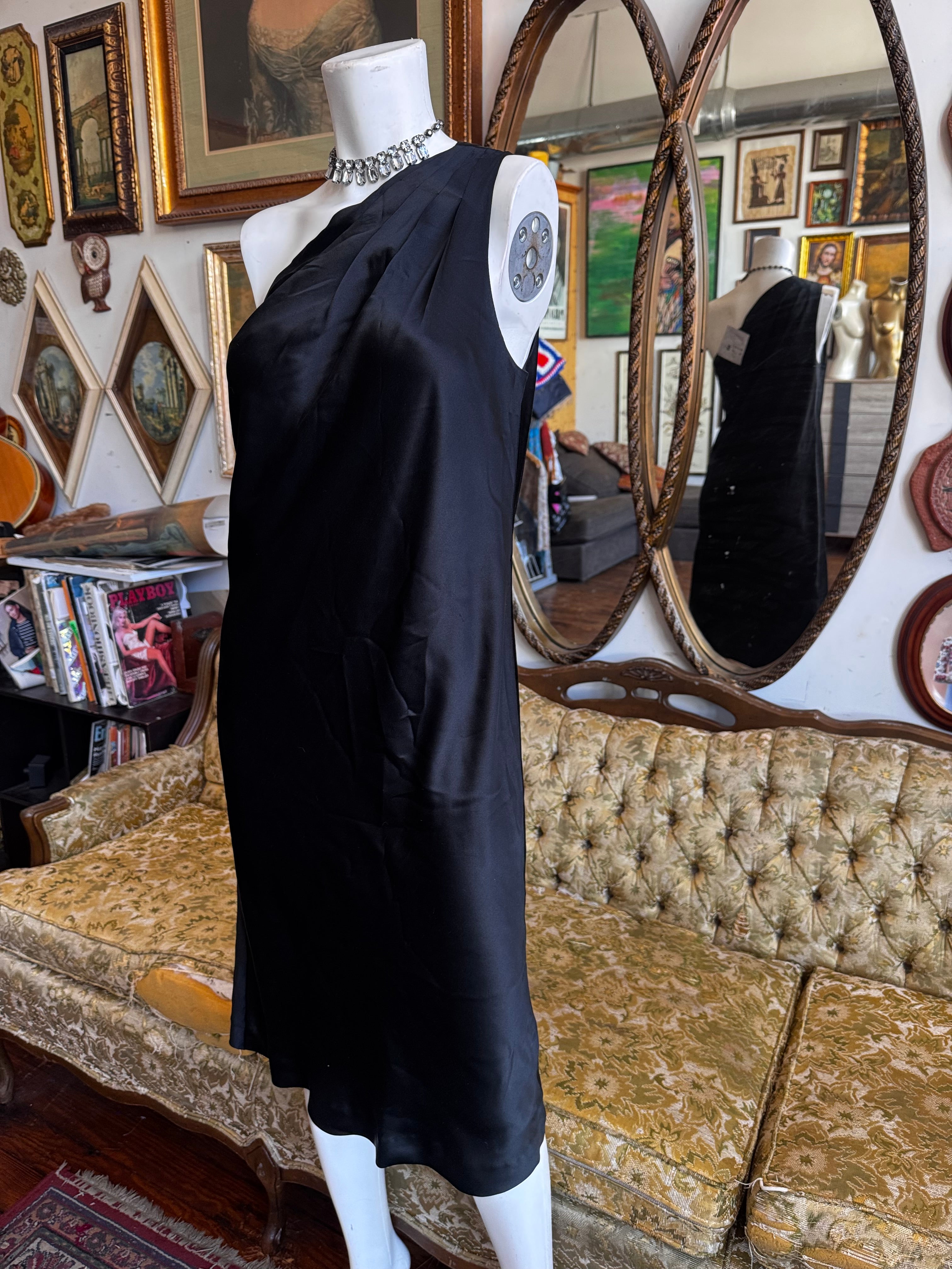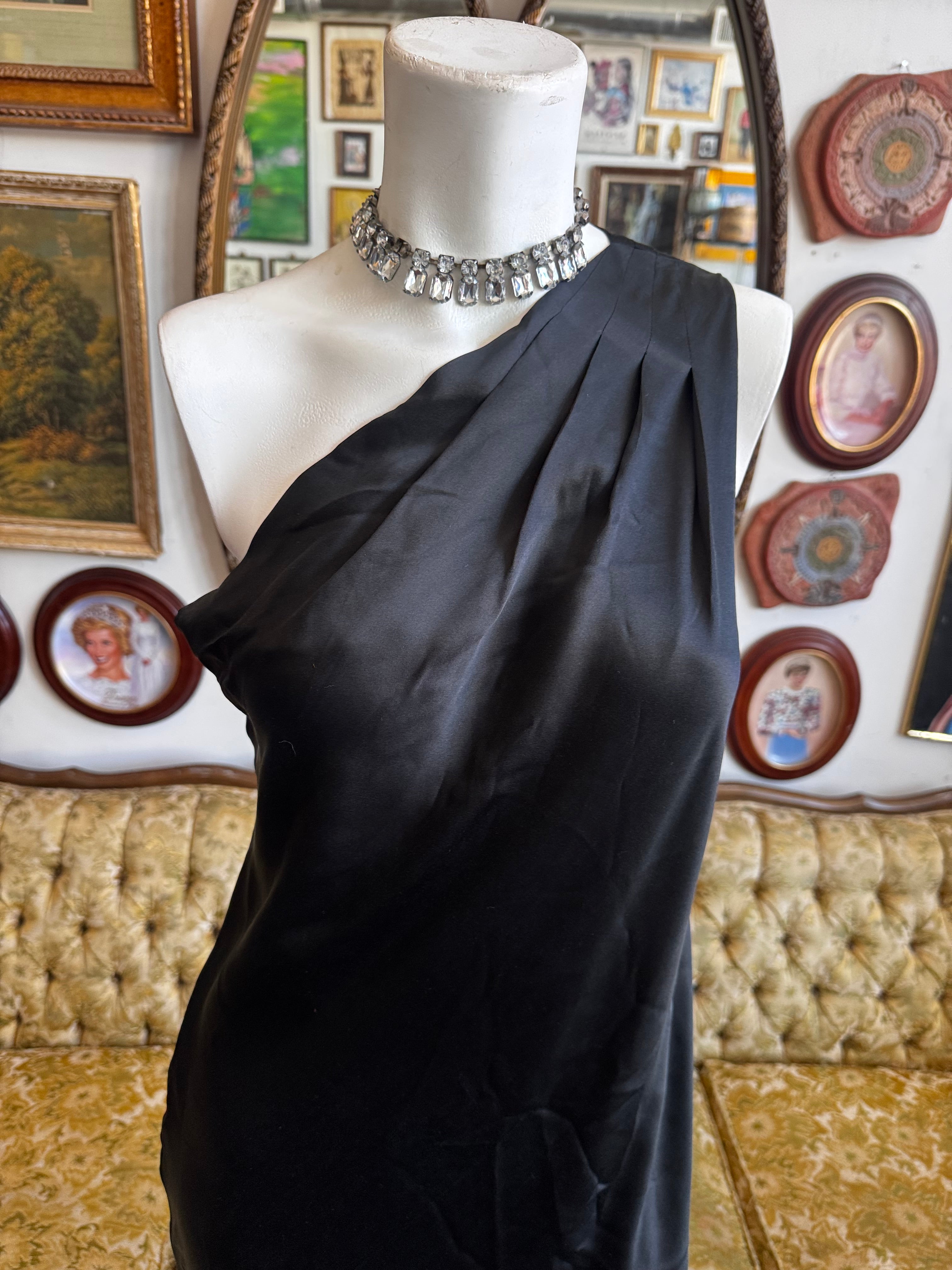 H3aven08 2008 Banana Republic Black Silk One Shoulder Dress Size 8