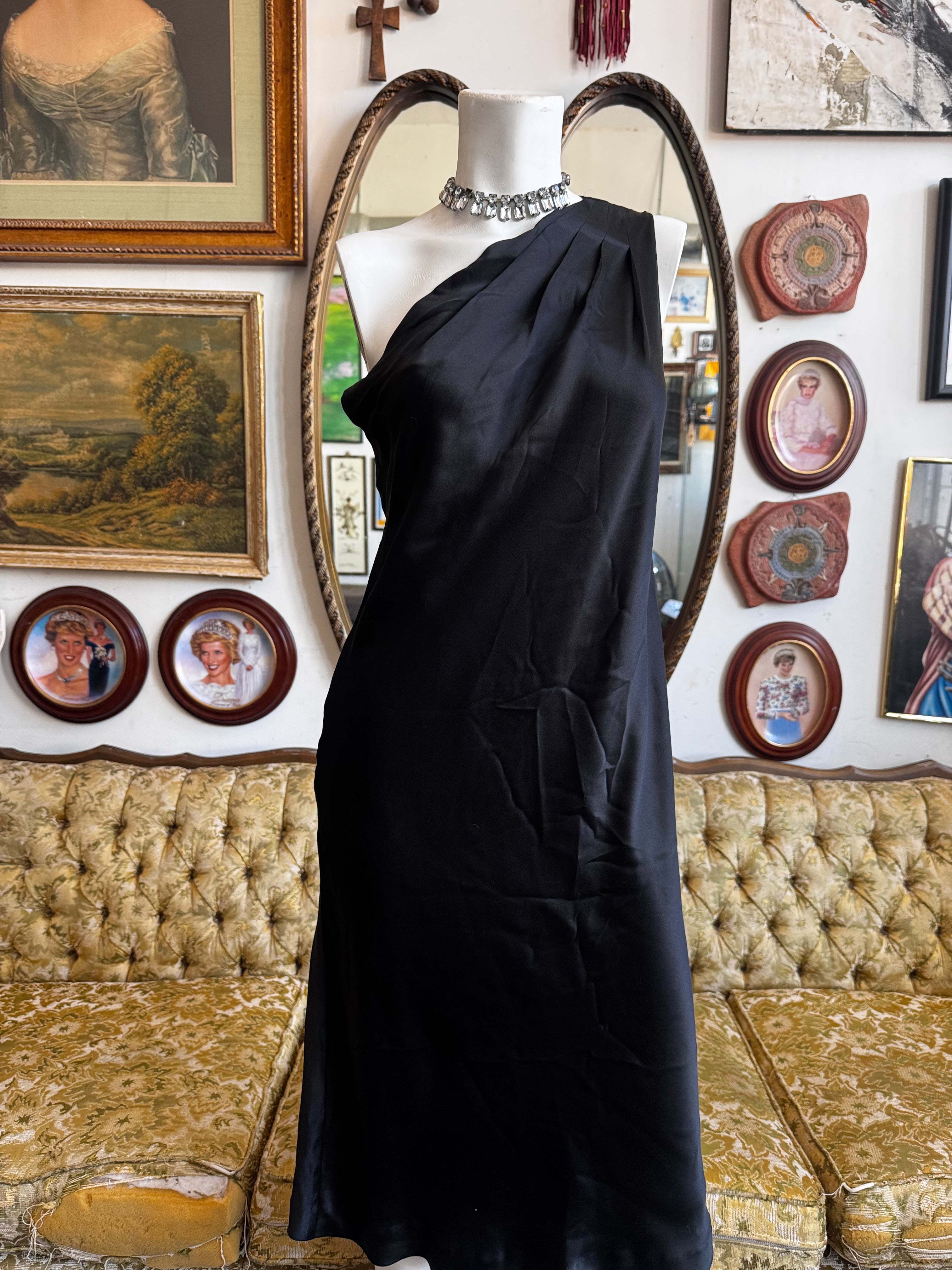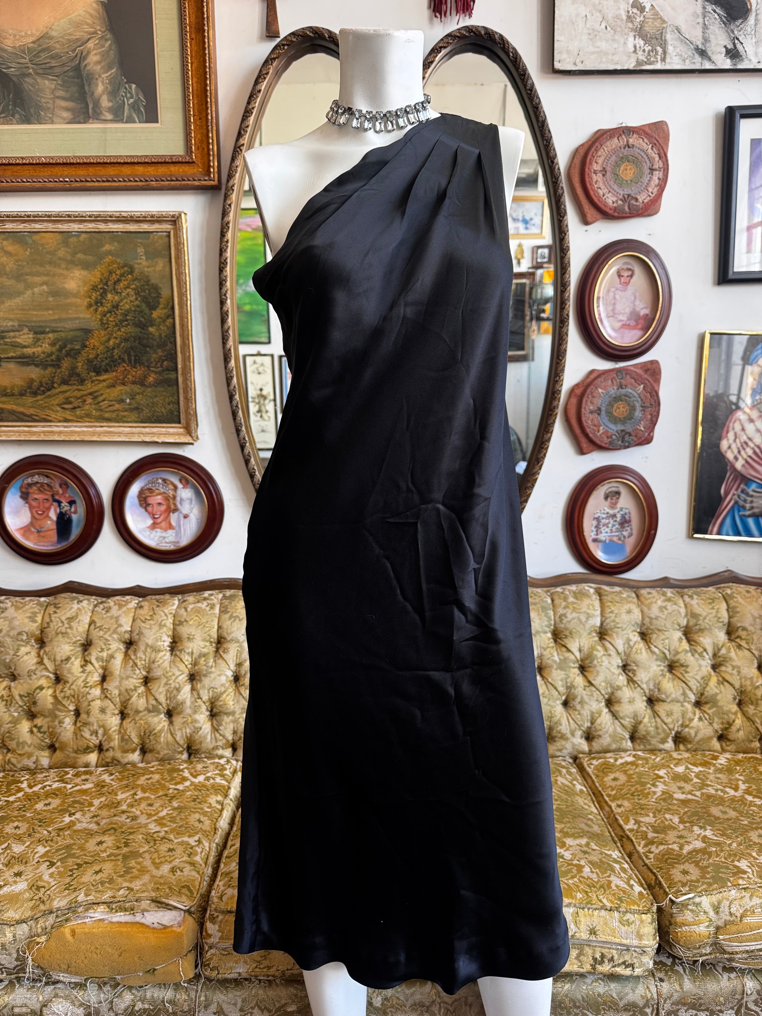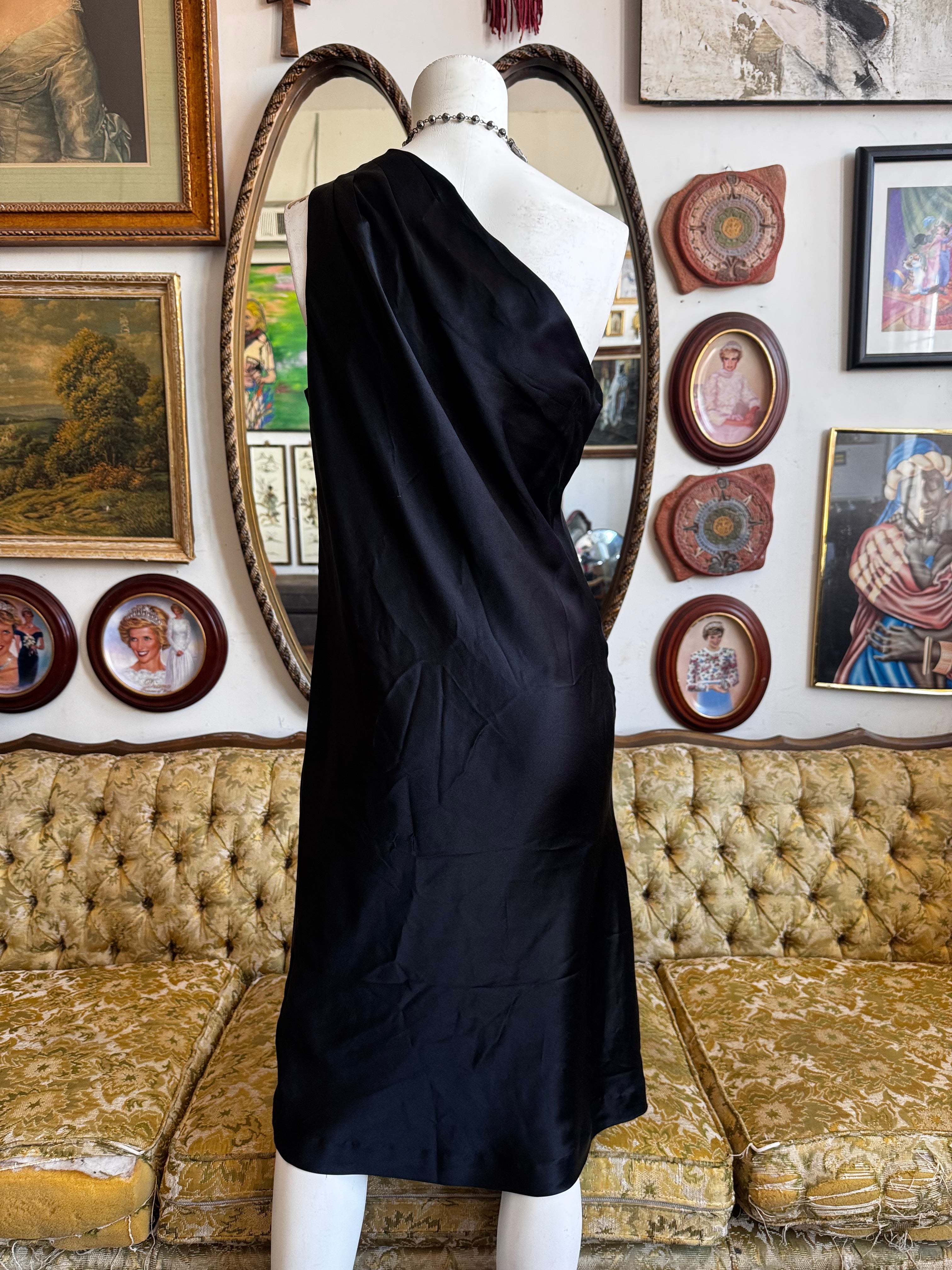 H3aven08 2008 Banana Republic Black Silk One Shoulder Dress Size 8