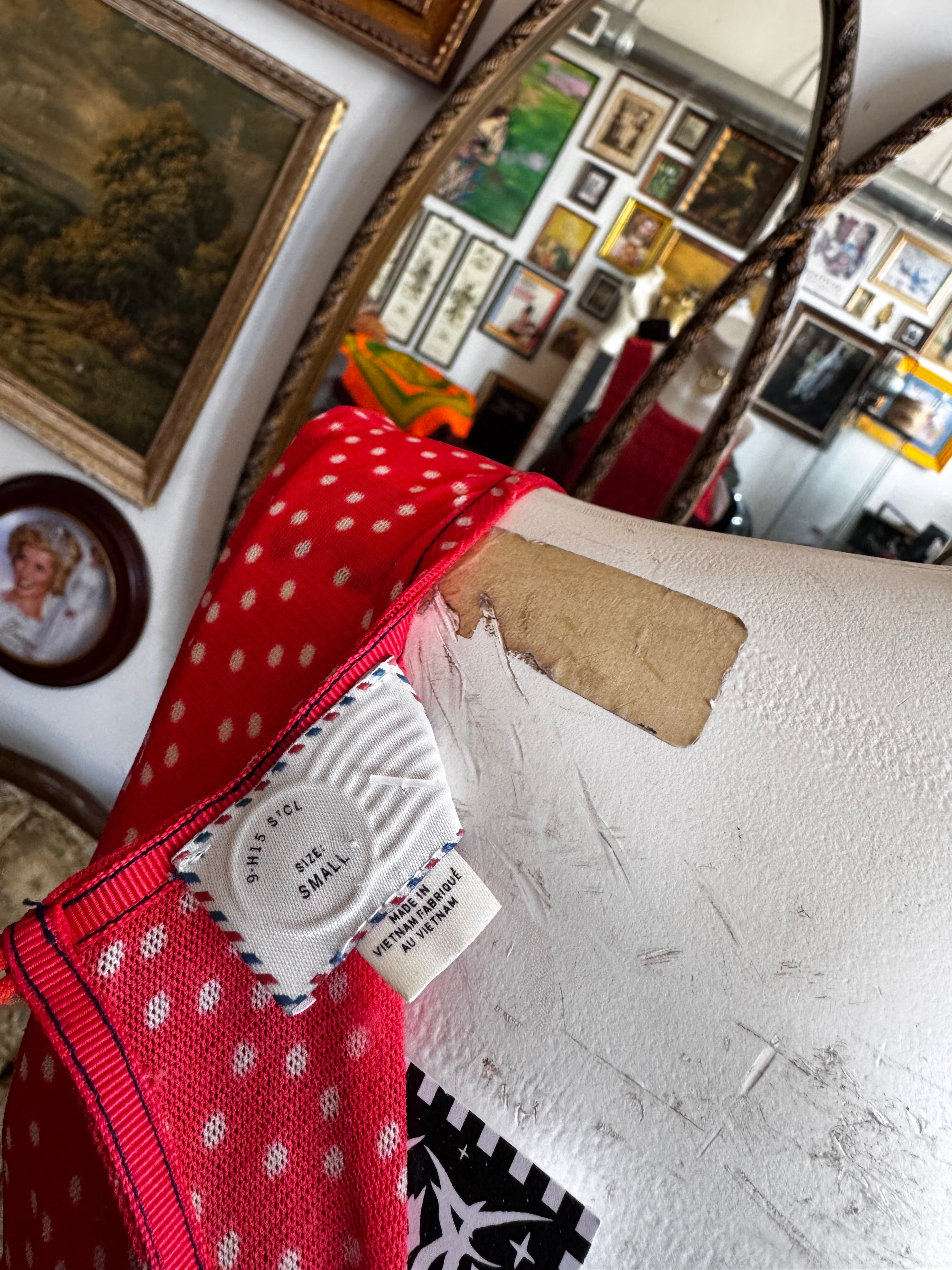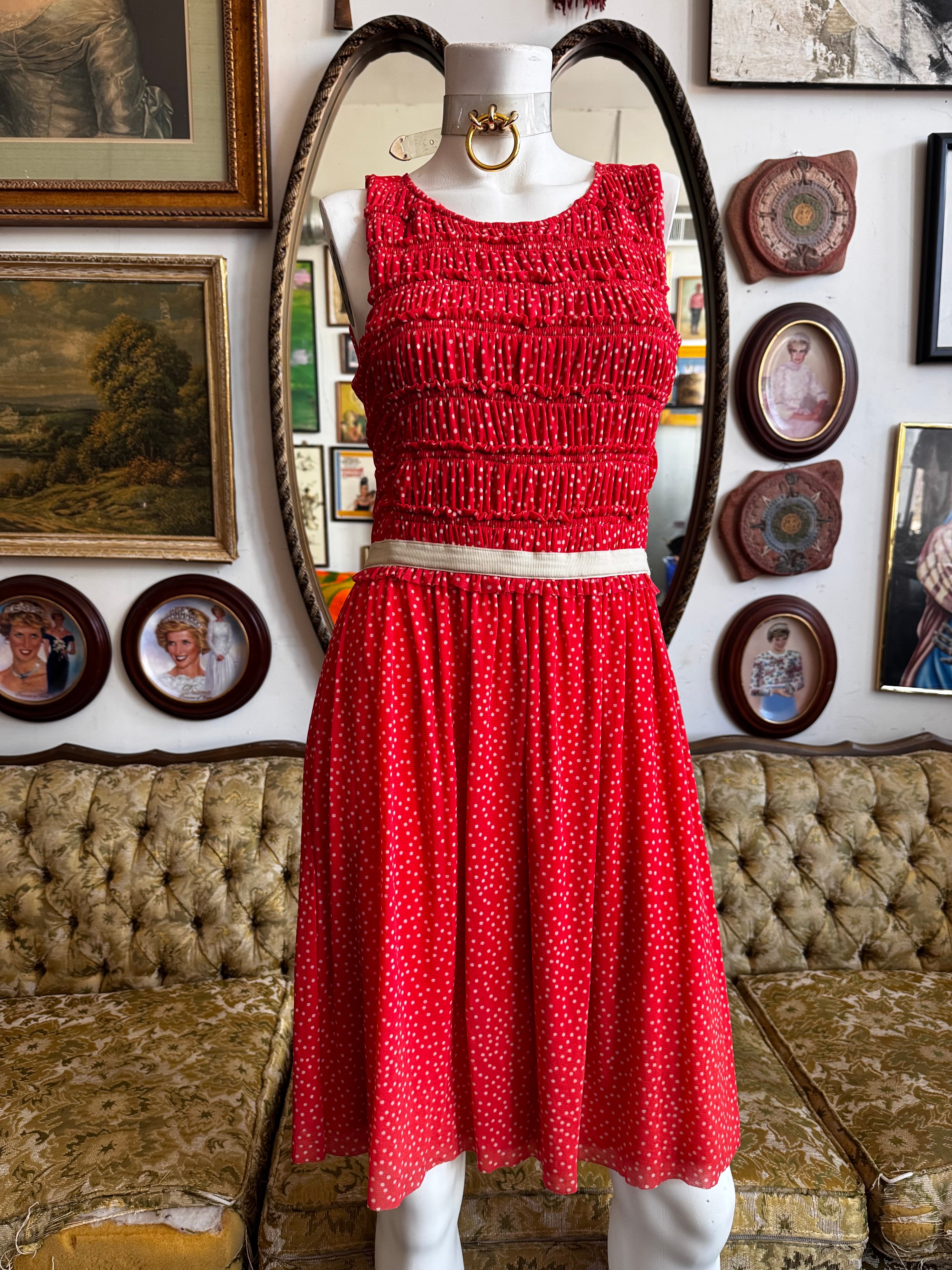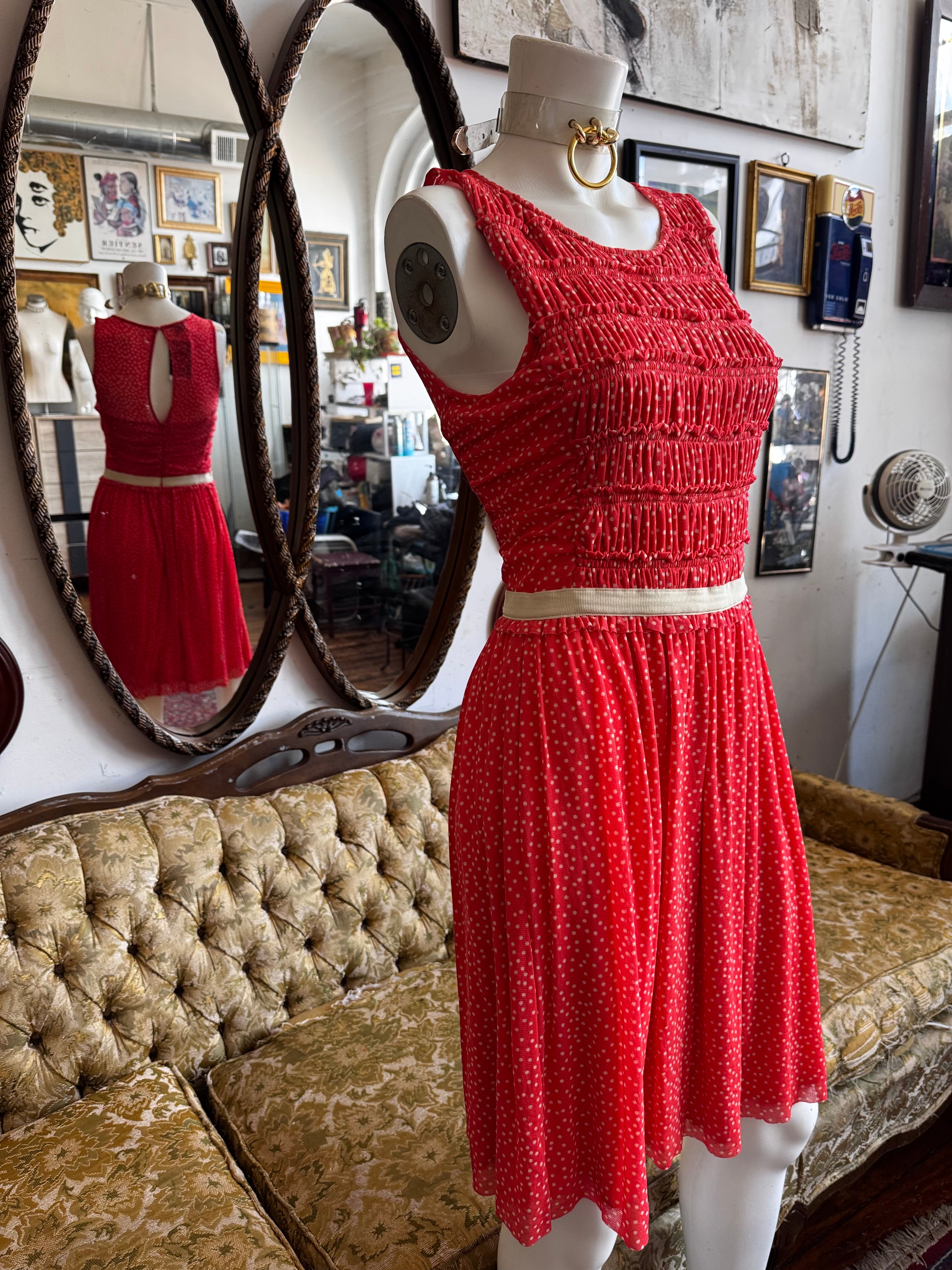 Red Polka Dot Mesh Overlay Fit and Flare Dress Size S