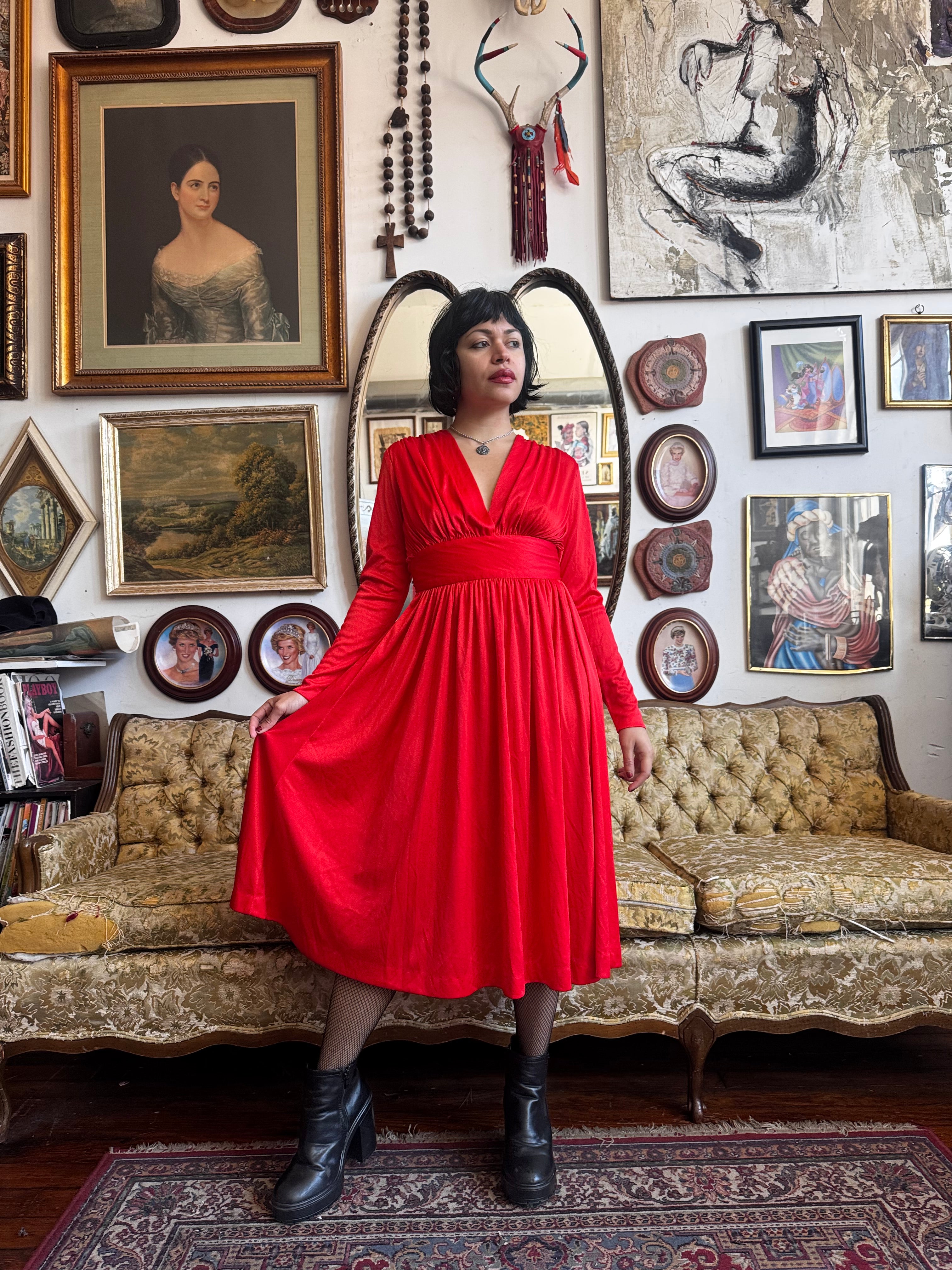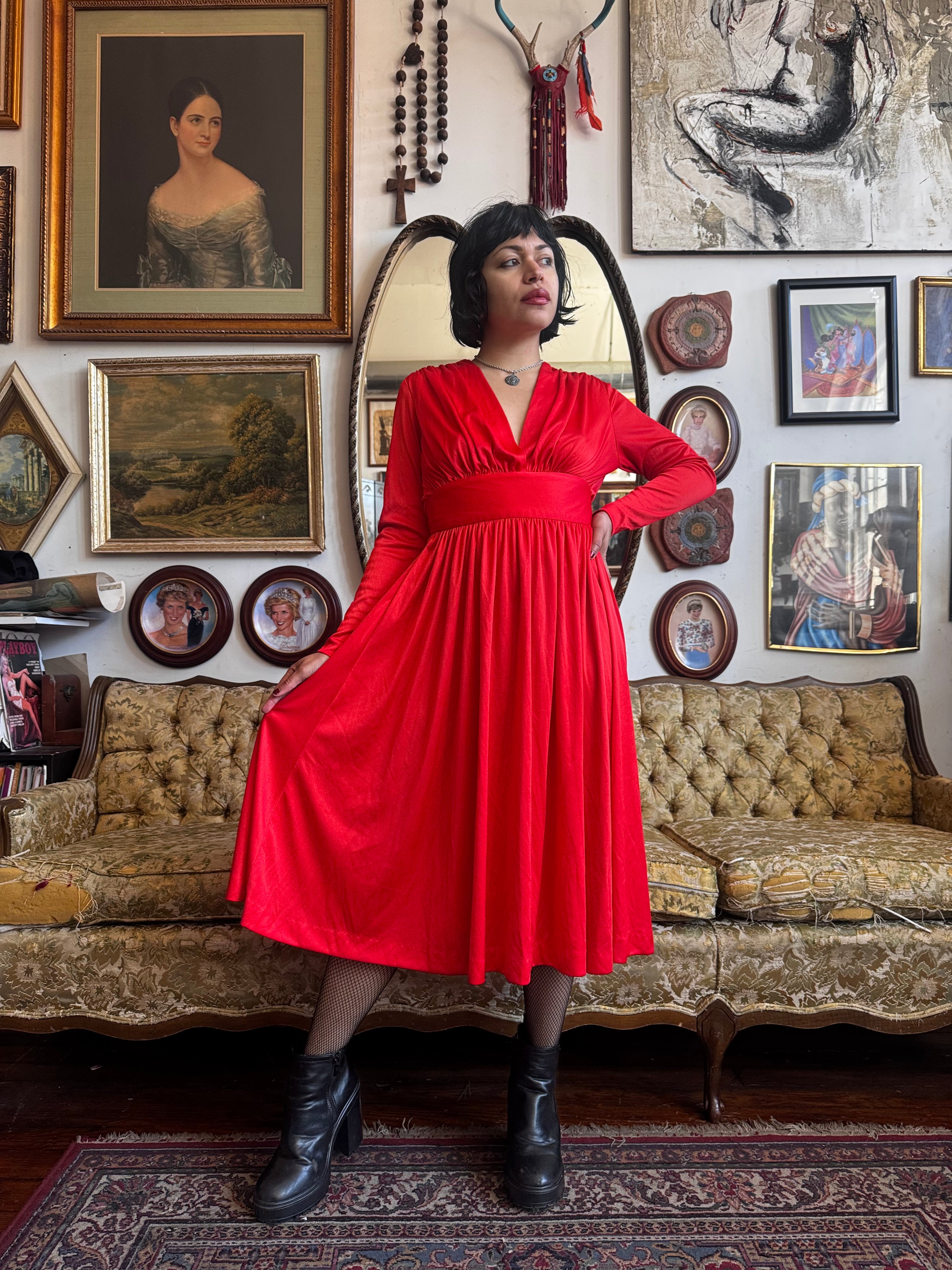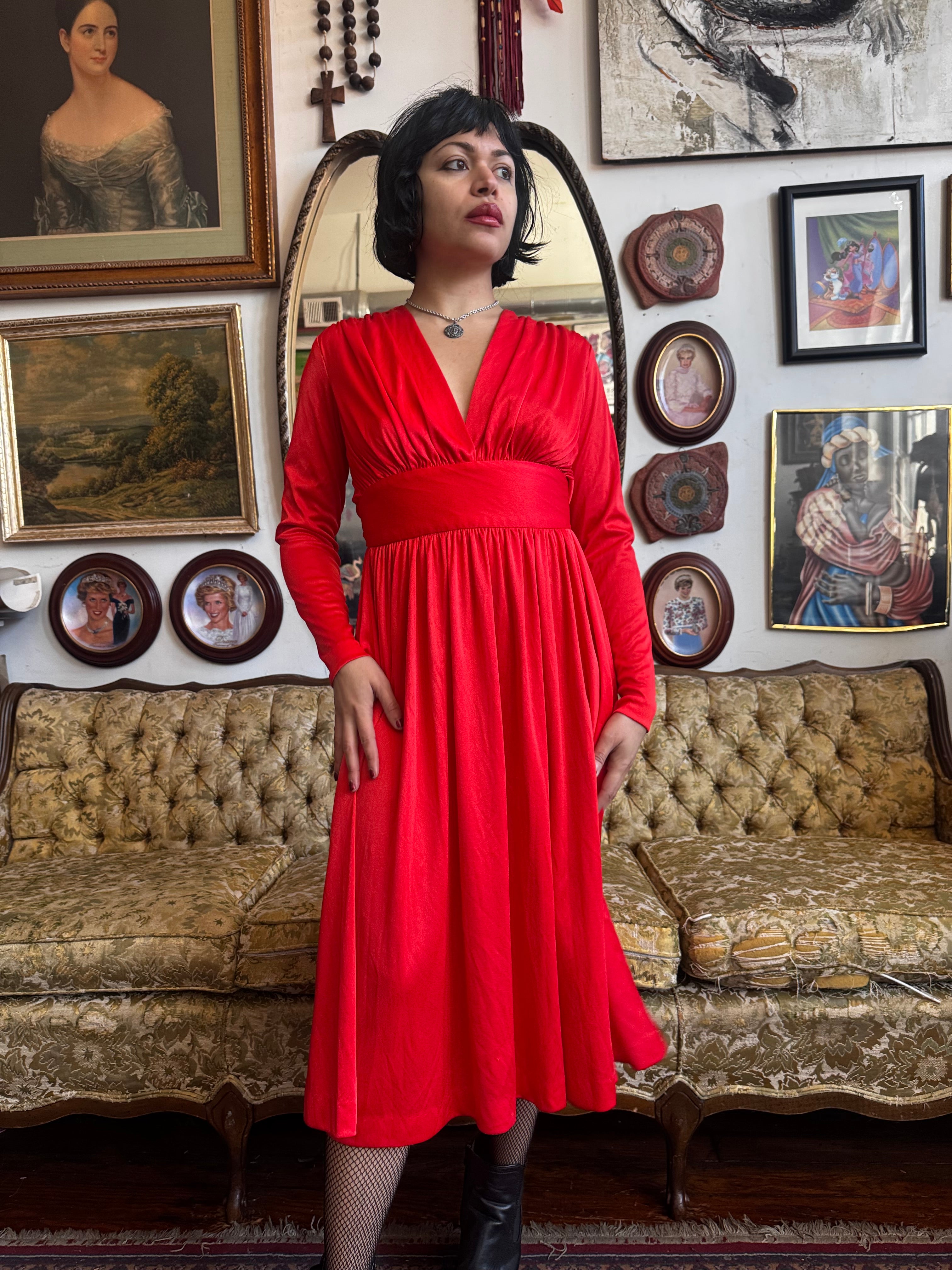 70s Vintage Joy Stevens Empire Waist Midi Dress Size S/M