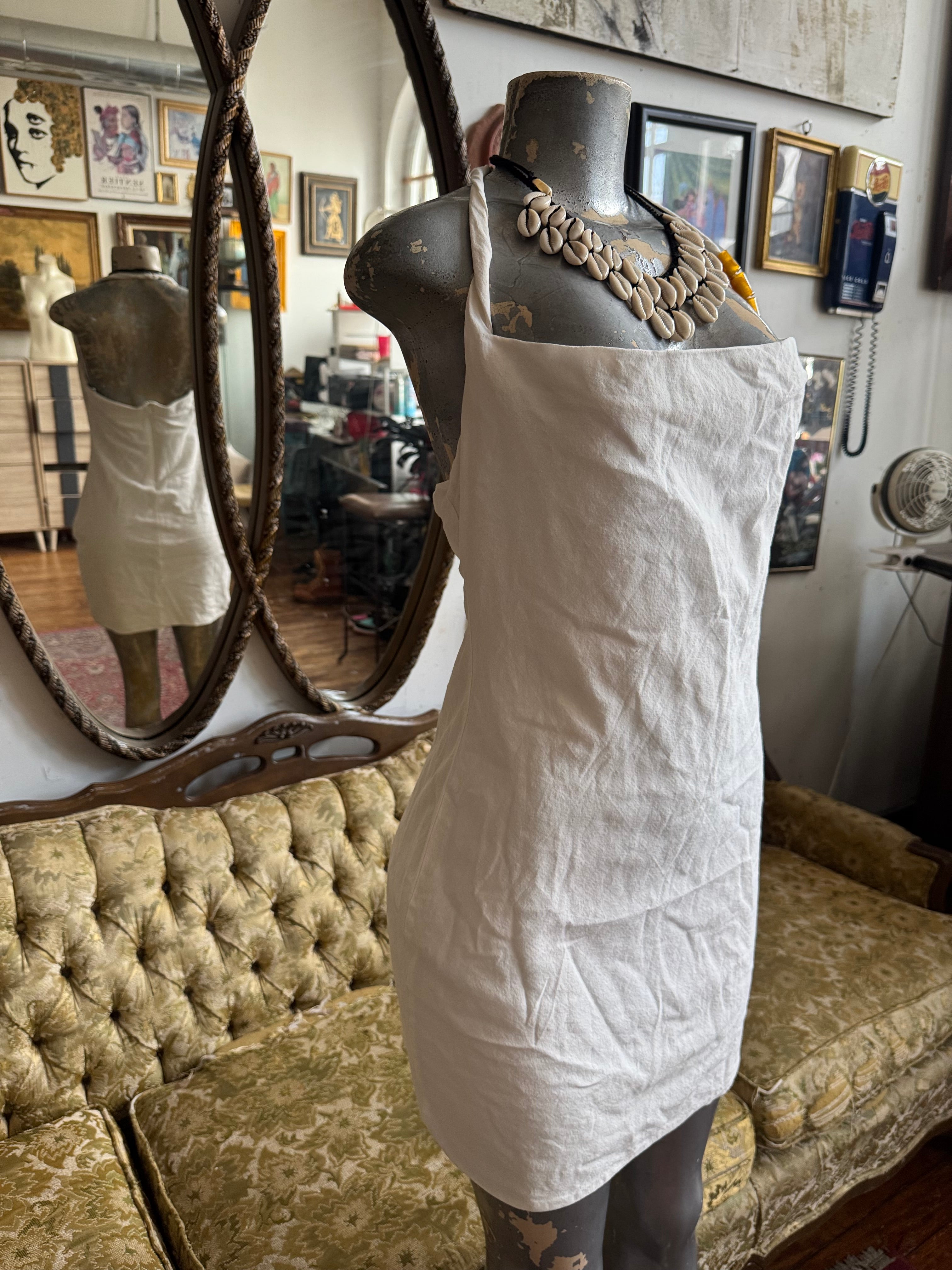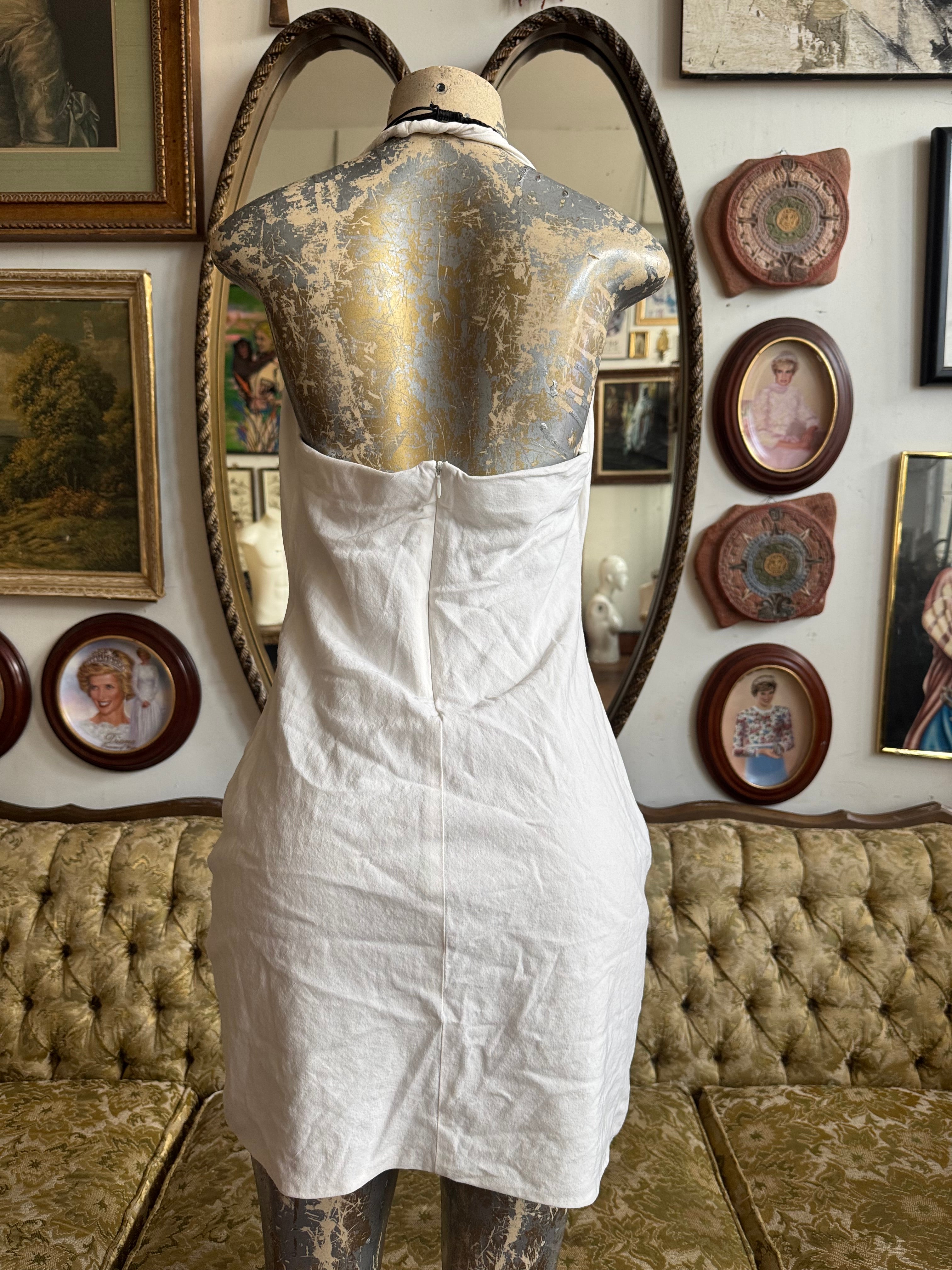 ZARA Off-White Halter Mini Dress Size L AS IS