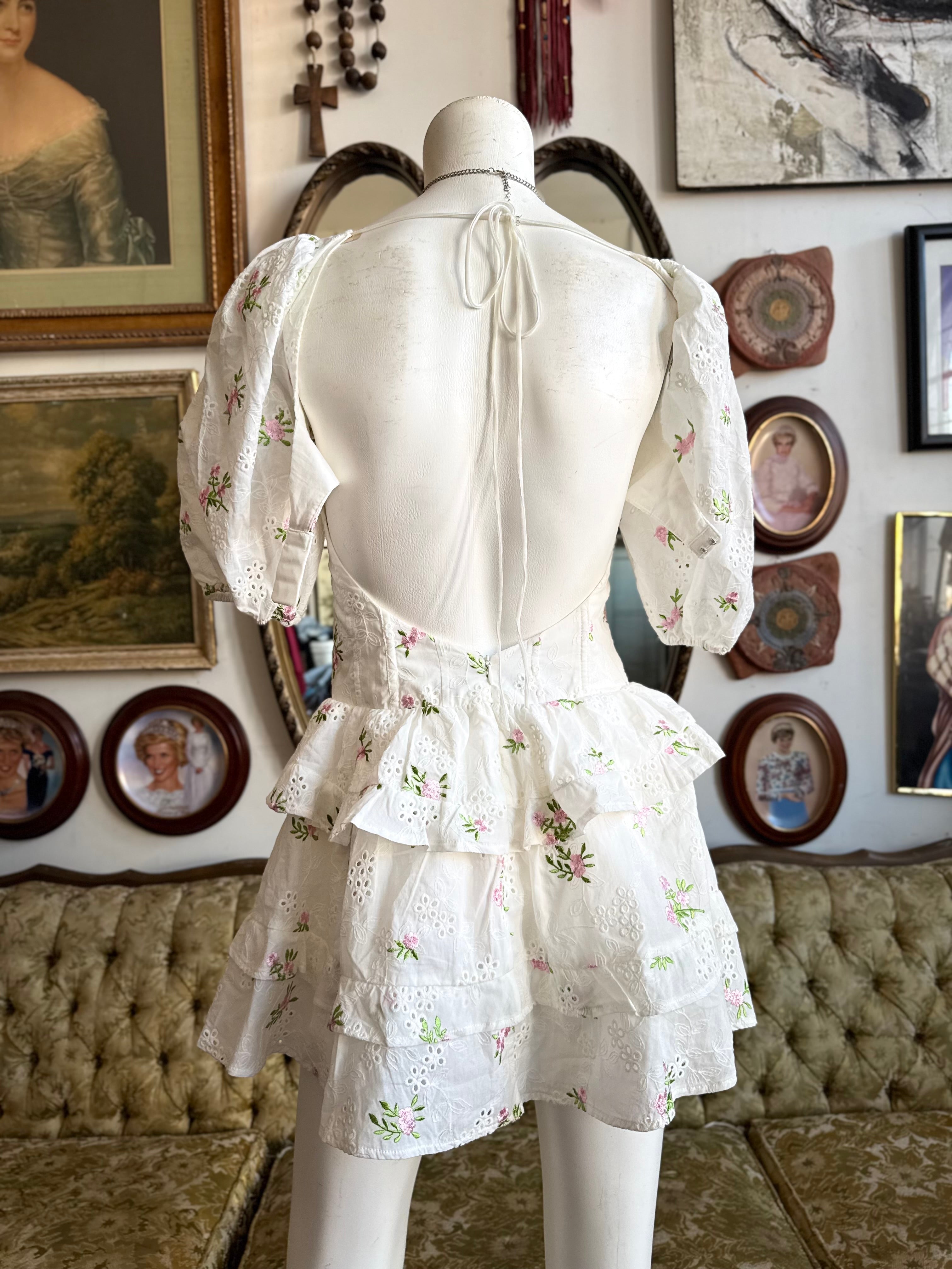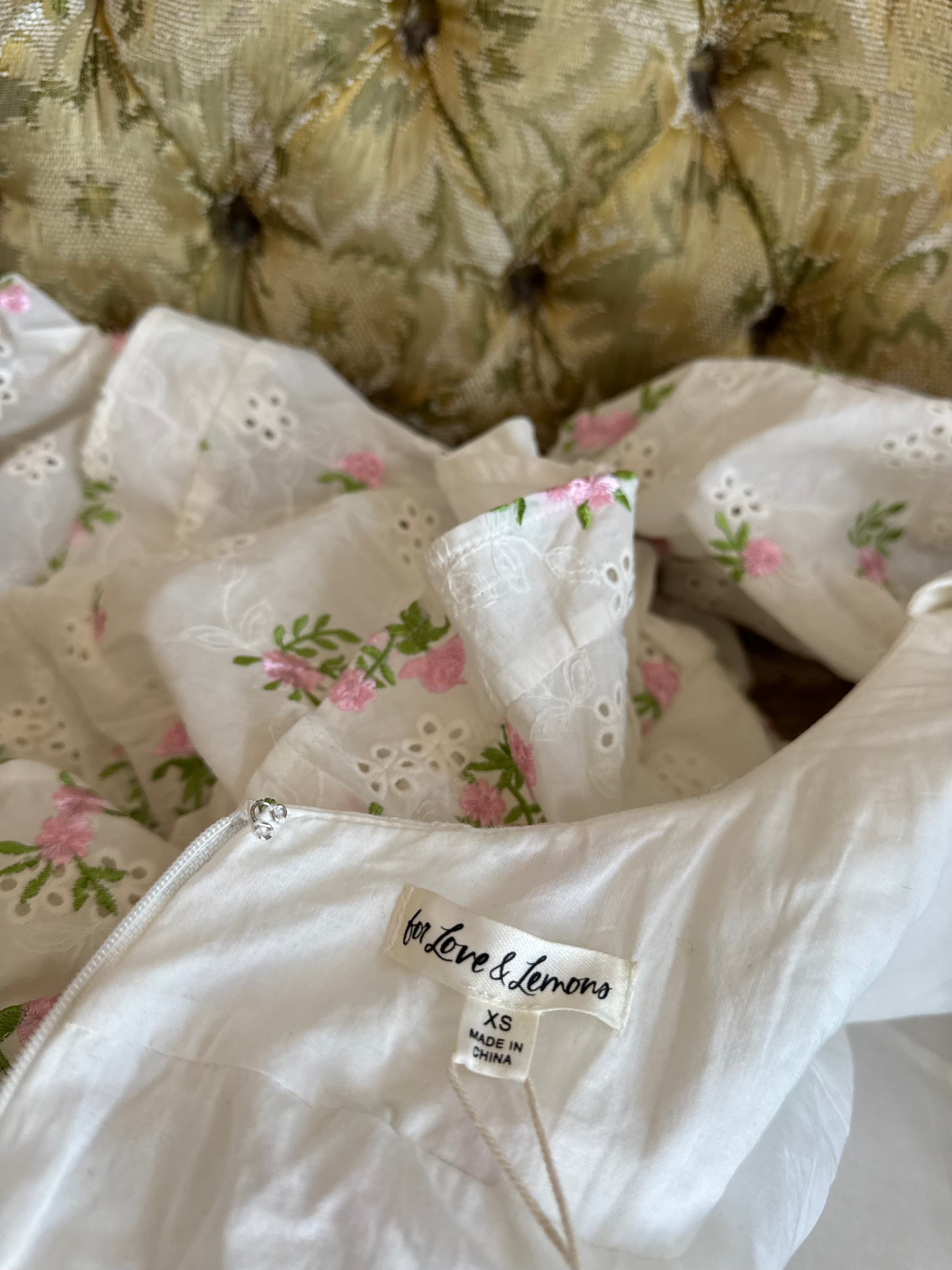 NWT Kingsley Eyelet Embroidered White Mini Dress by Love and Lemons XS