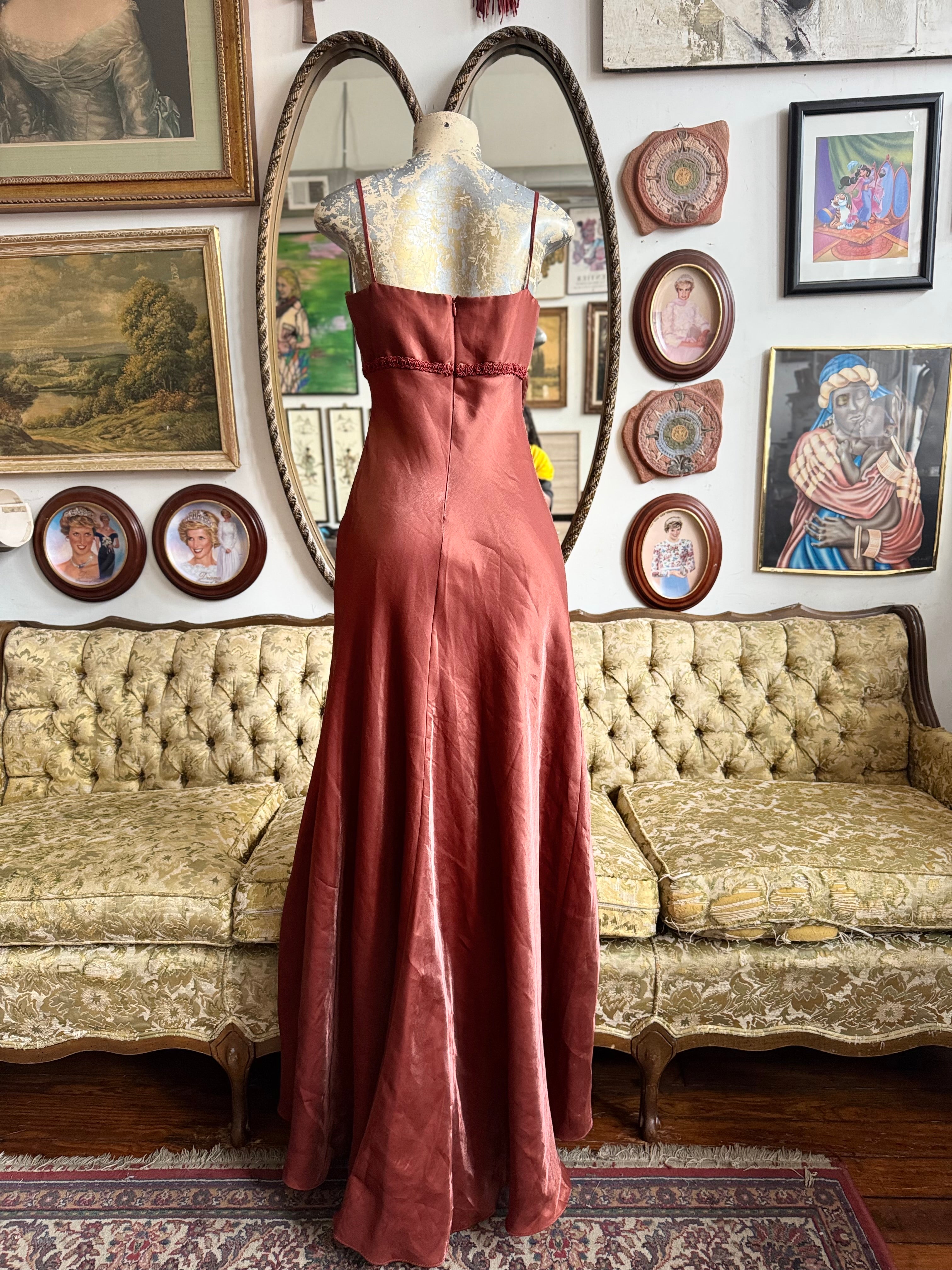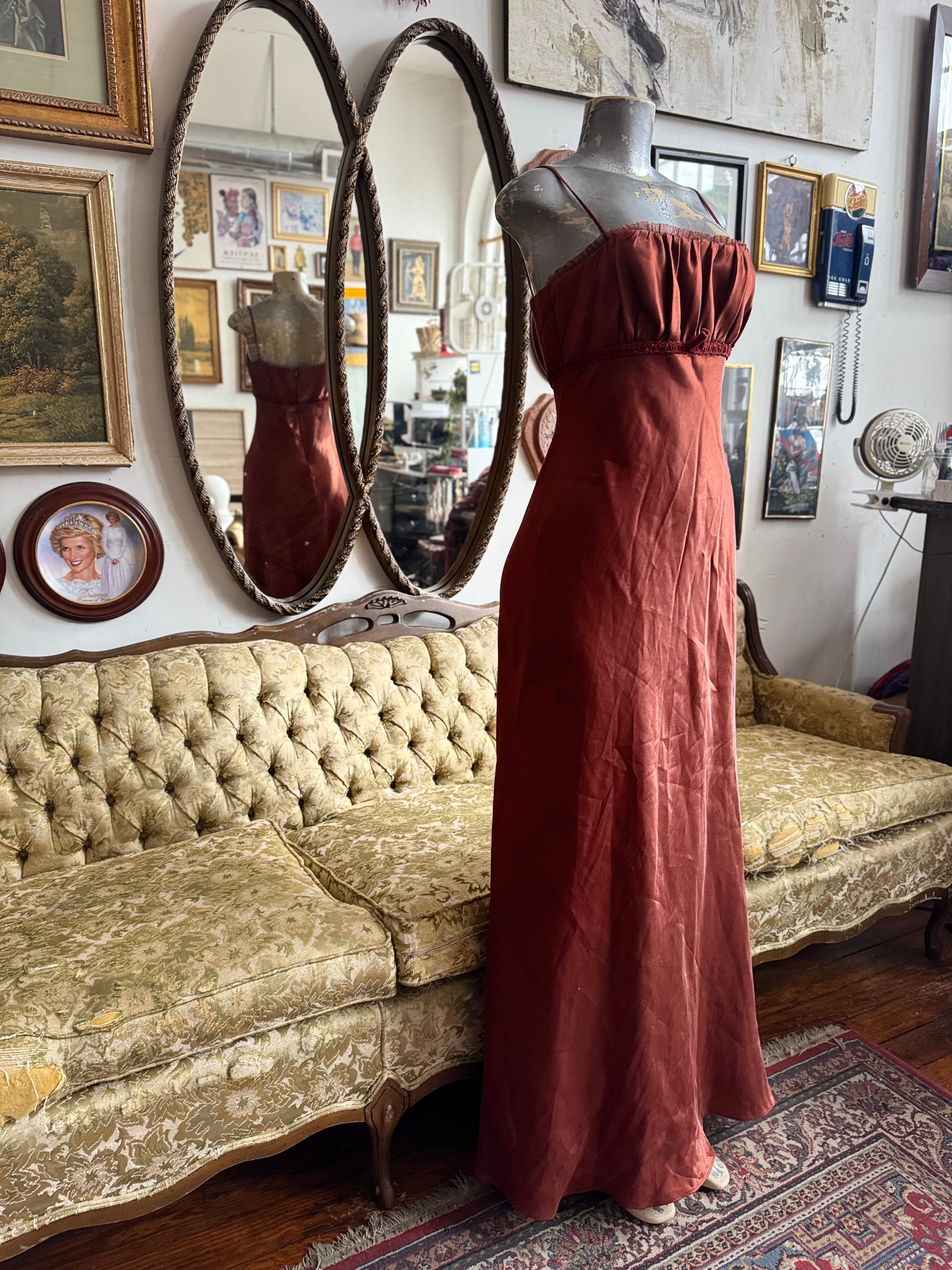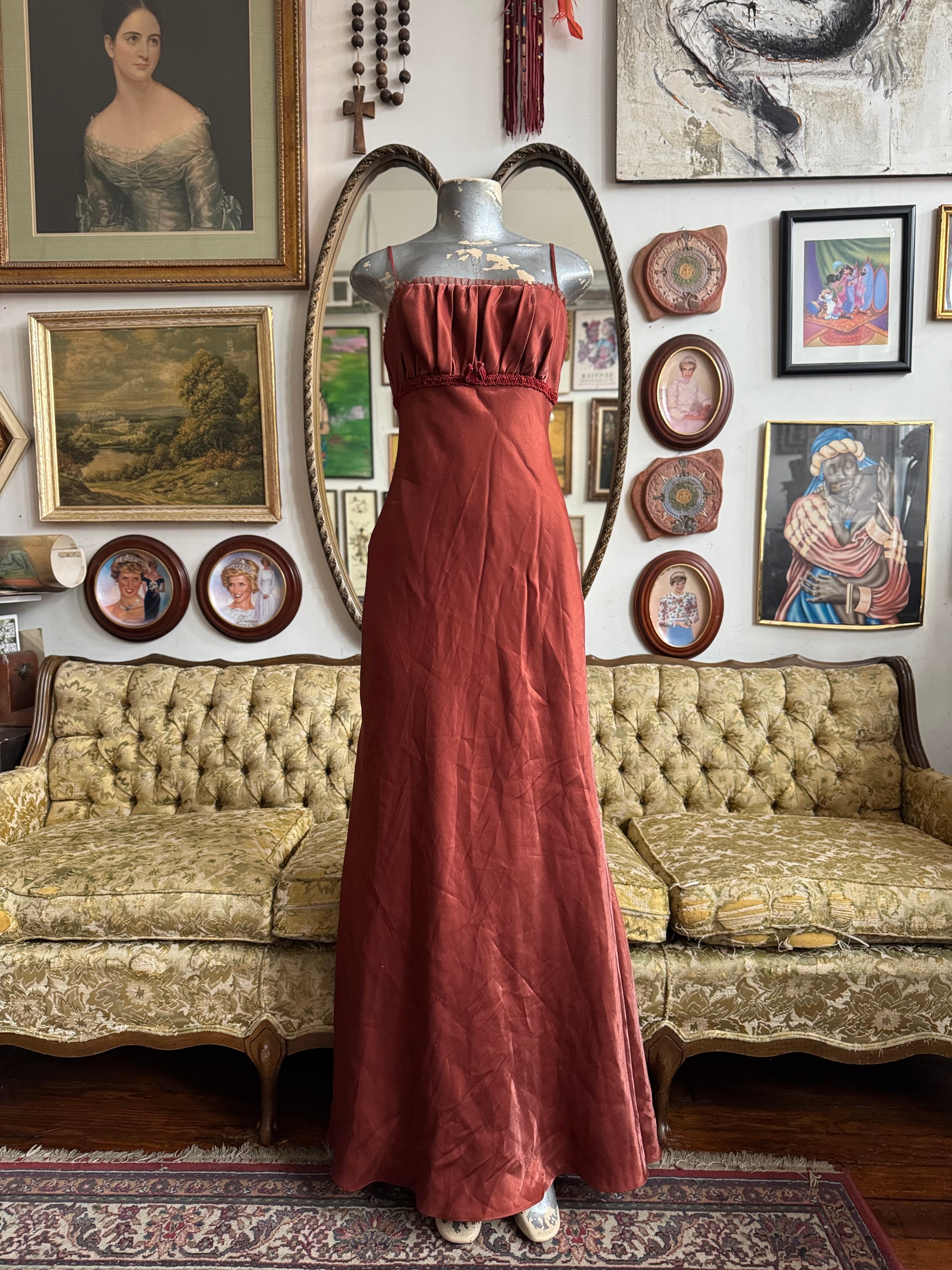 Y2k Vintage David’s Bridal Rust Babydoll Maxi Dress Size 6