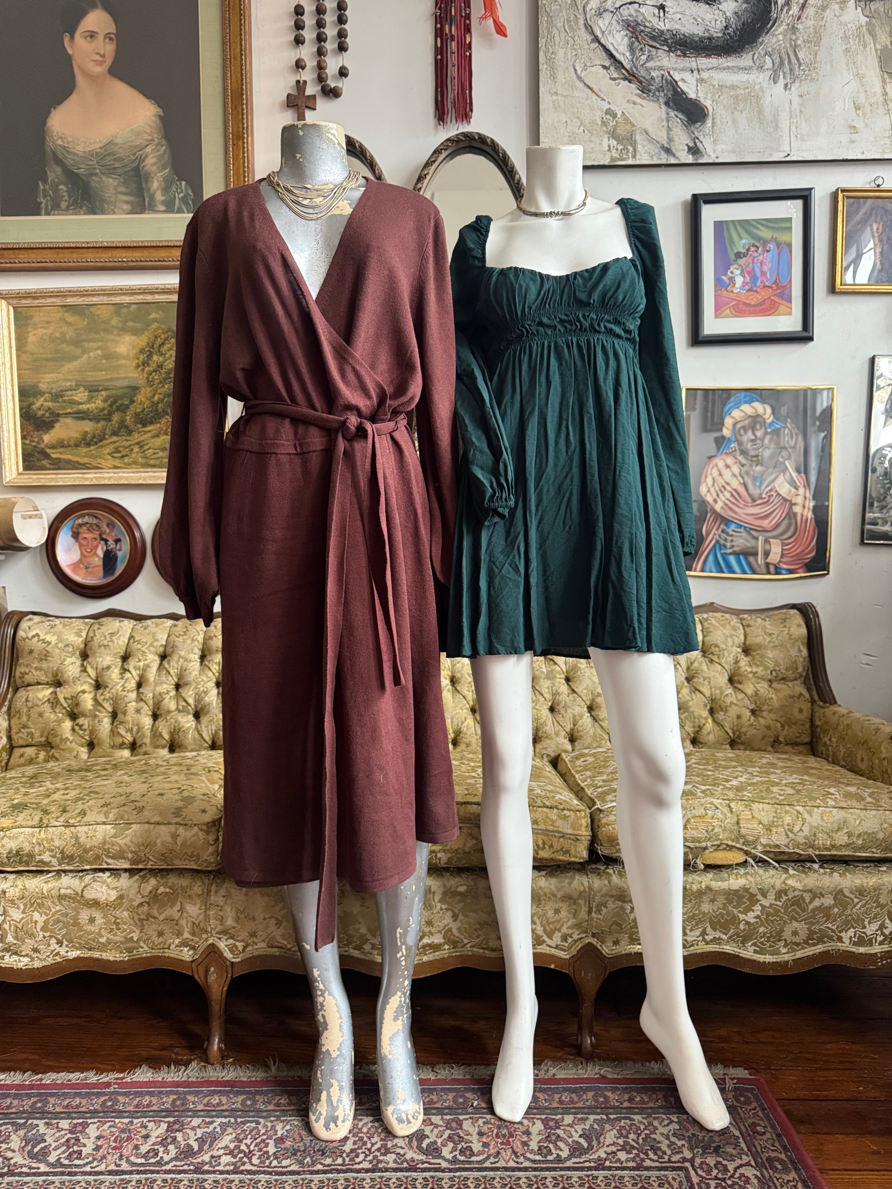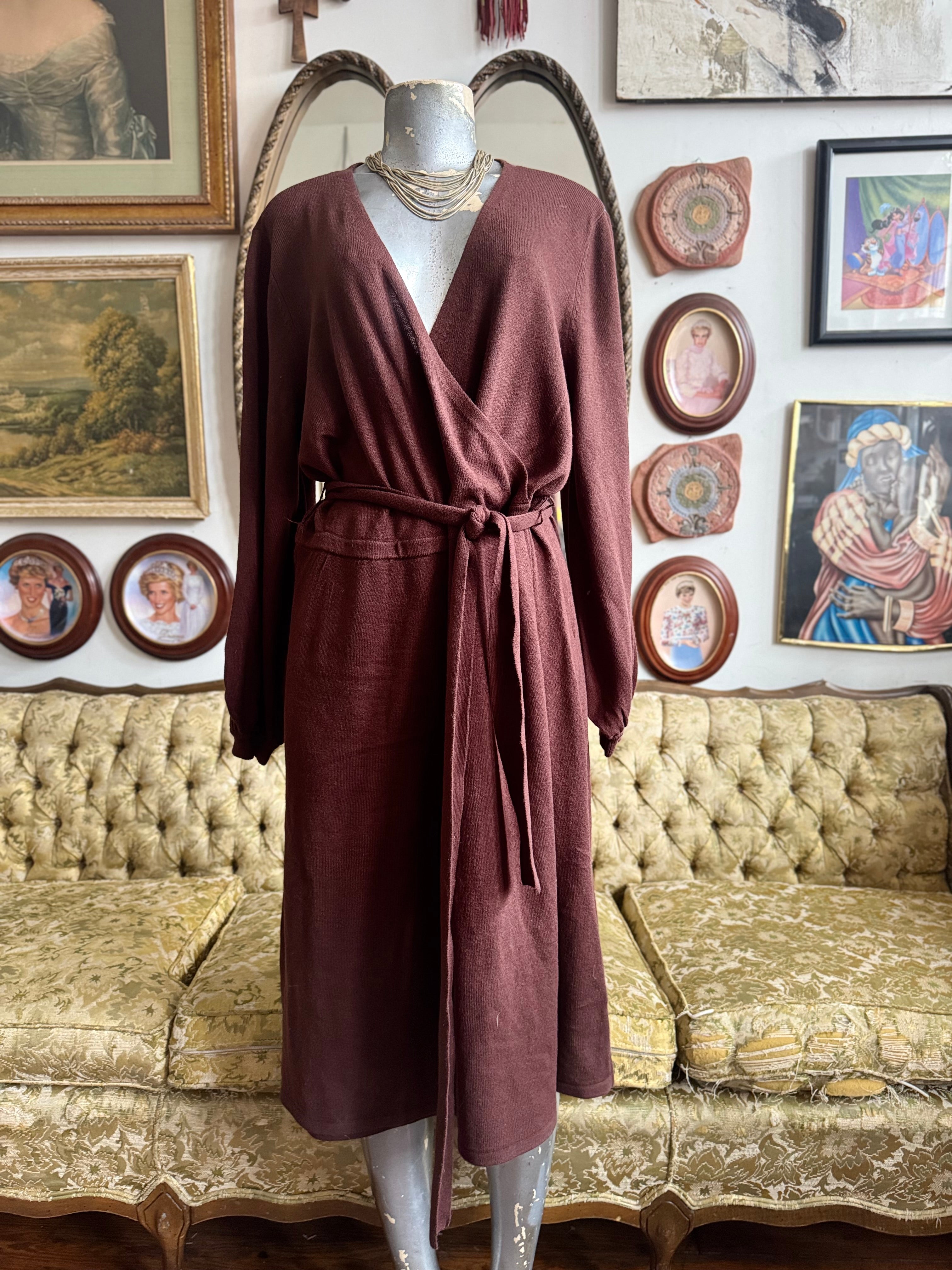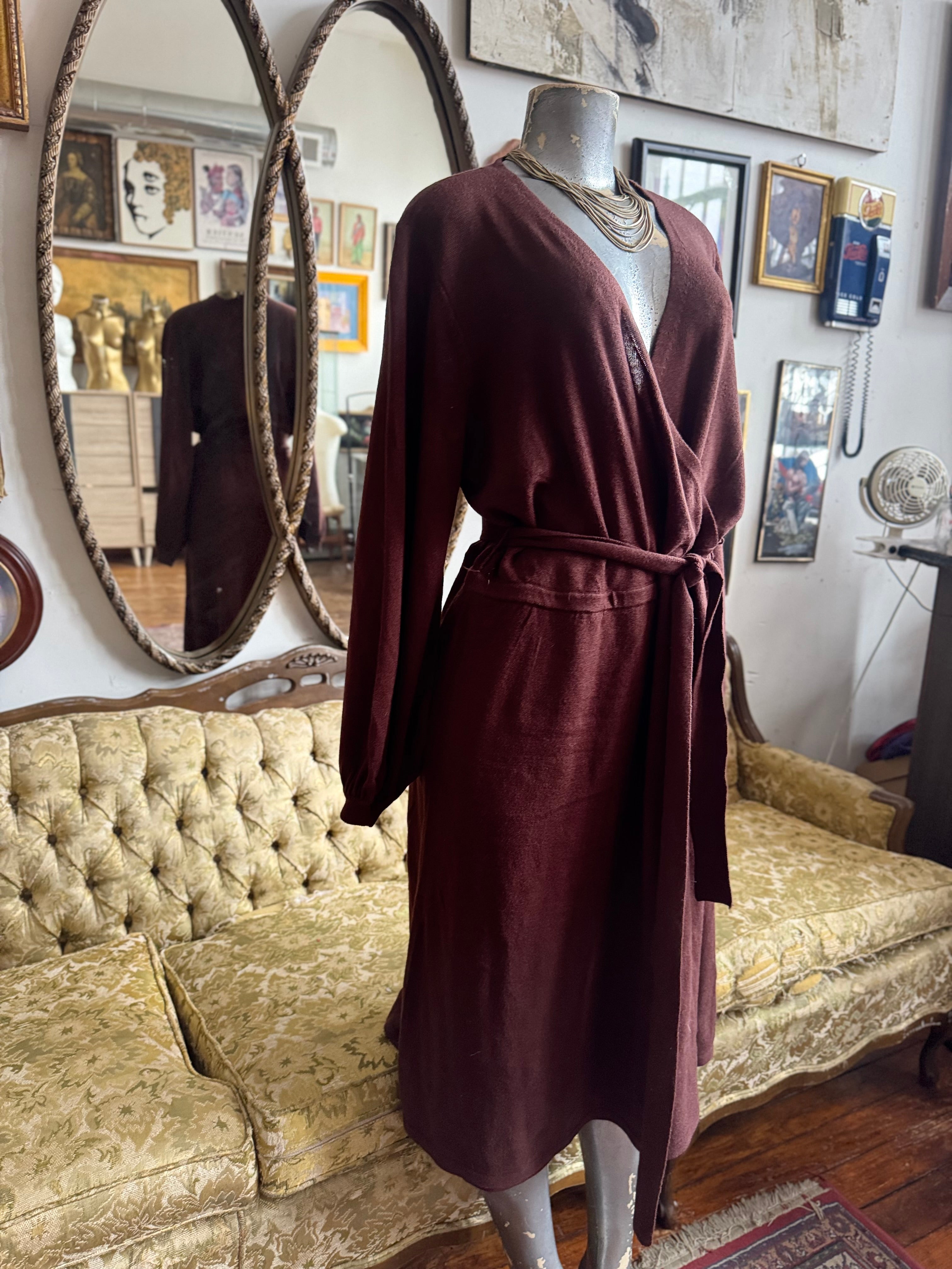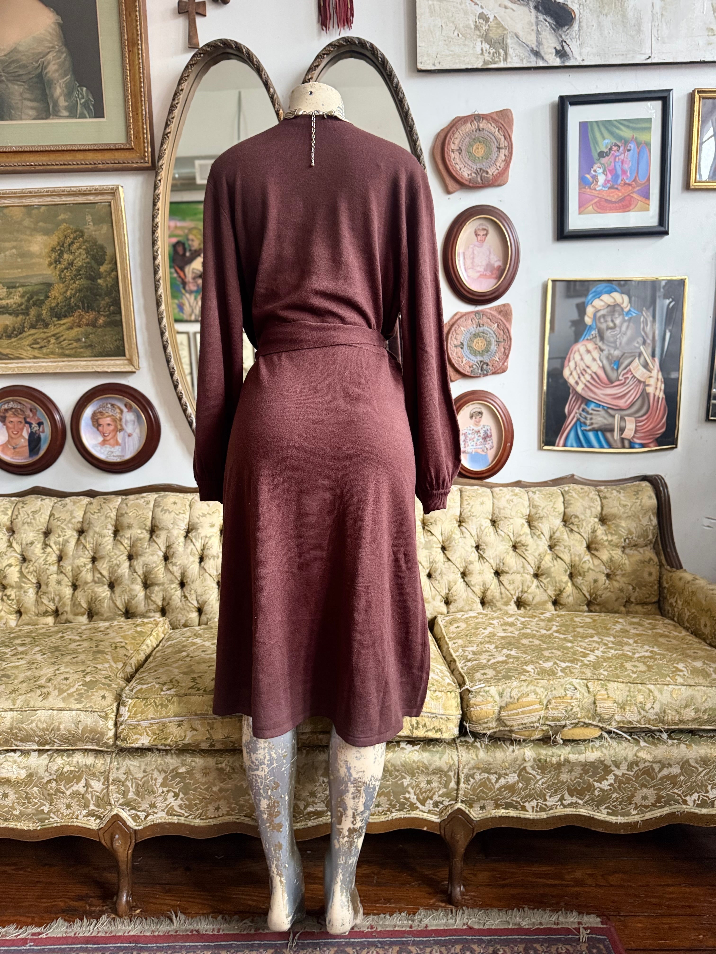 Knit Balloon Sleeve Wrap Dress Size L