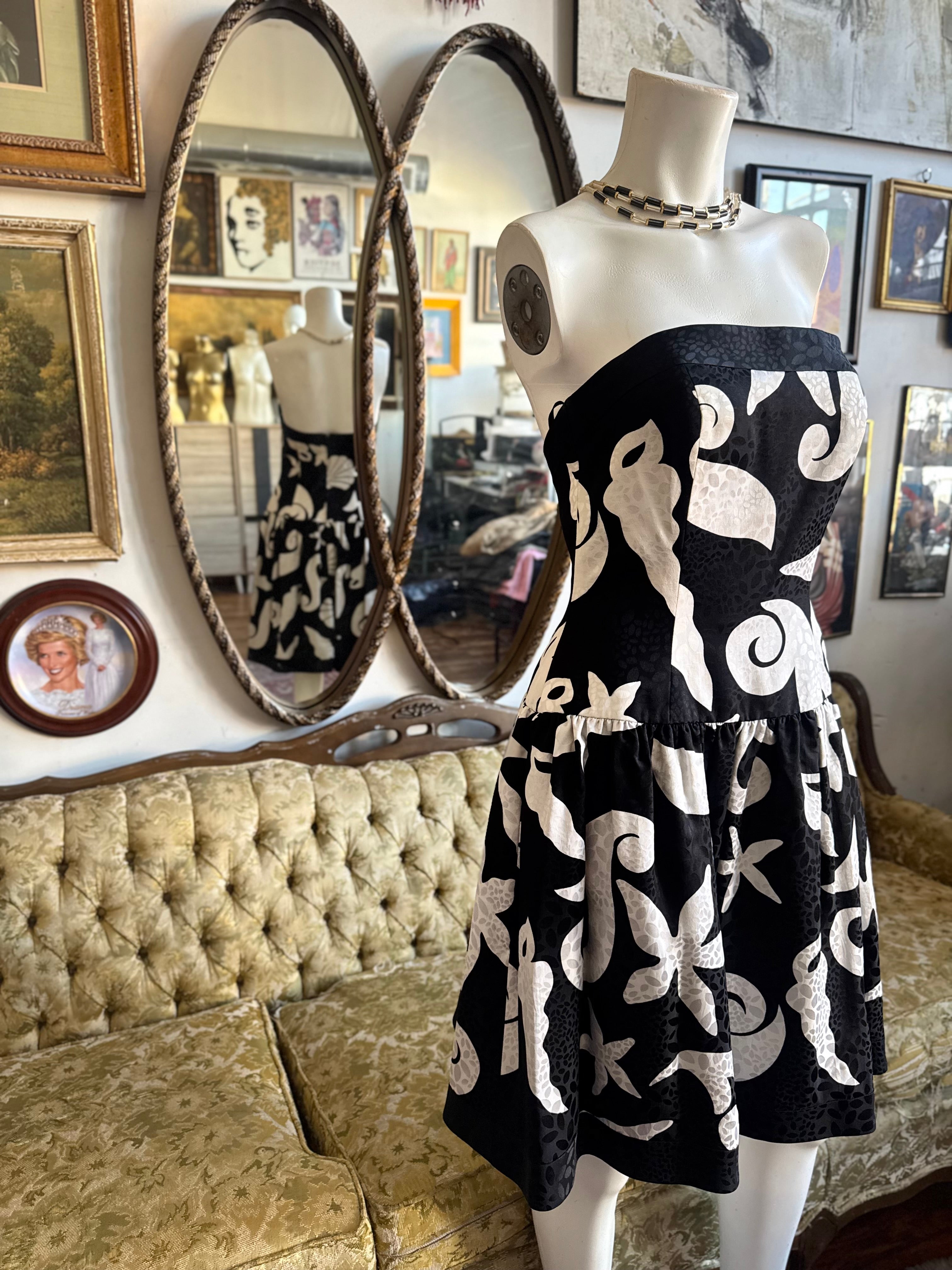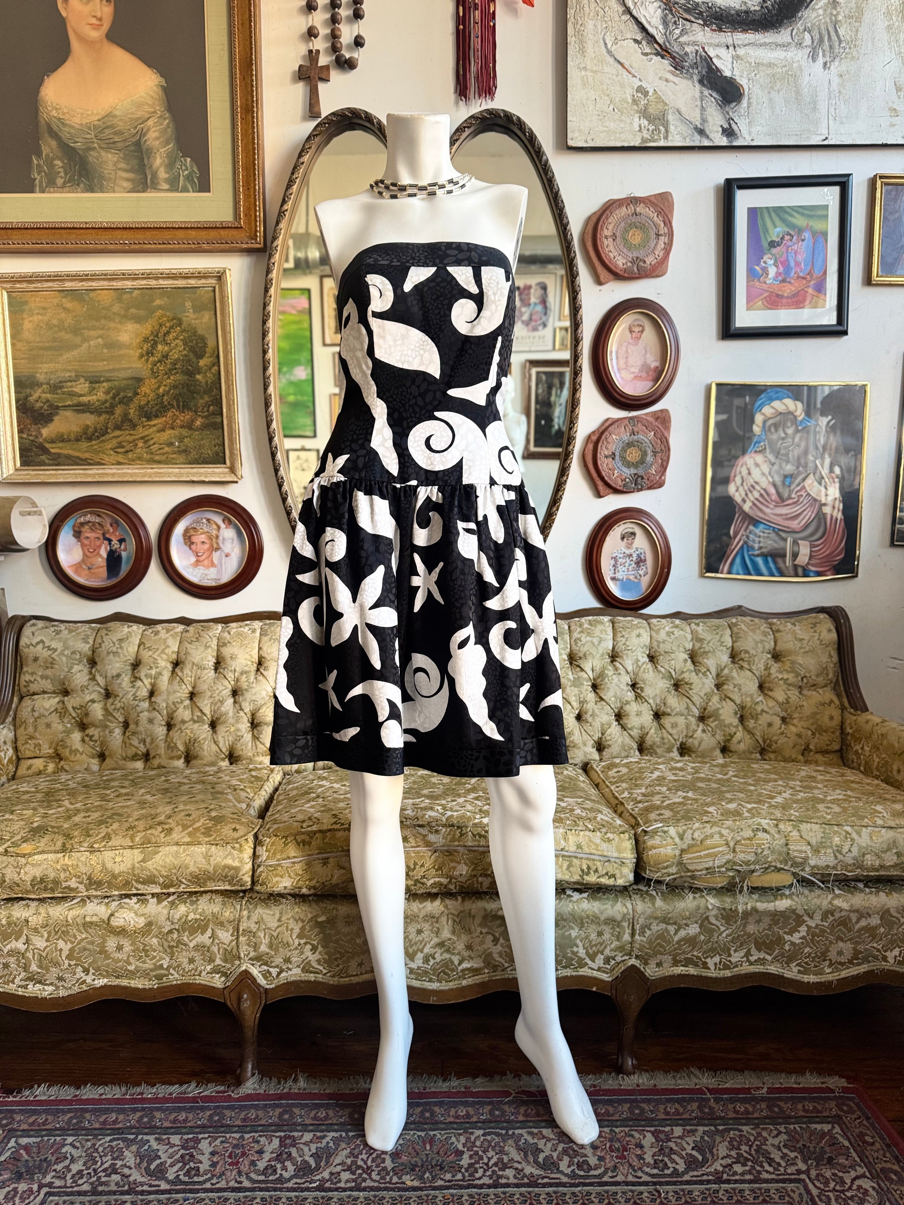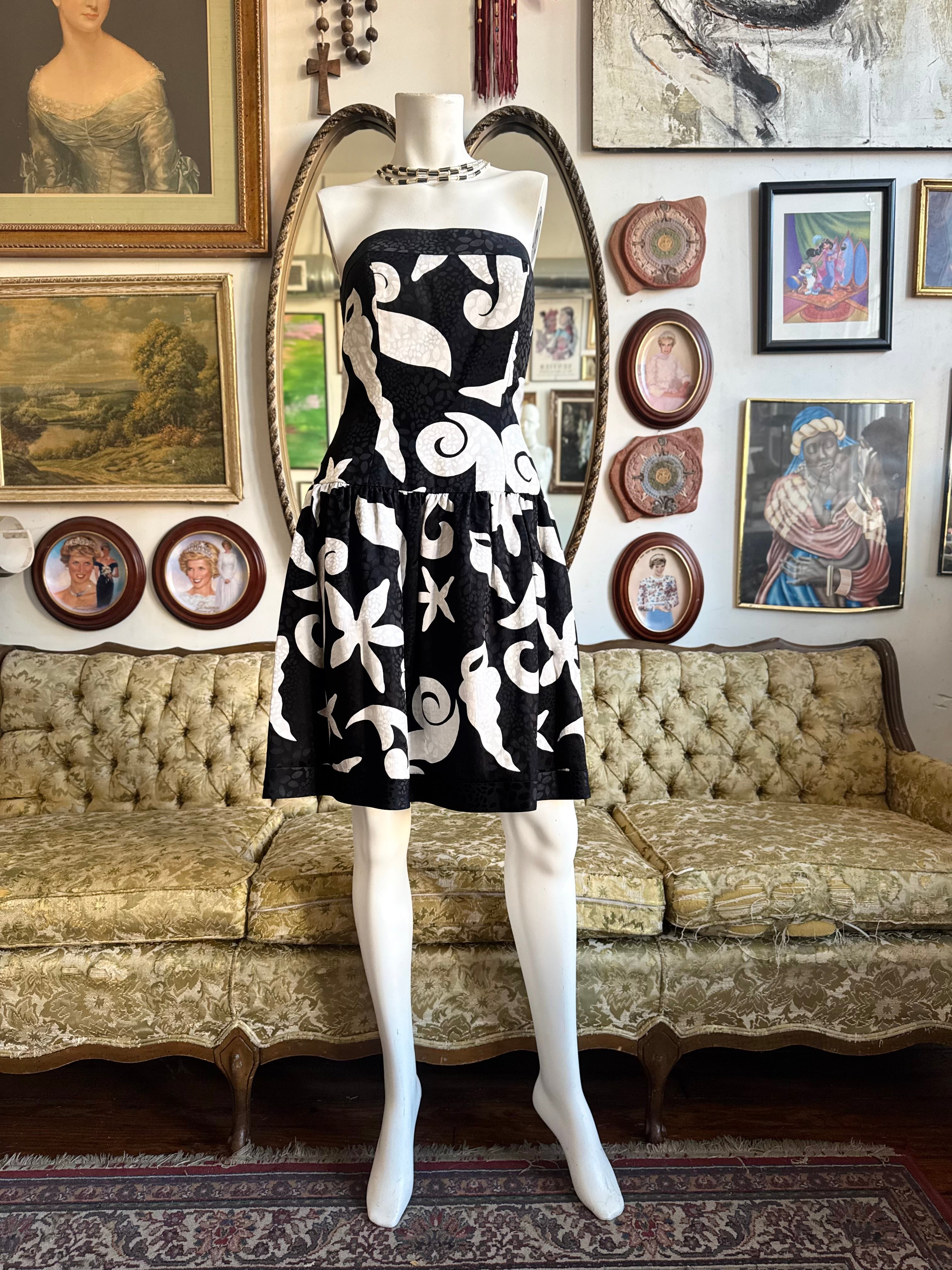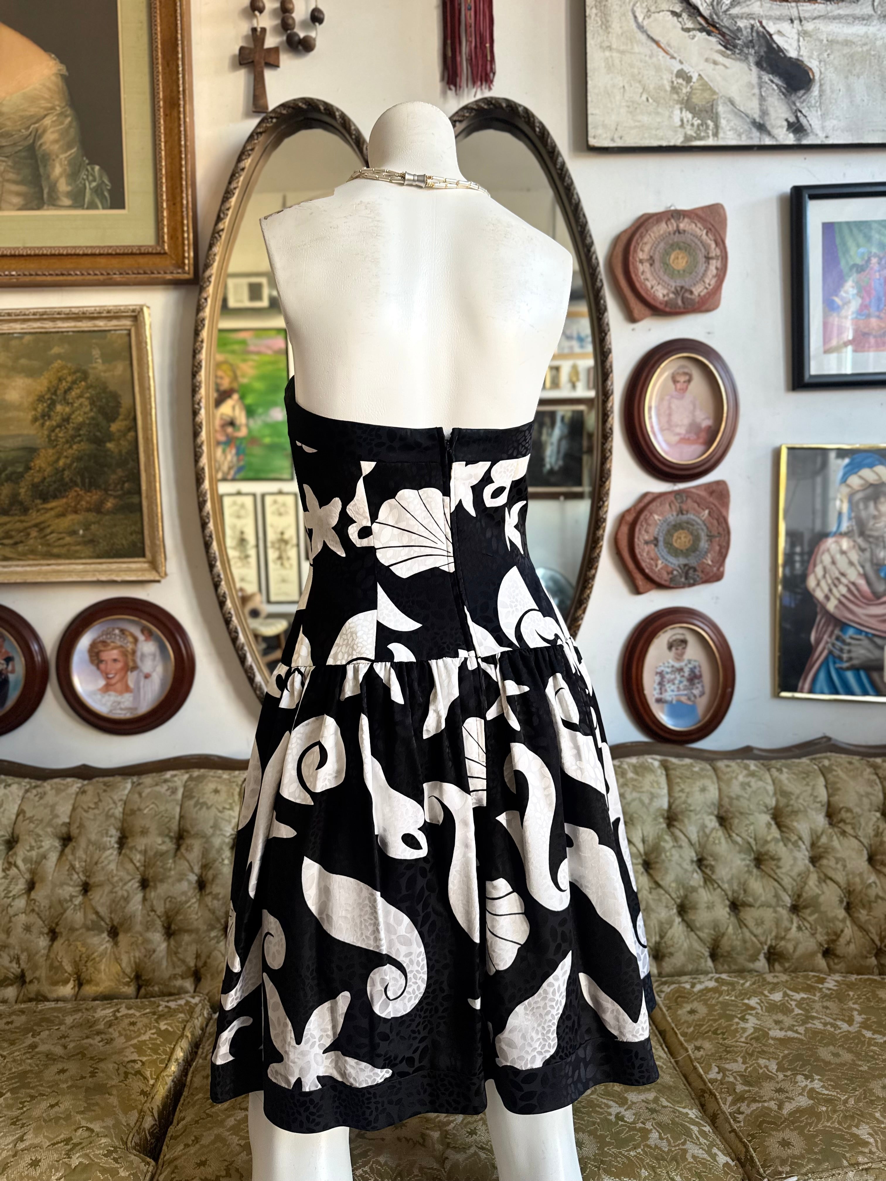 Blue Bones x Rumors Vintage 80s Silk Ocean Print Strapless Drop Waist Mini Dress Size 6