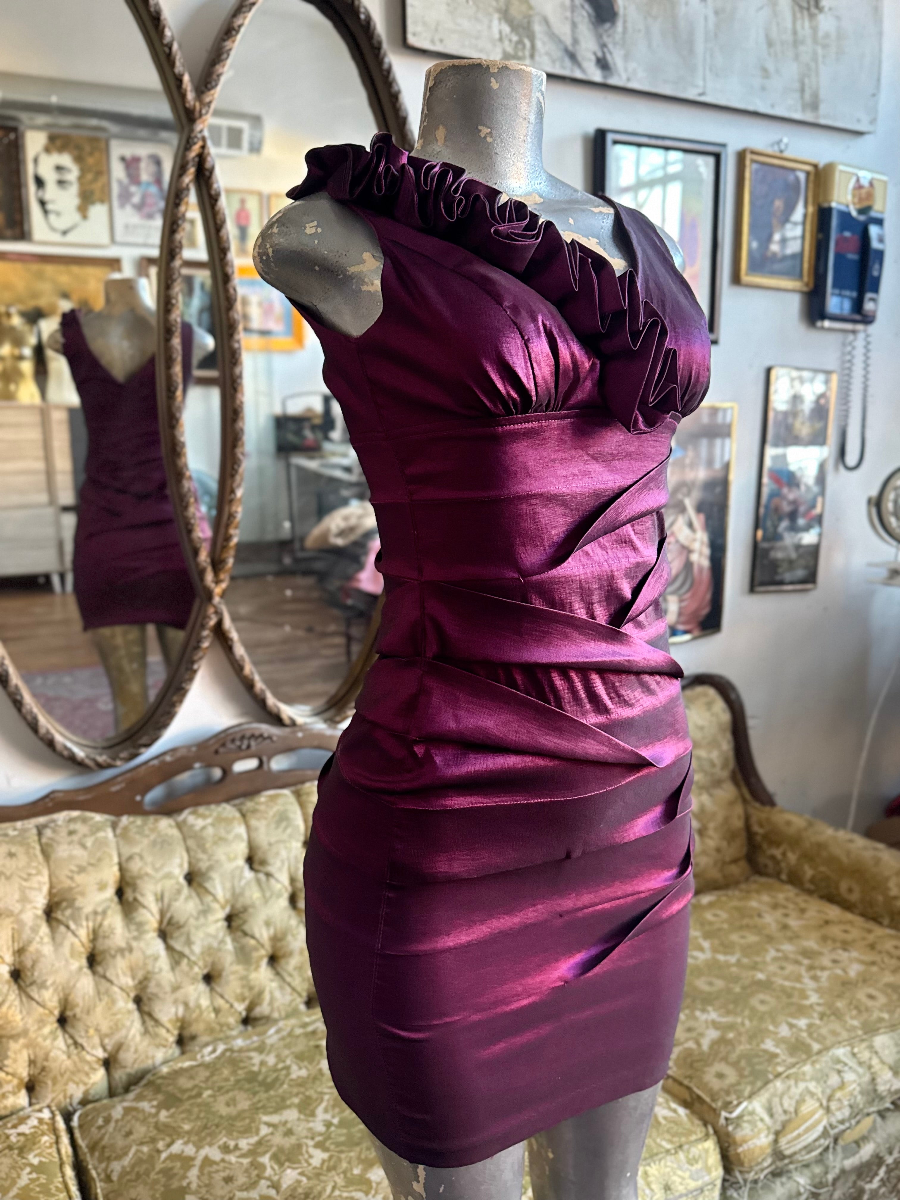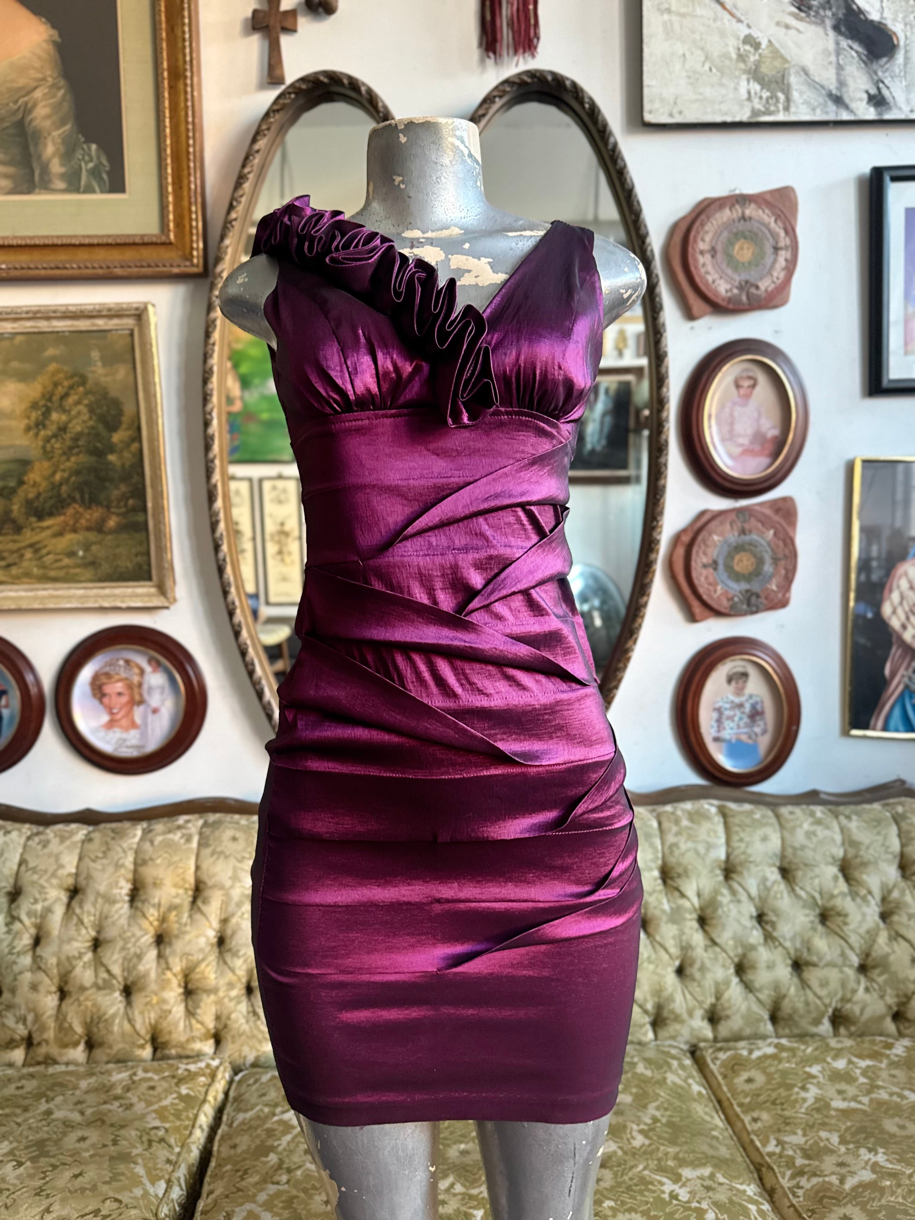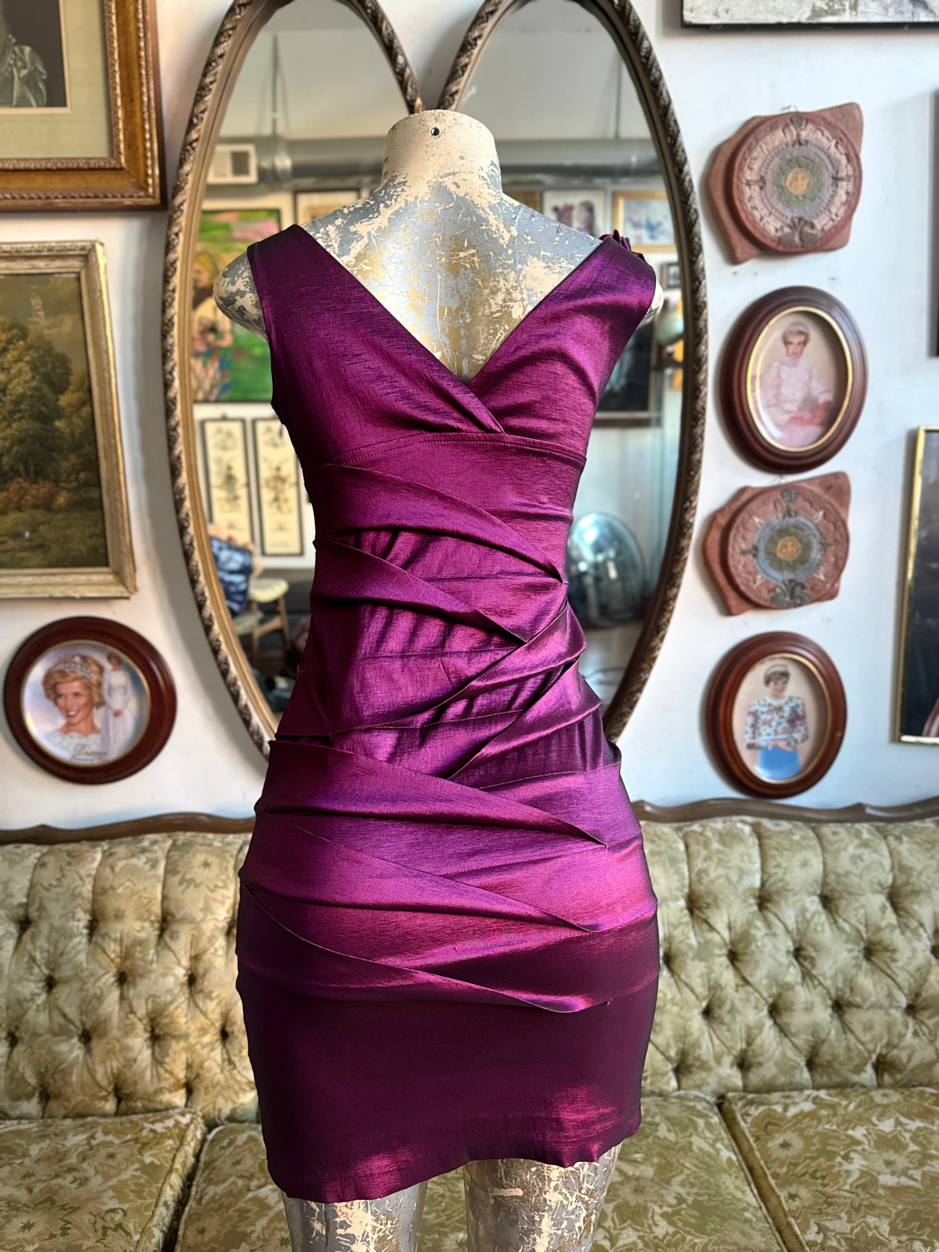2000s City Triangles Magenta Metallic Bandage Bodycon Dress Size 5