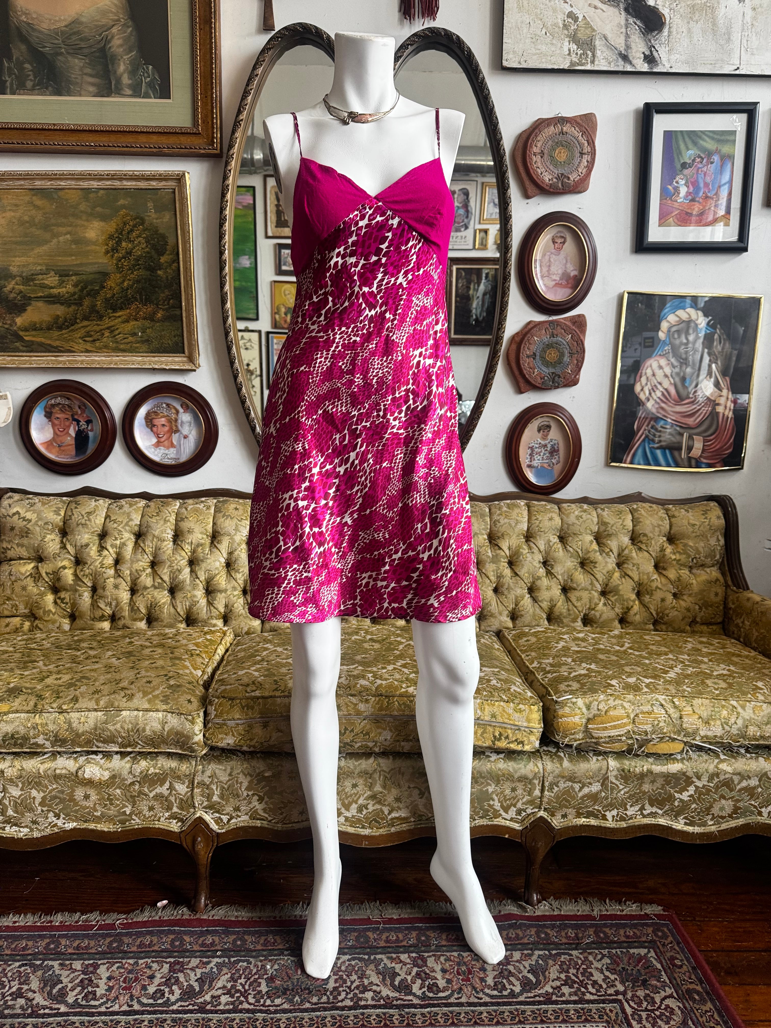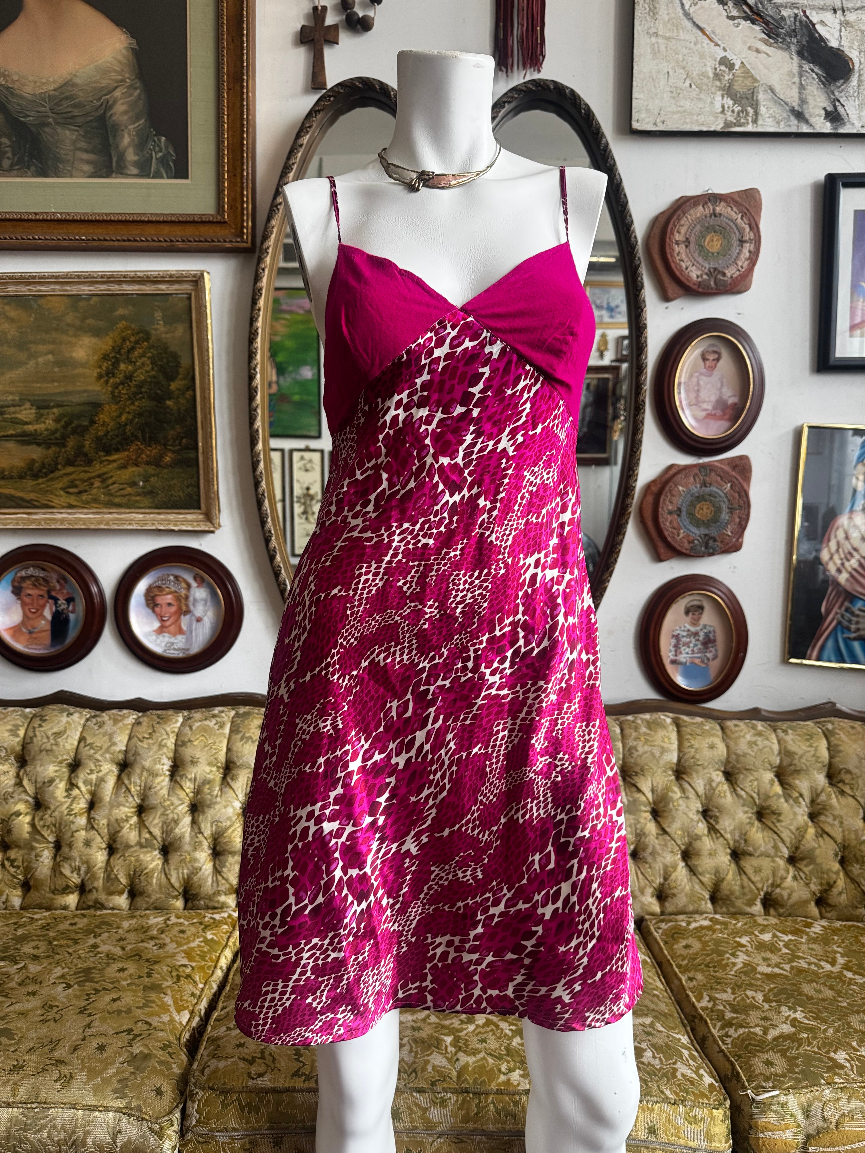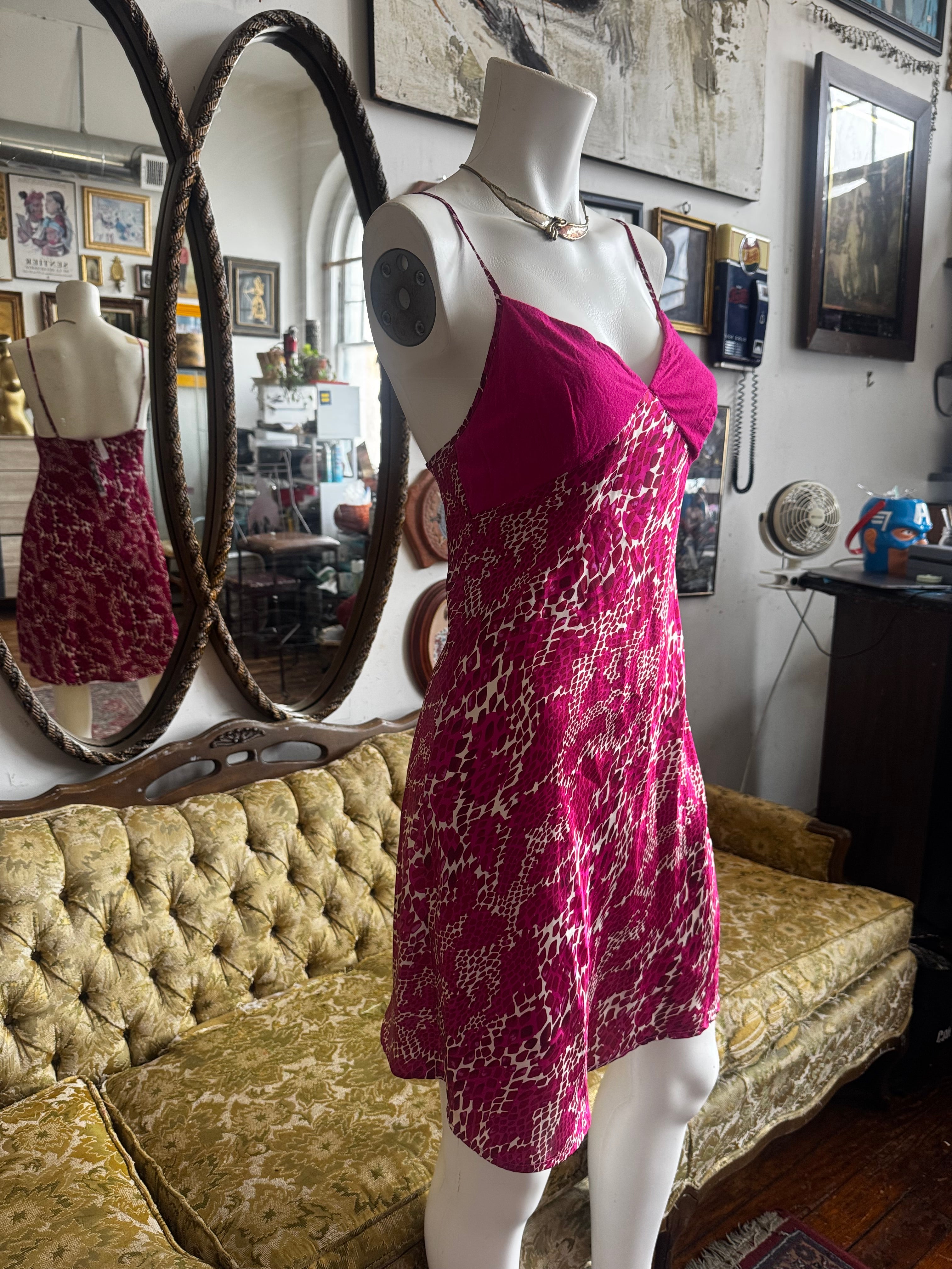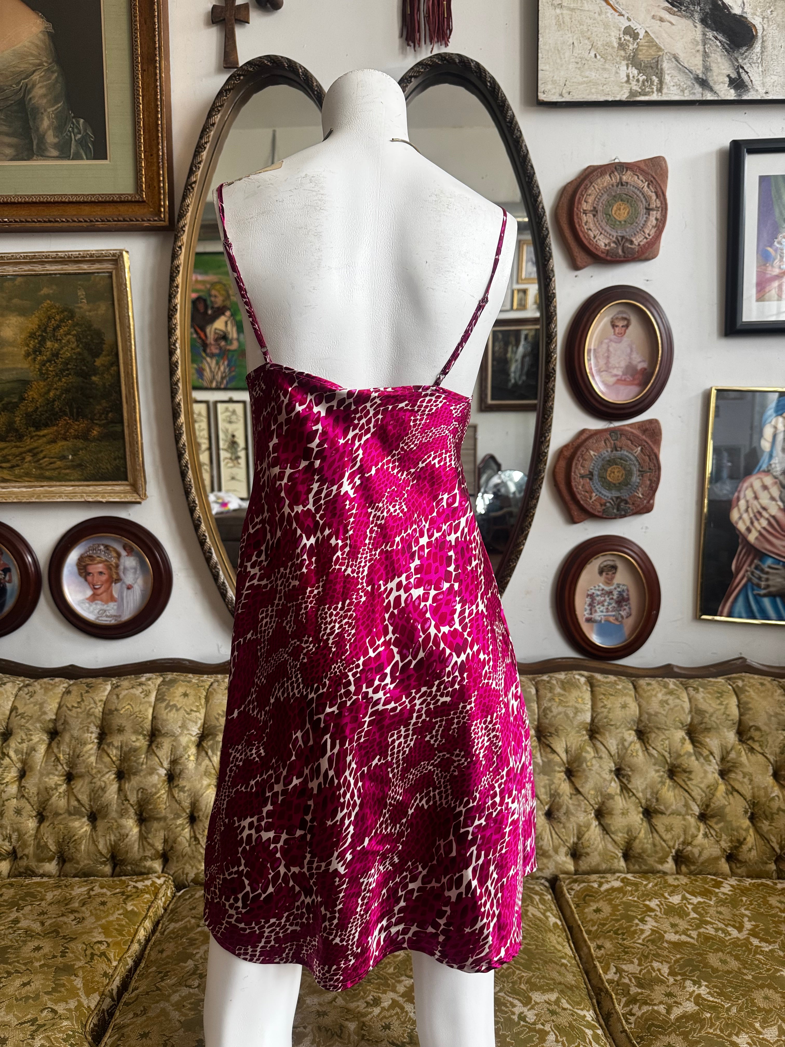 Hot Pink Satin Printed Mini Night Dress Size Small