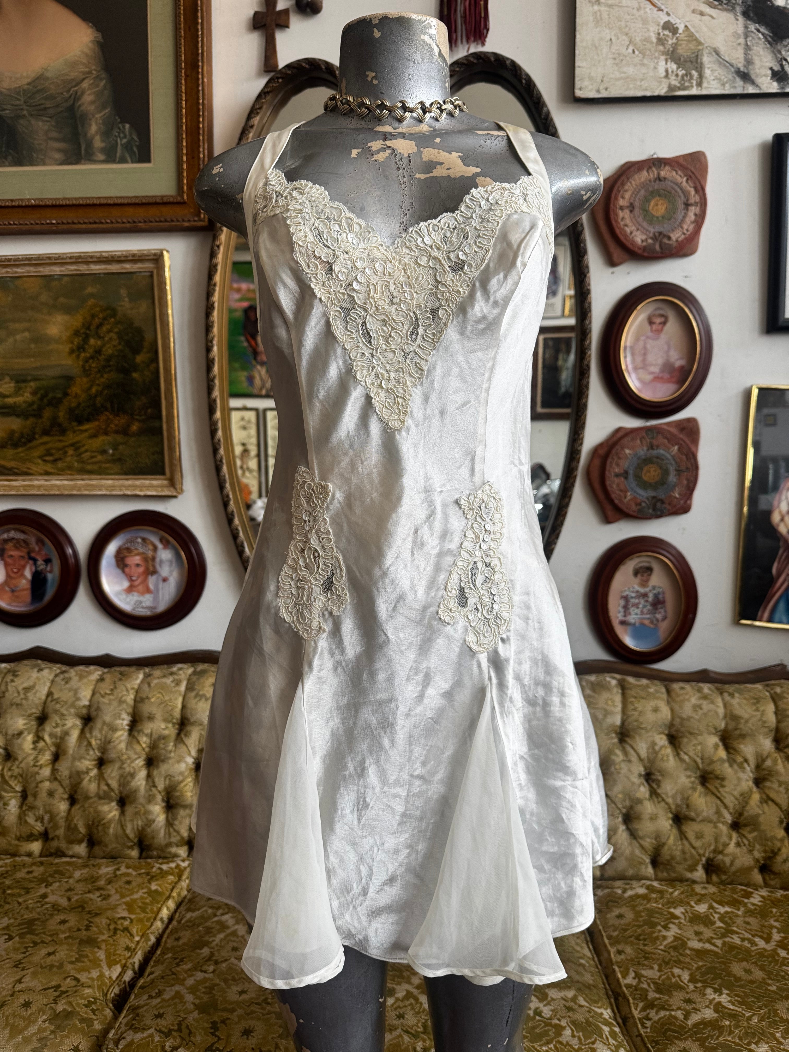 Y2K Cream Lace and Sequin Bridal Slipdress Size Small by Victoria Secrets