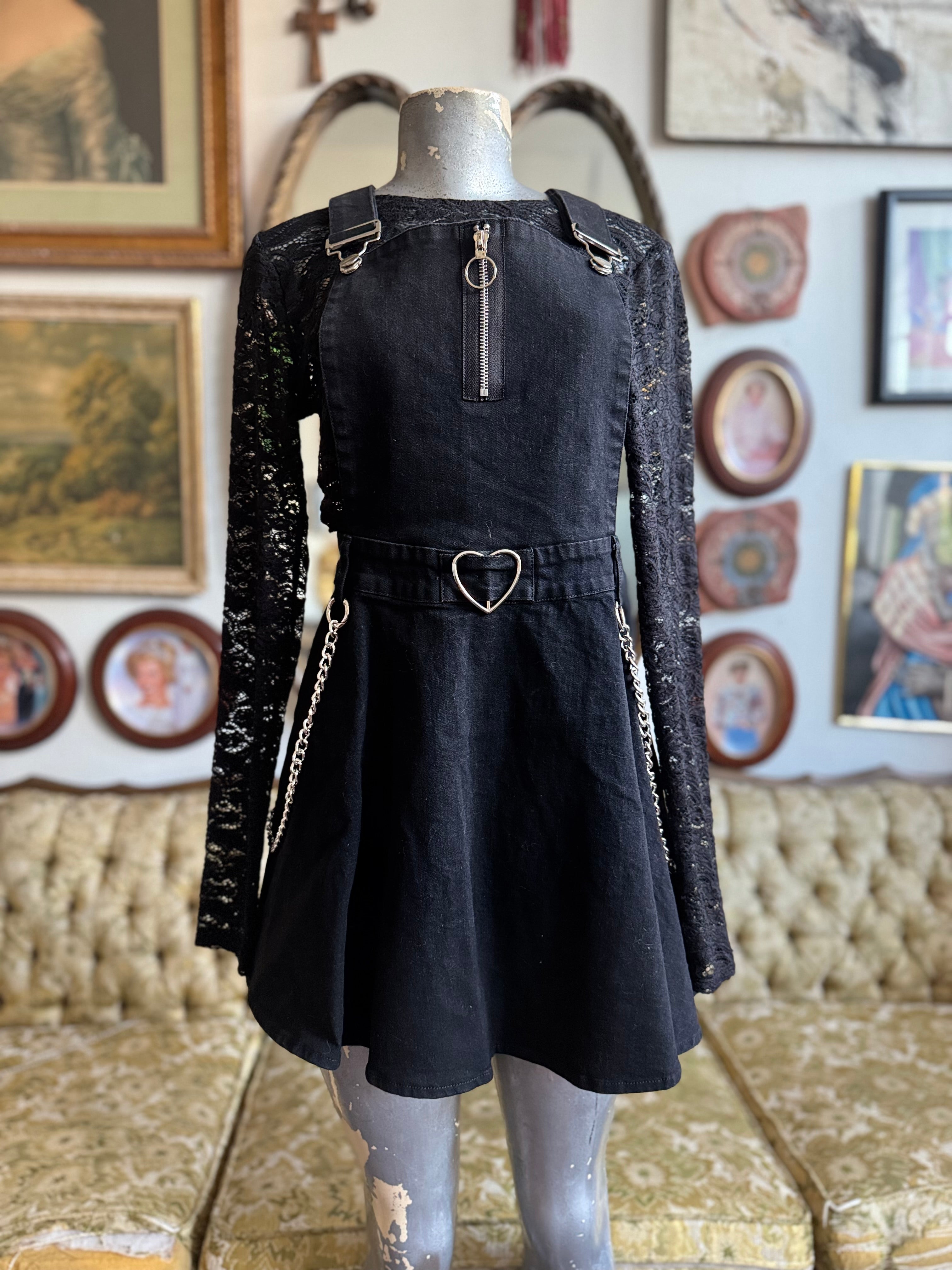NWT Jawbreaker Denim Skirt Overalls With Heart Buckle Size S