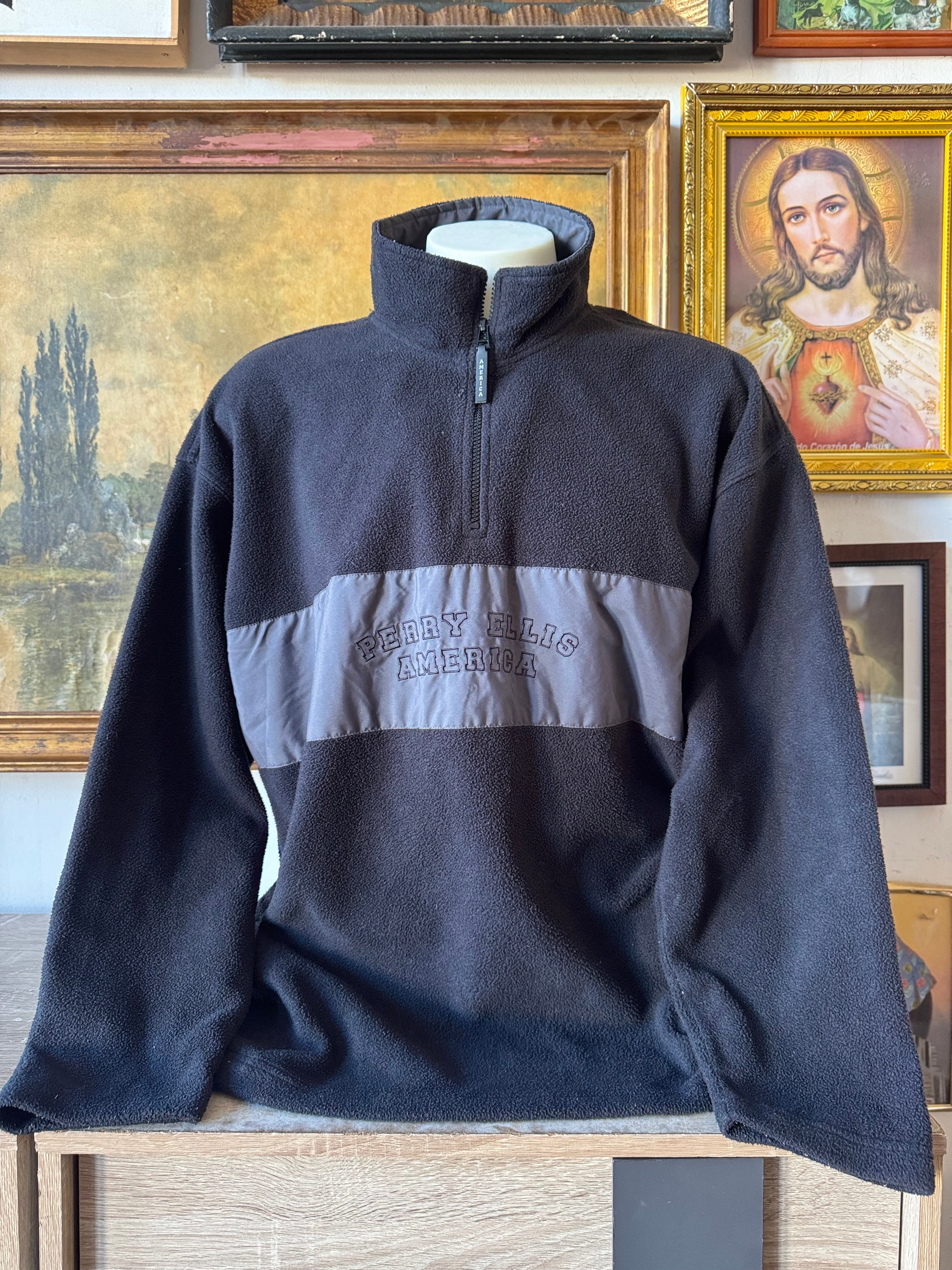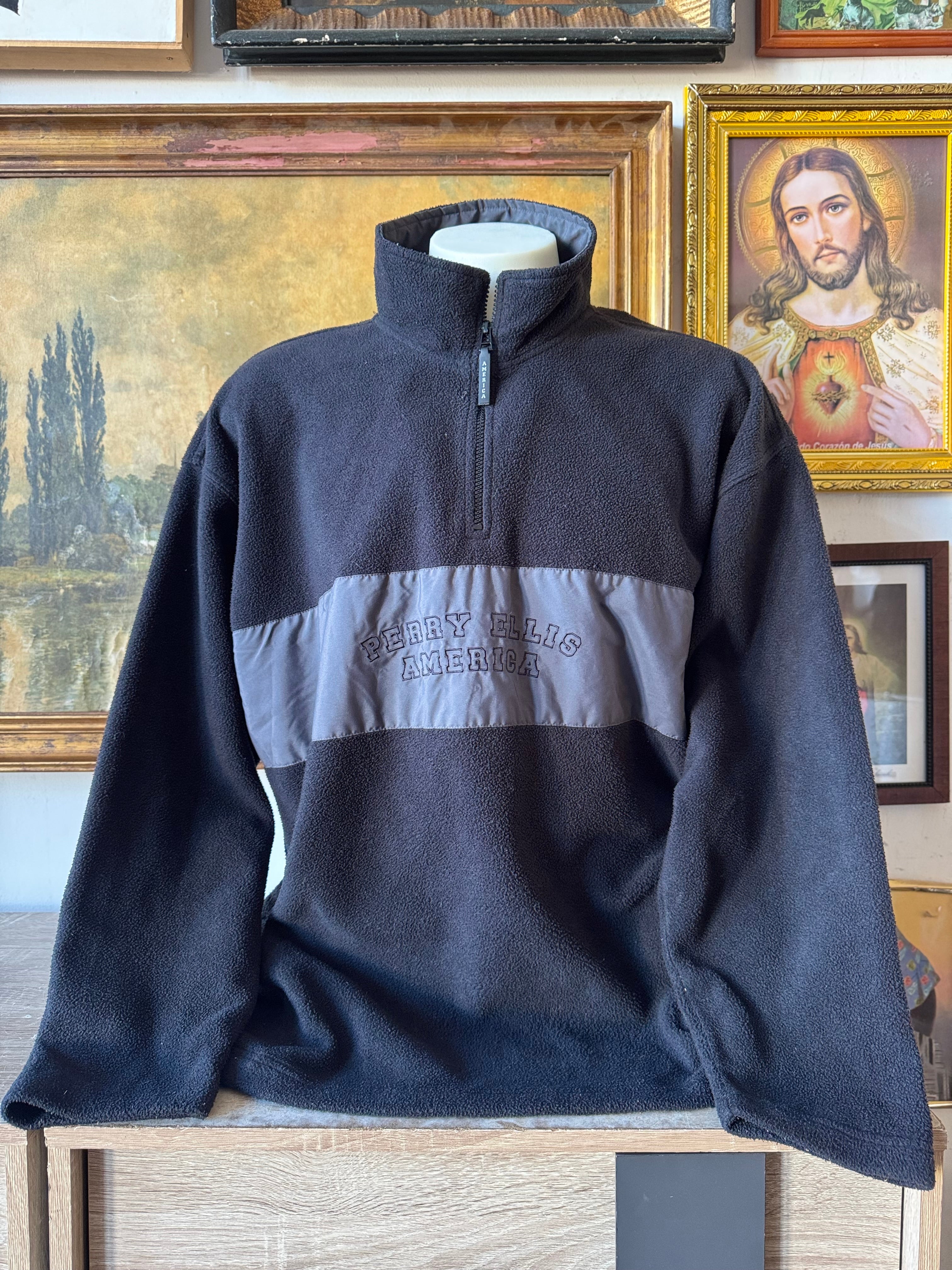 90s Vintage Perry Ellis Black and Grey Corduroy Fleece w Zip Mens XXL