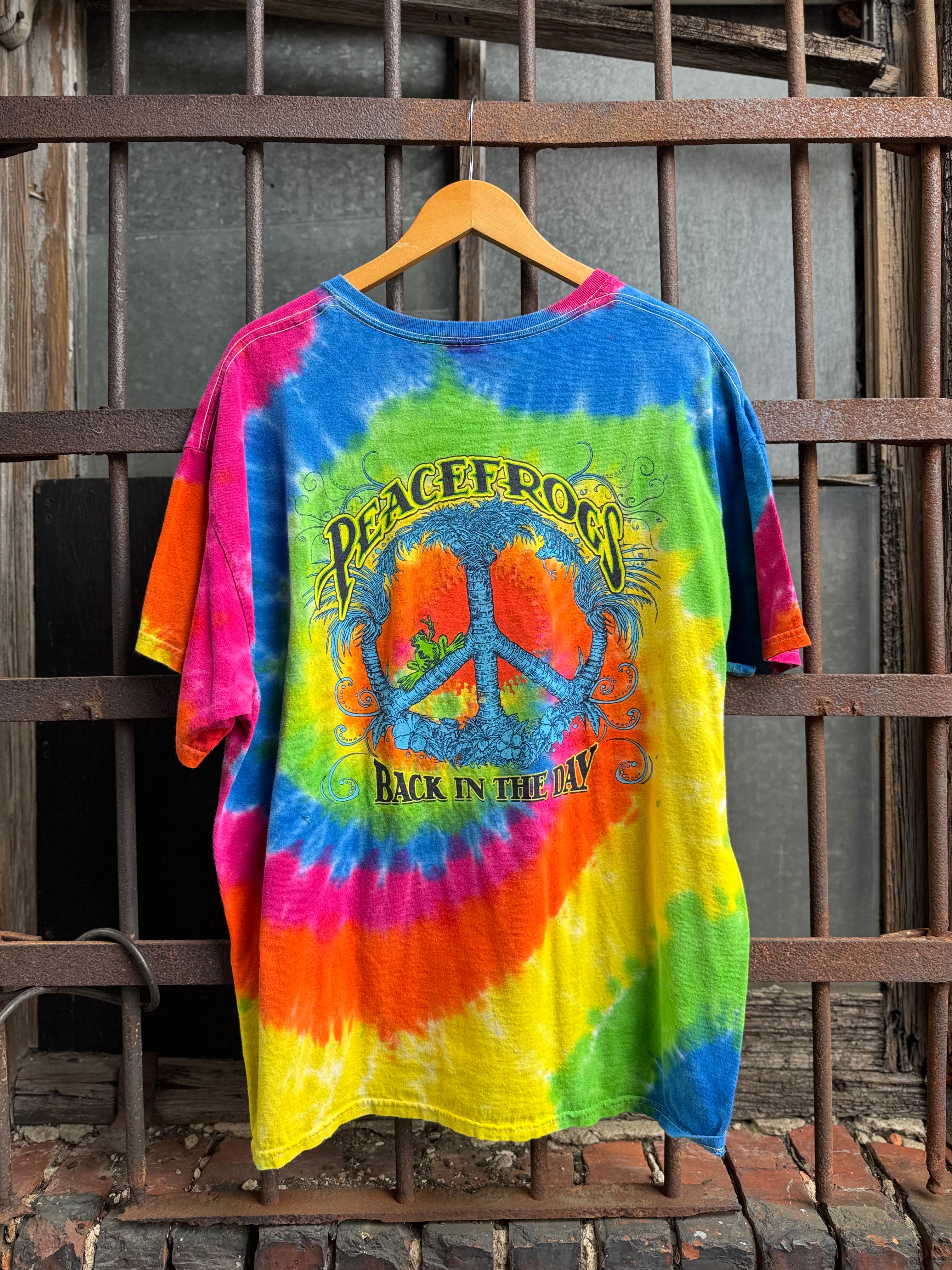 90s Vintage Tie Dye Peace Frog Tee Size XL