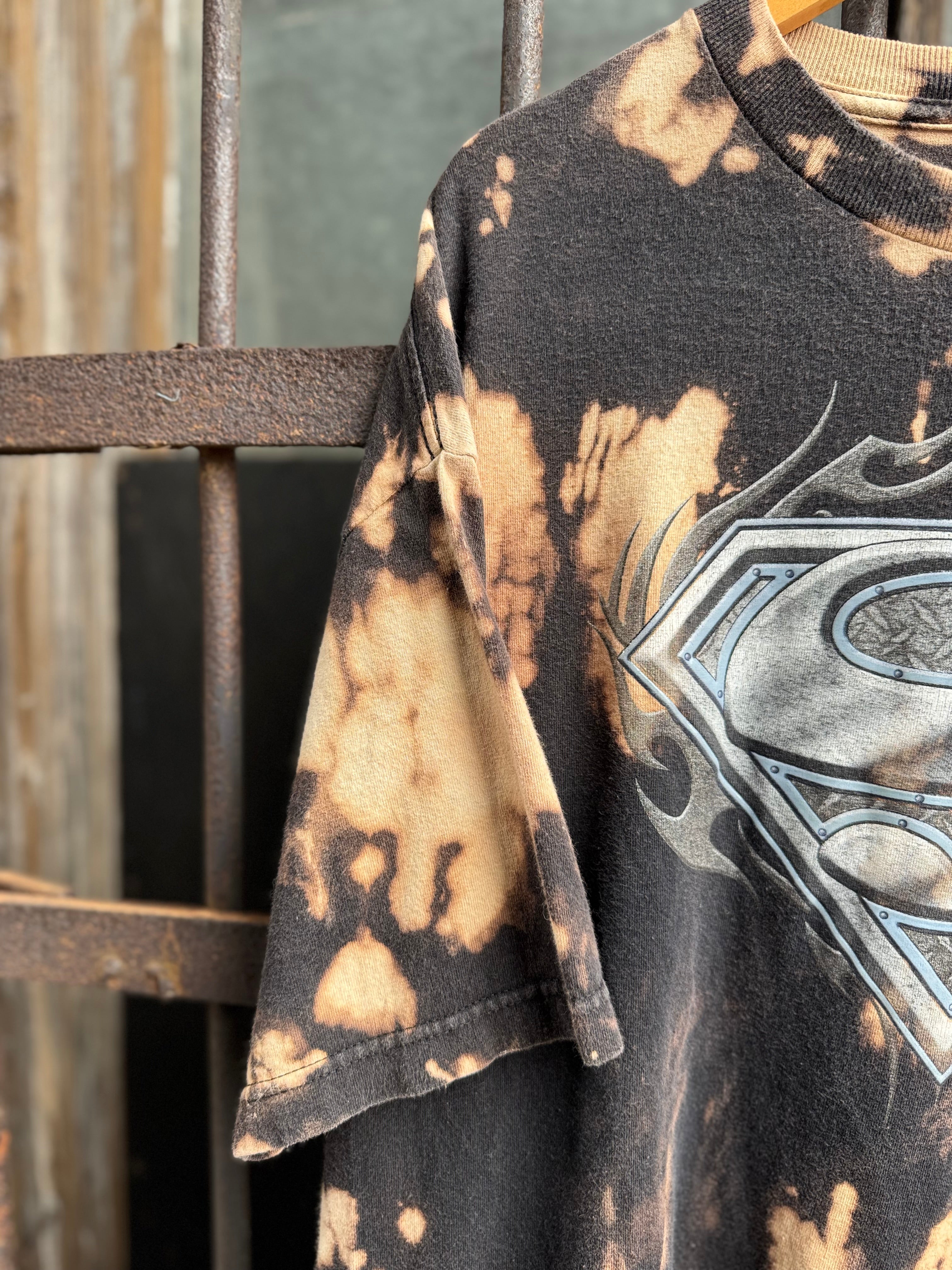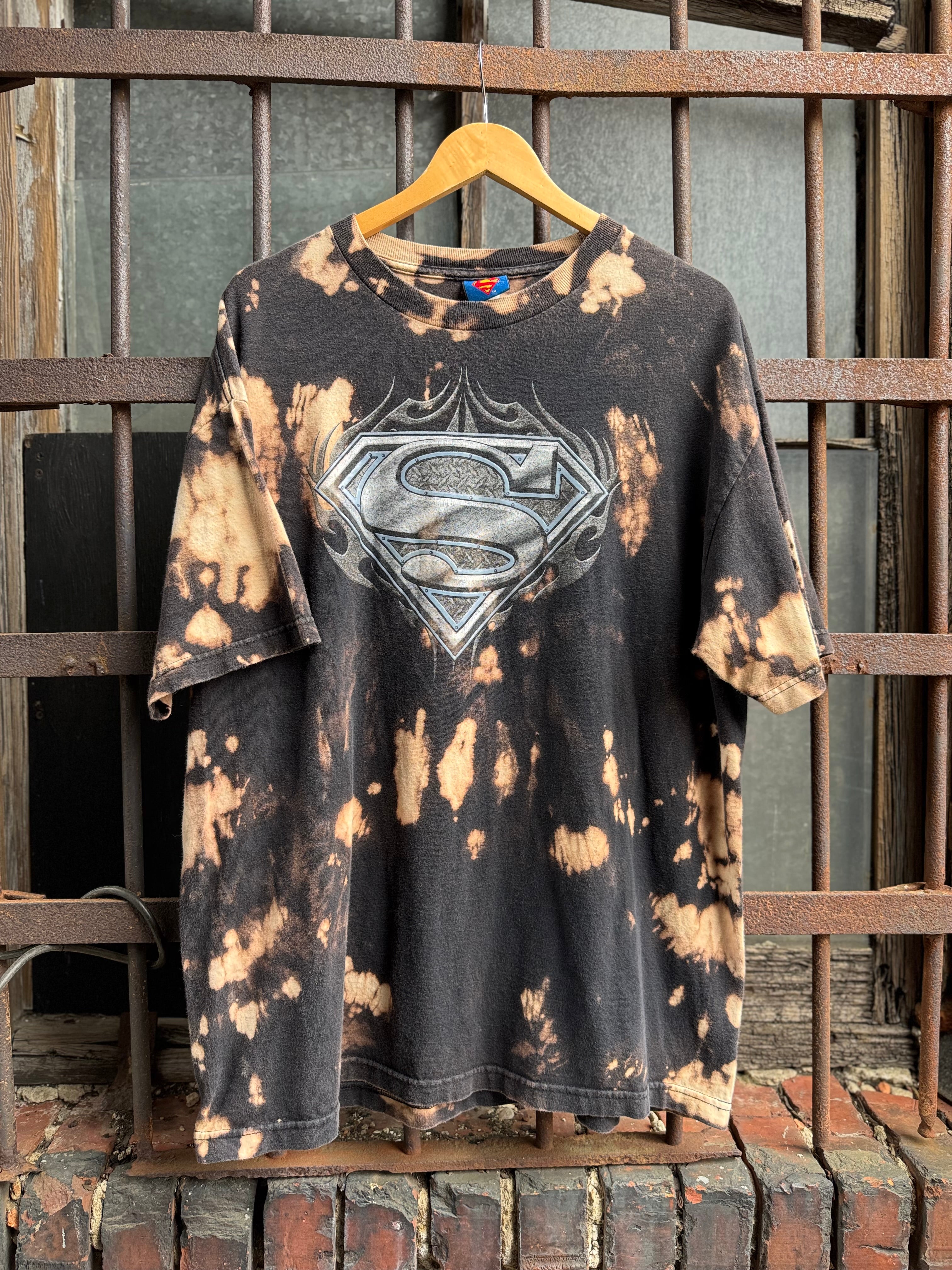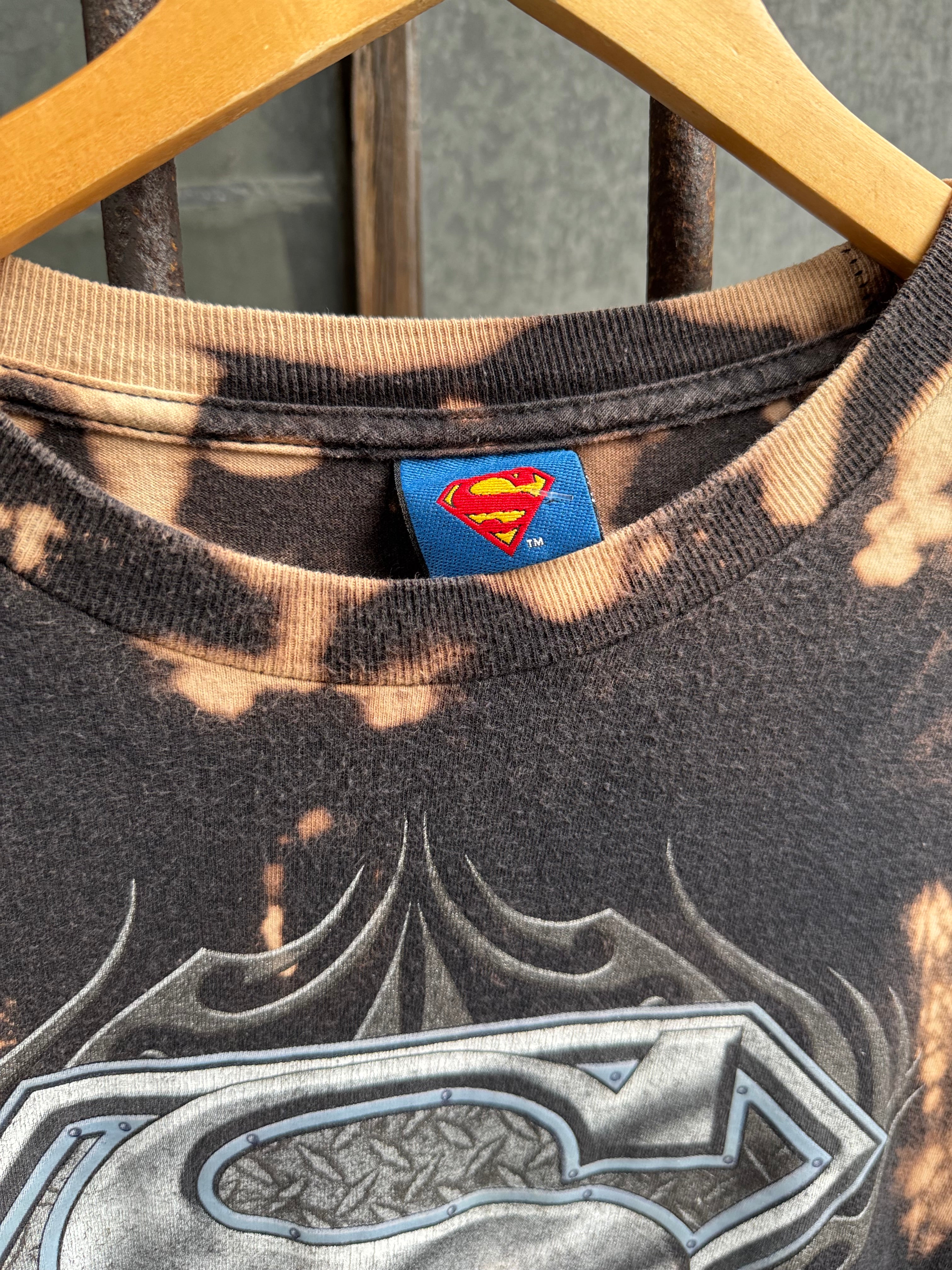 Y2k Hand Bleached Superman Metallic Logo Tee Size XL