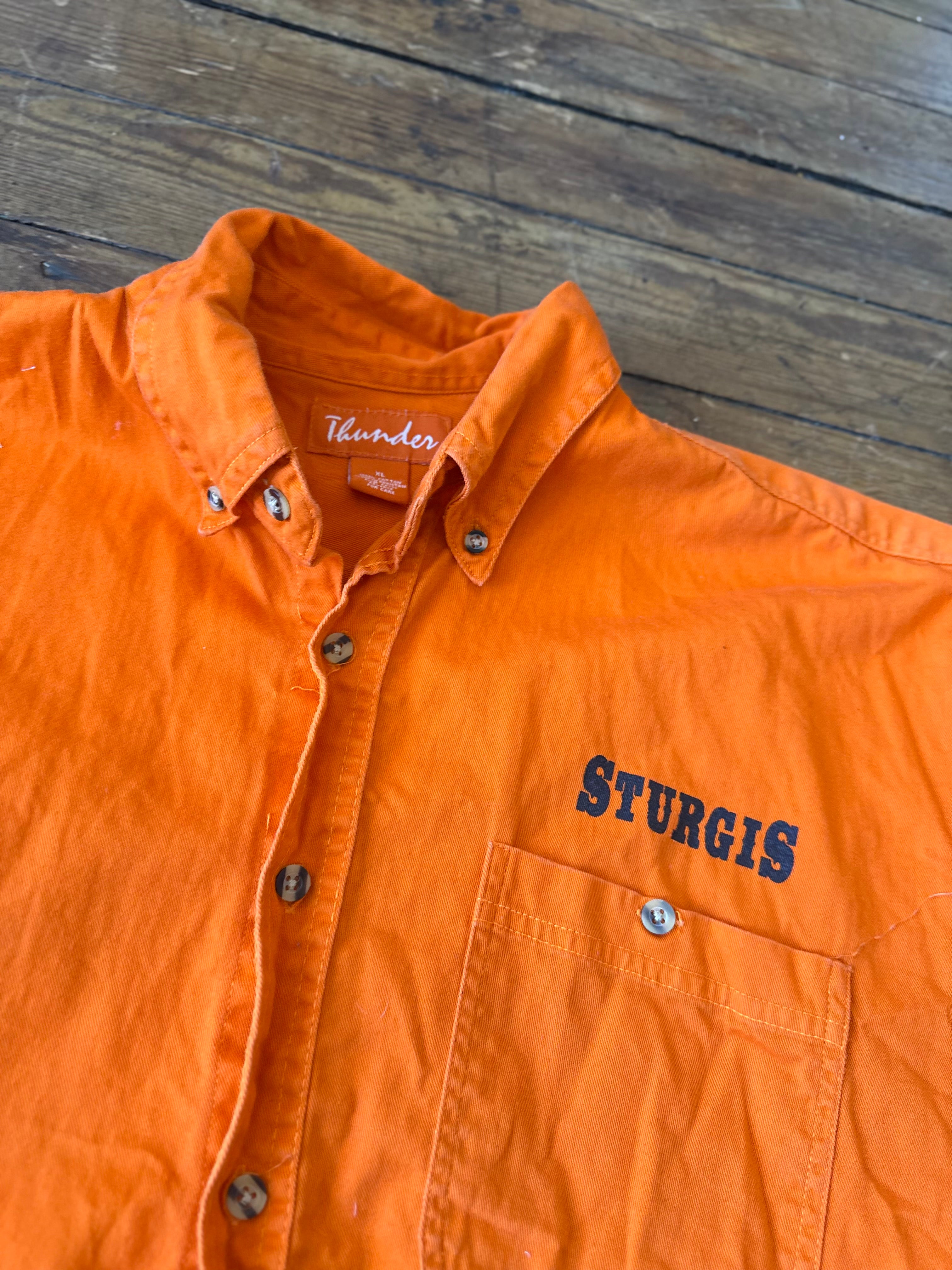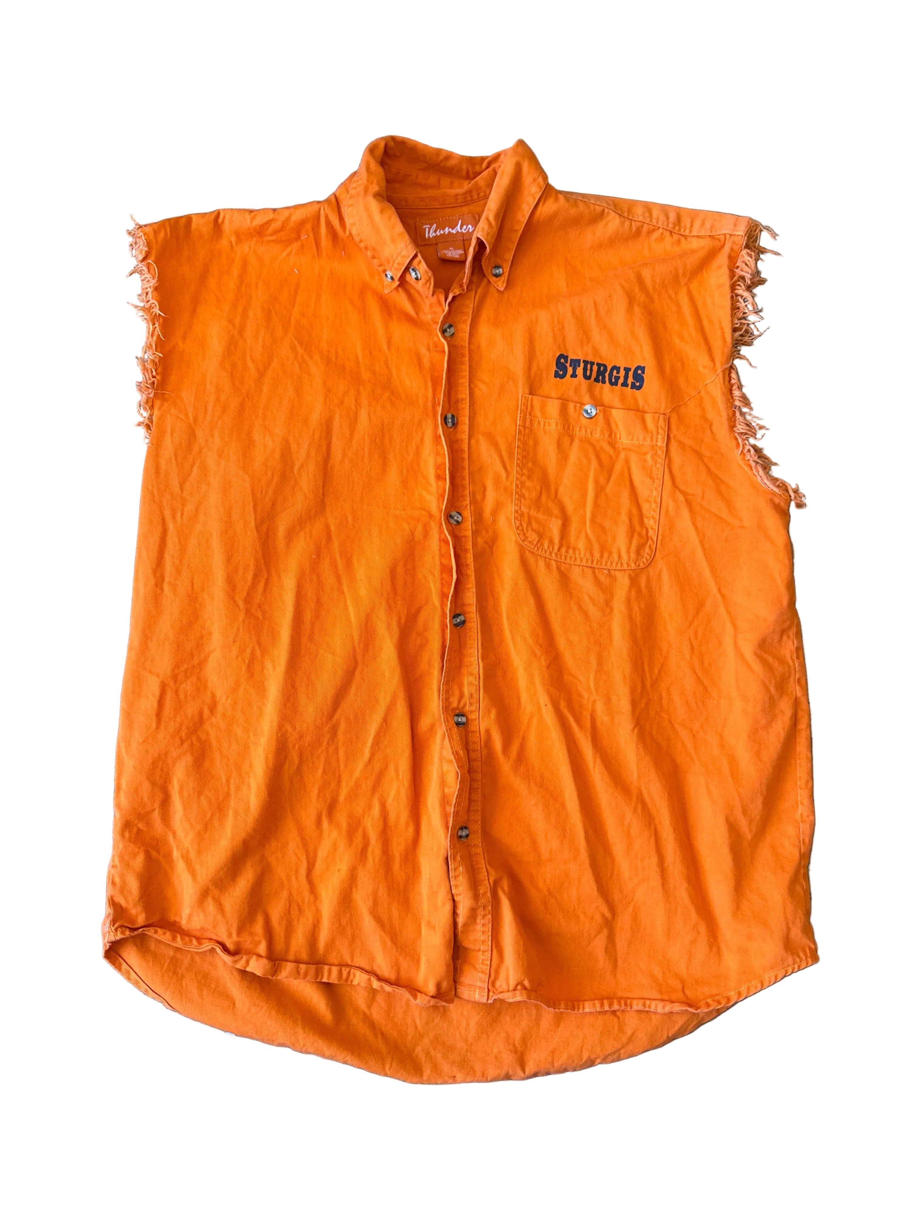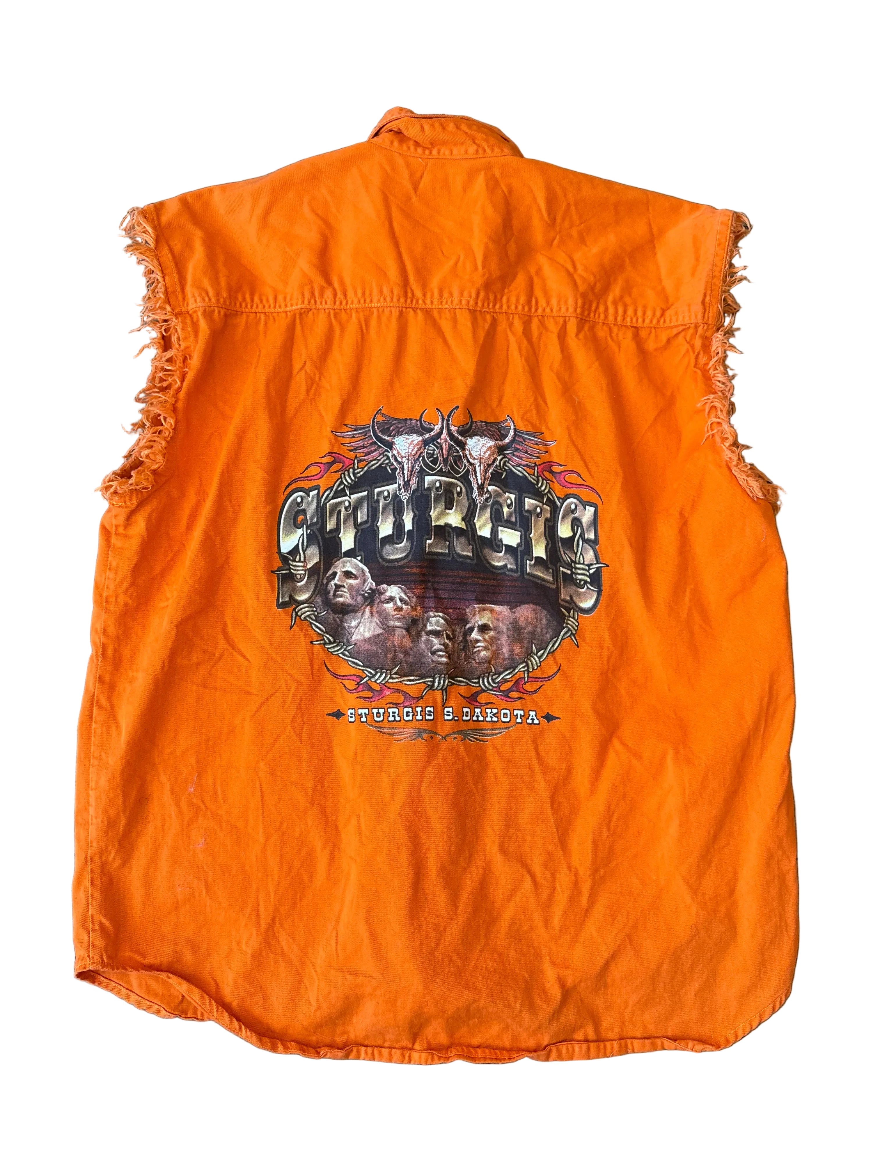 Sturgis Biker South Dakota Orange Cut Off Mens Button Down XL