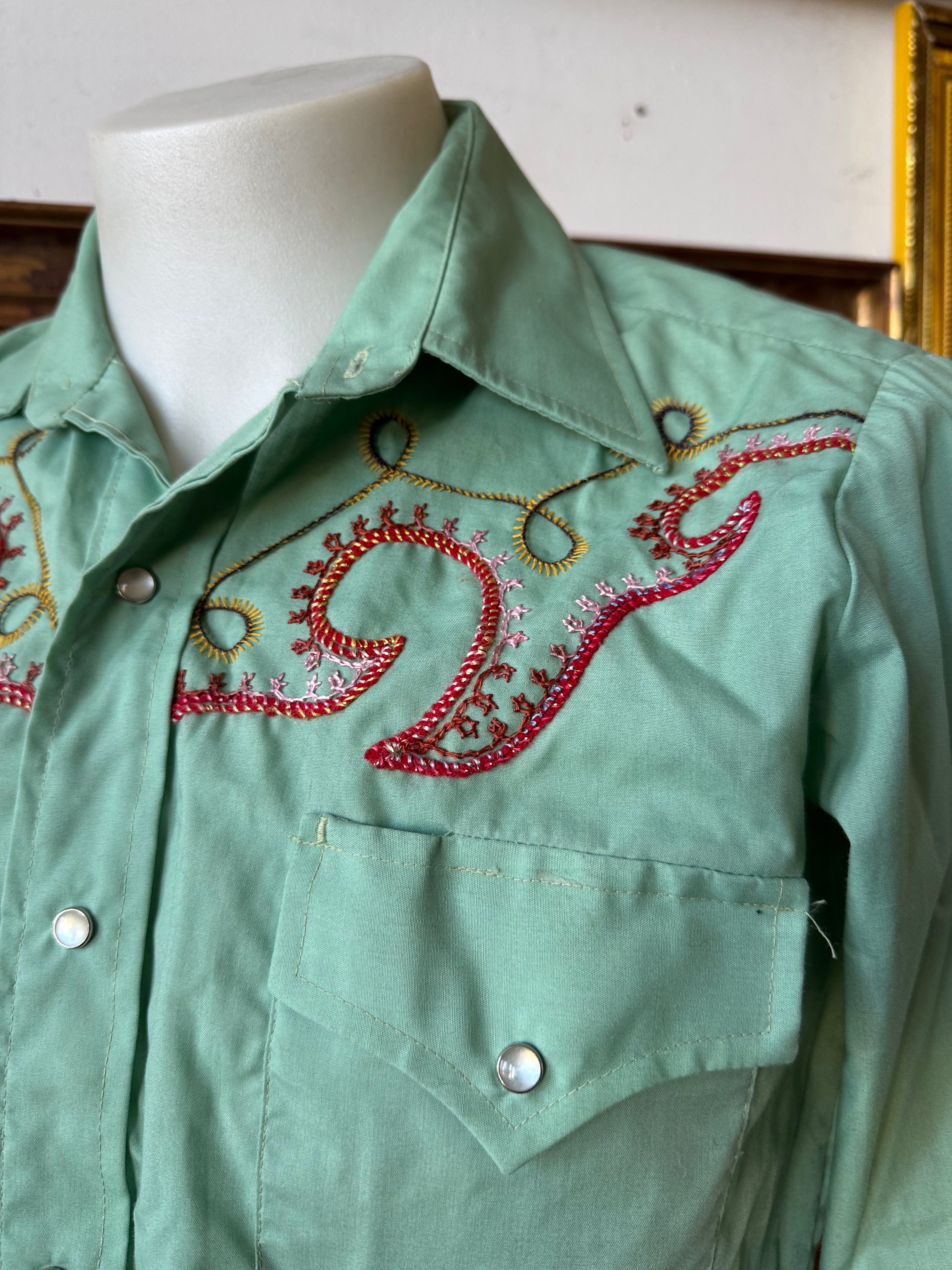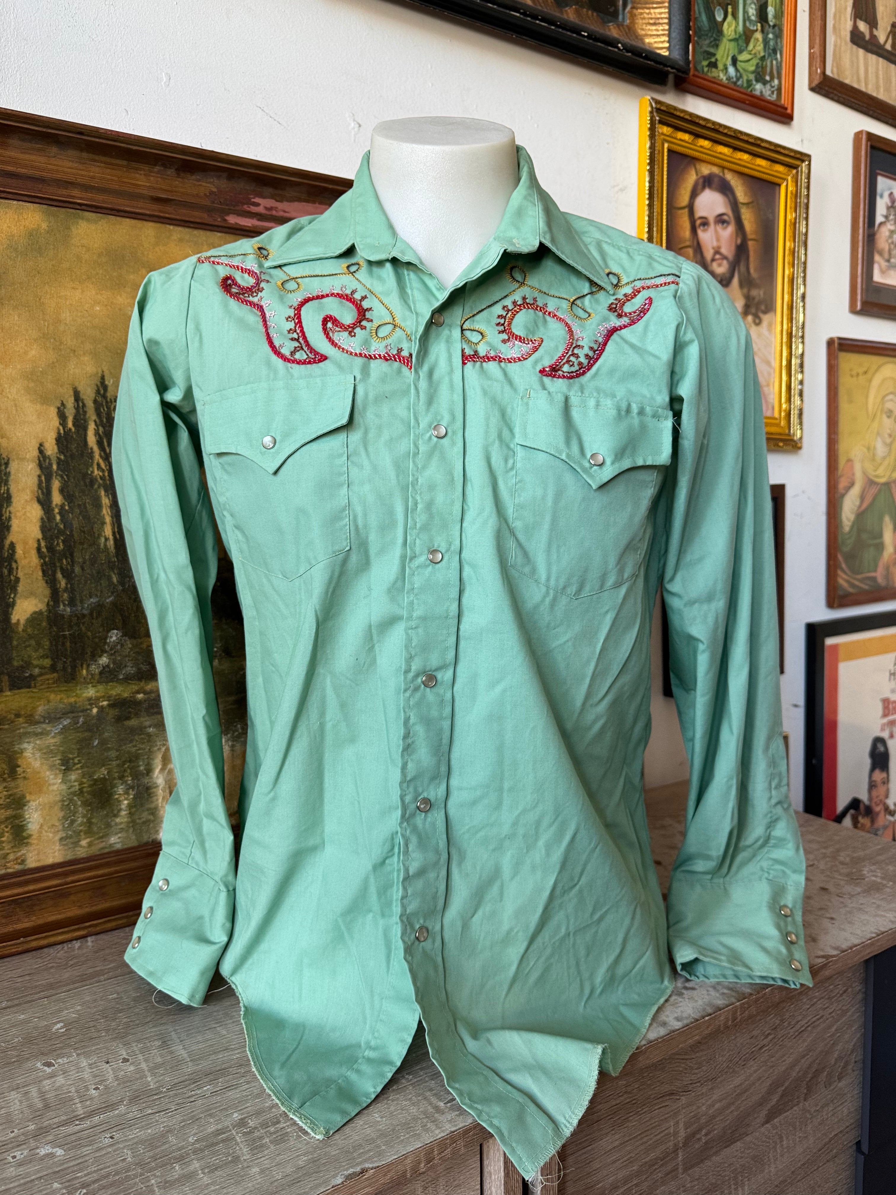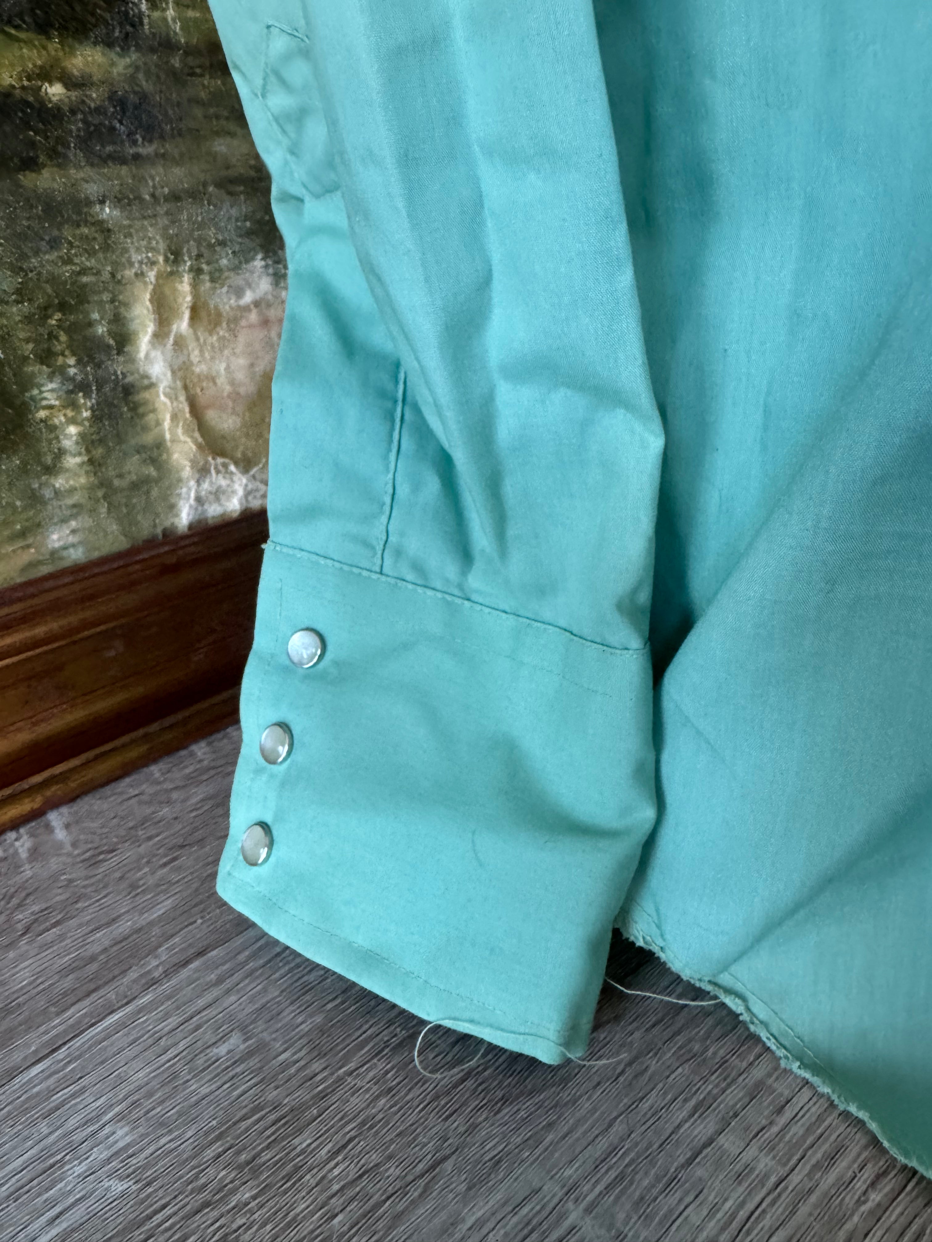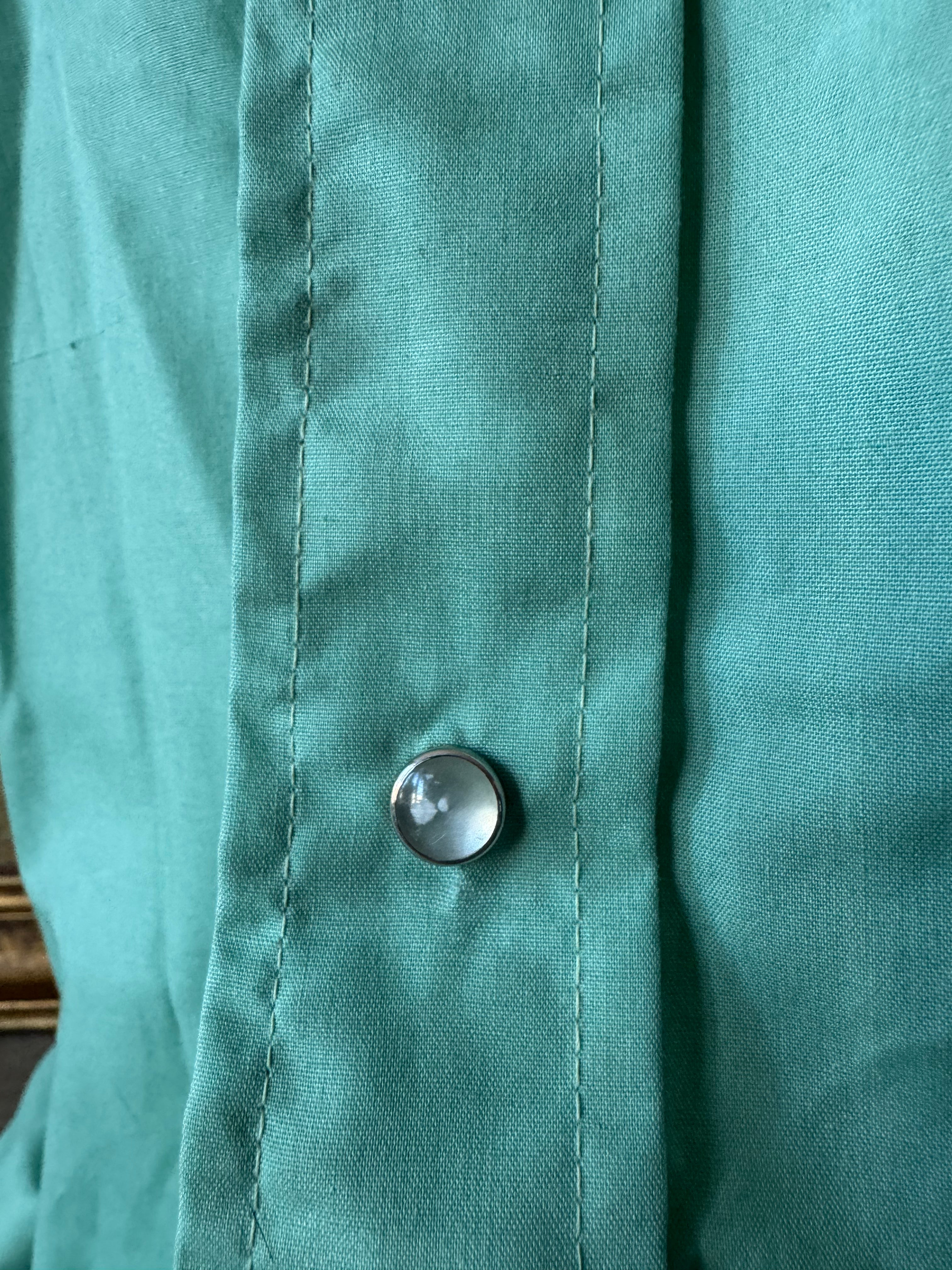 Description: Vintage 70's Mustang Seafoam Western Snap Shirt