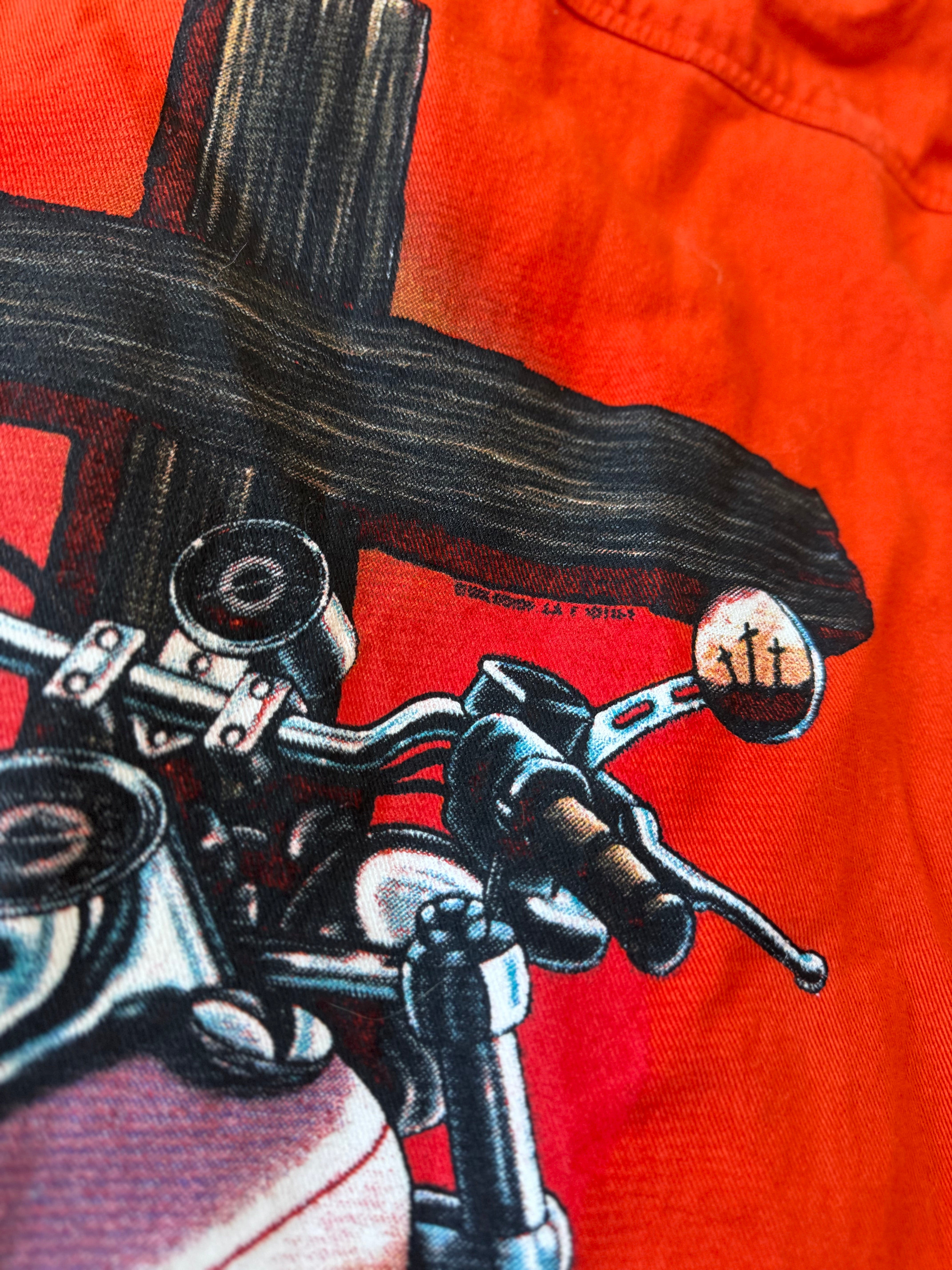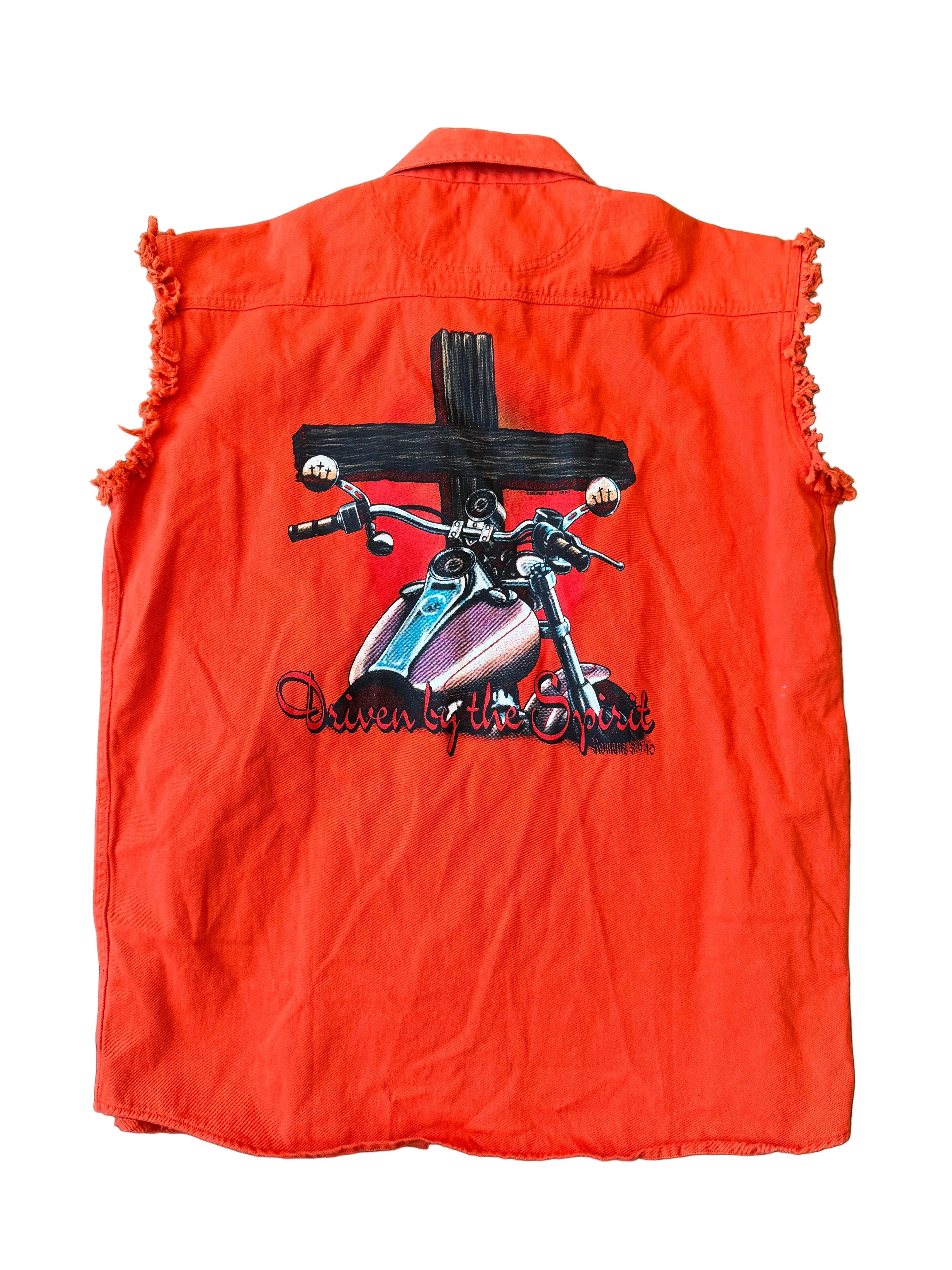 80s Vintage Orange Sleeveless Button Up Biker Top Mens Med "Driven by the Spirit"