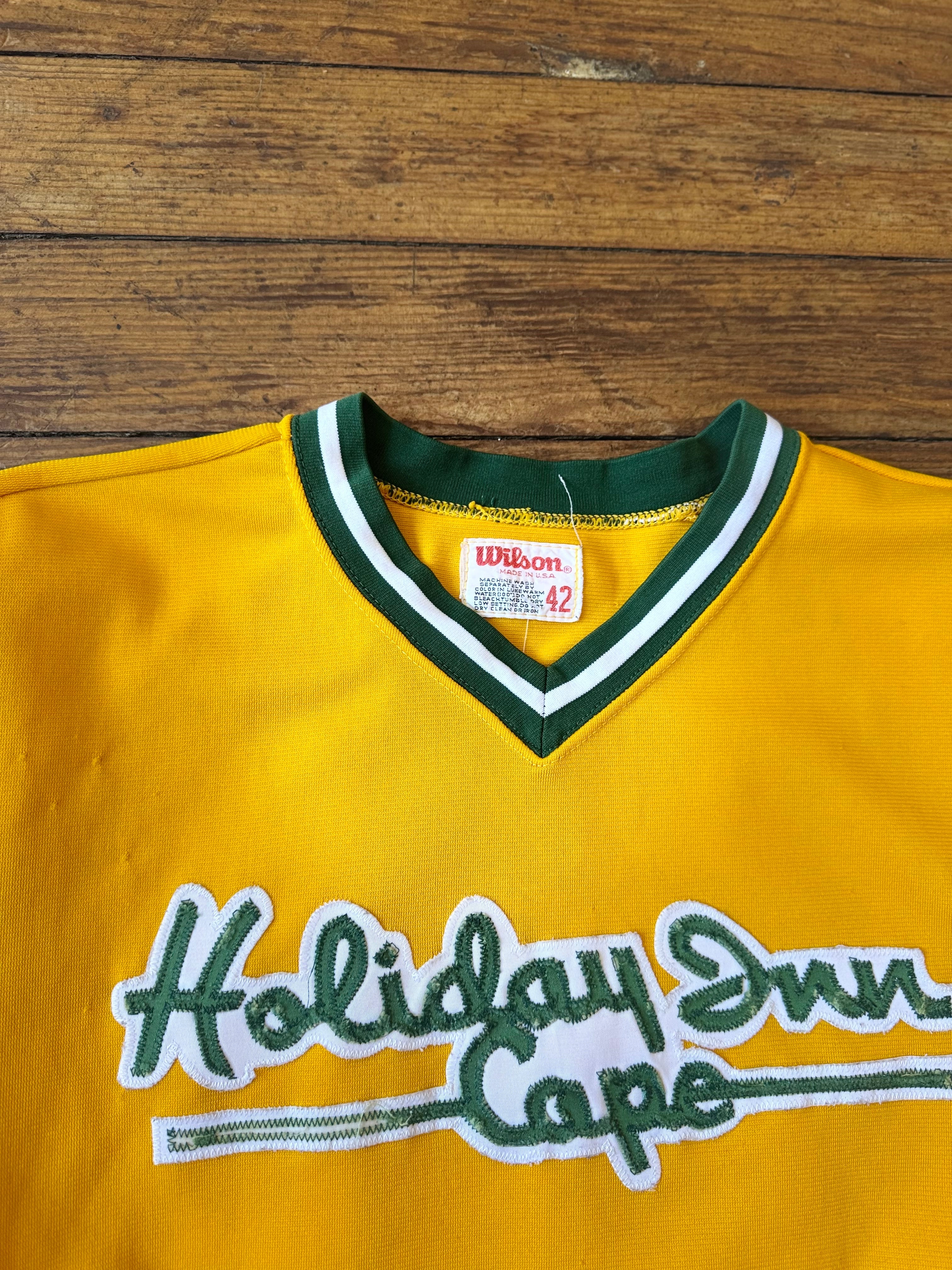 70s Vintage Wilsons Athletic Yellow and Green Holiday Inn Cape Jersey Mens 42 ASIS