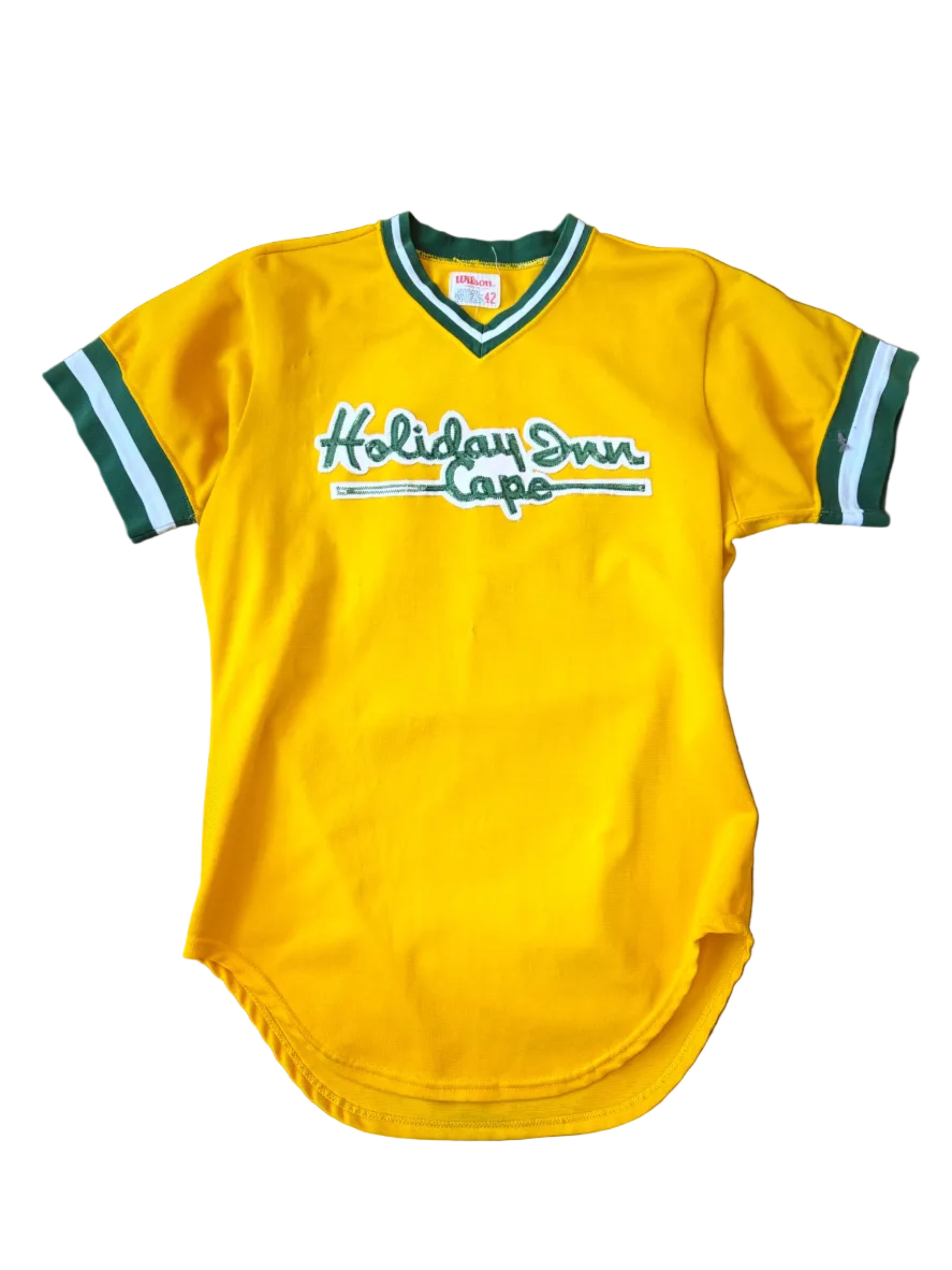 70s Vintage Wilsons Athletic Yellow and Green Holiday Inn Cape Jersey Mens 42