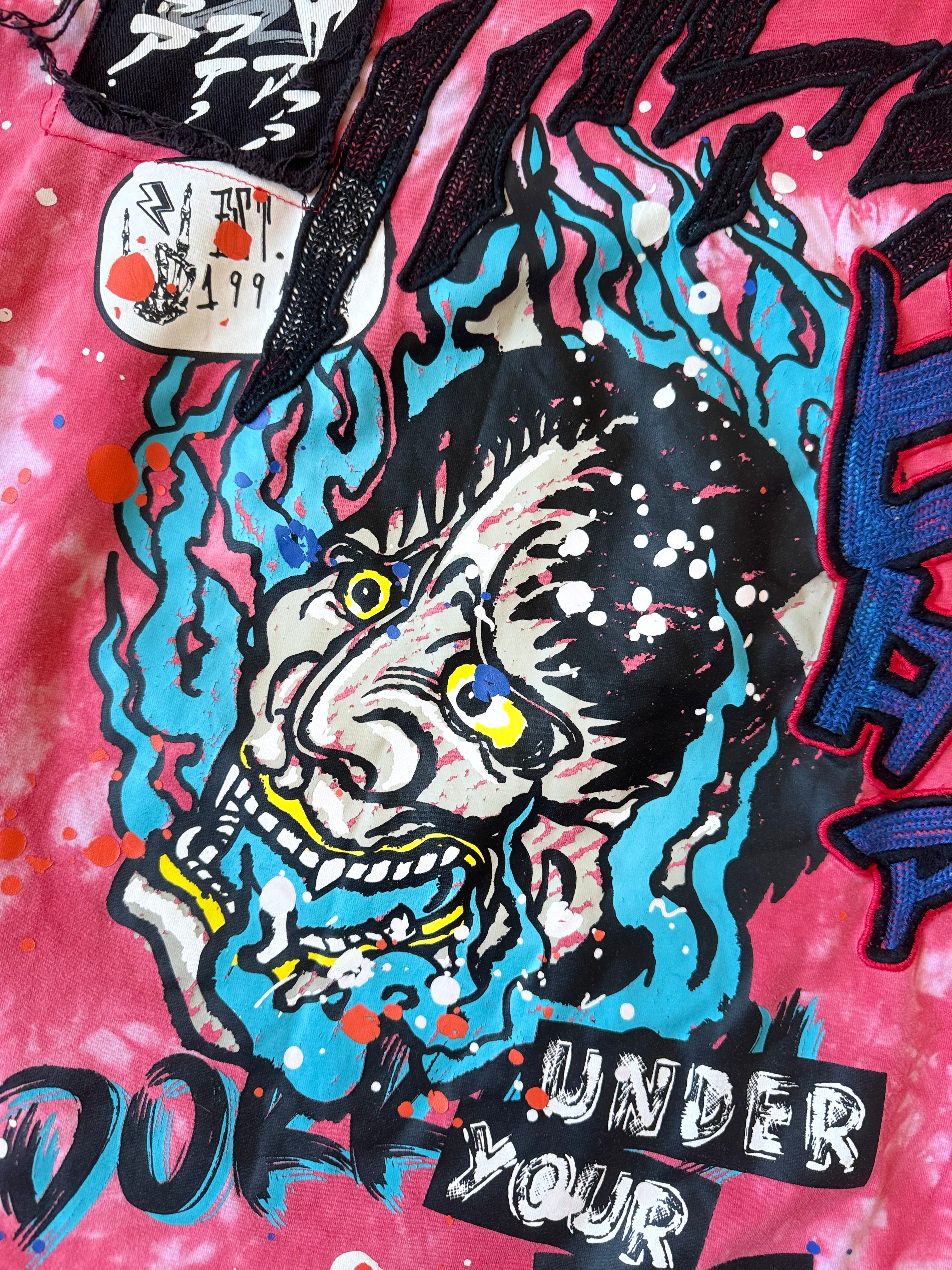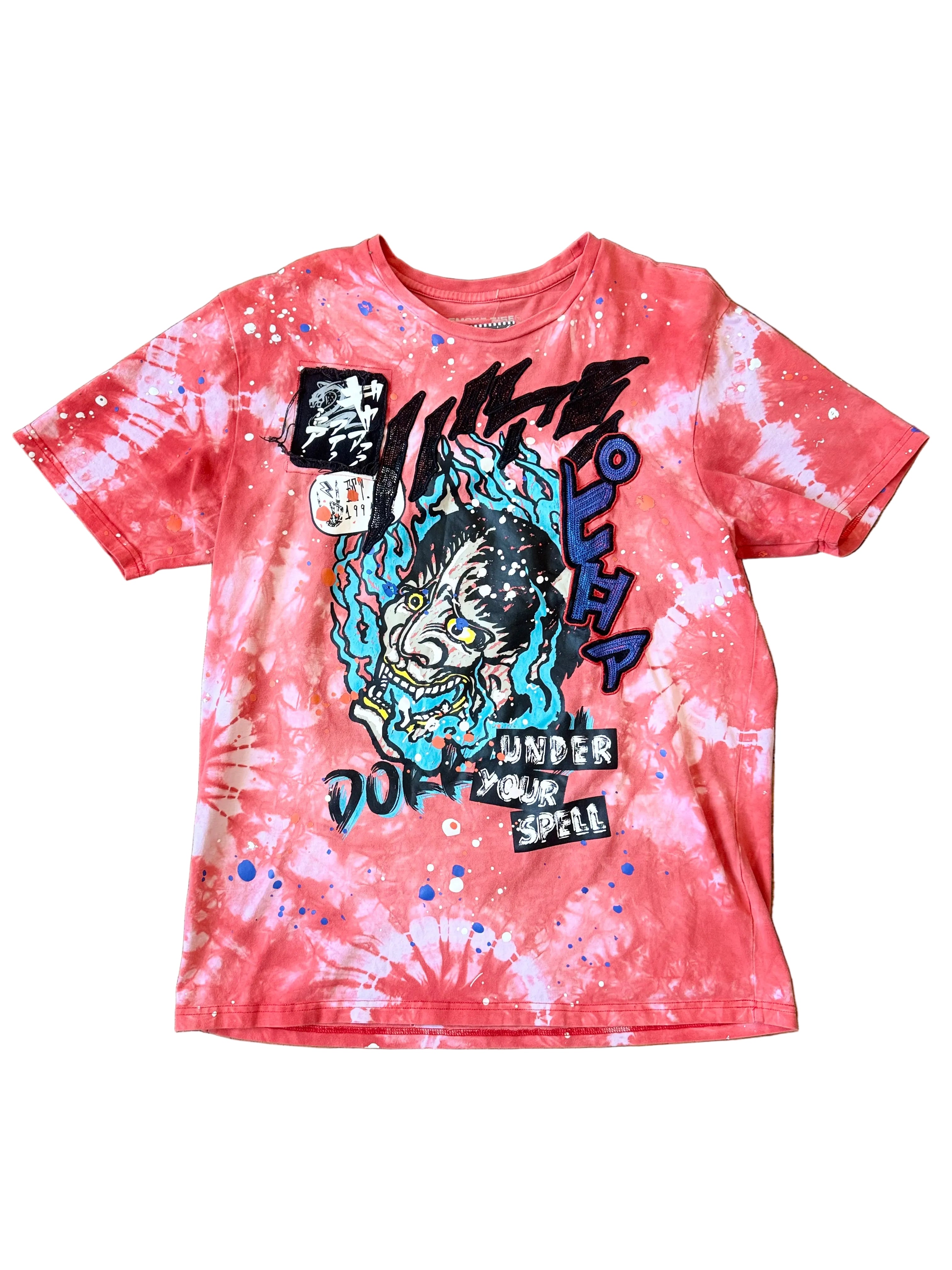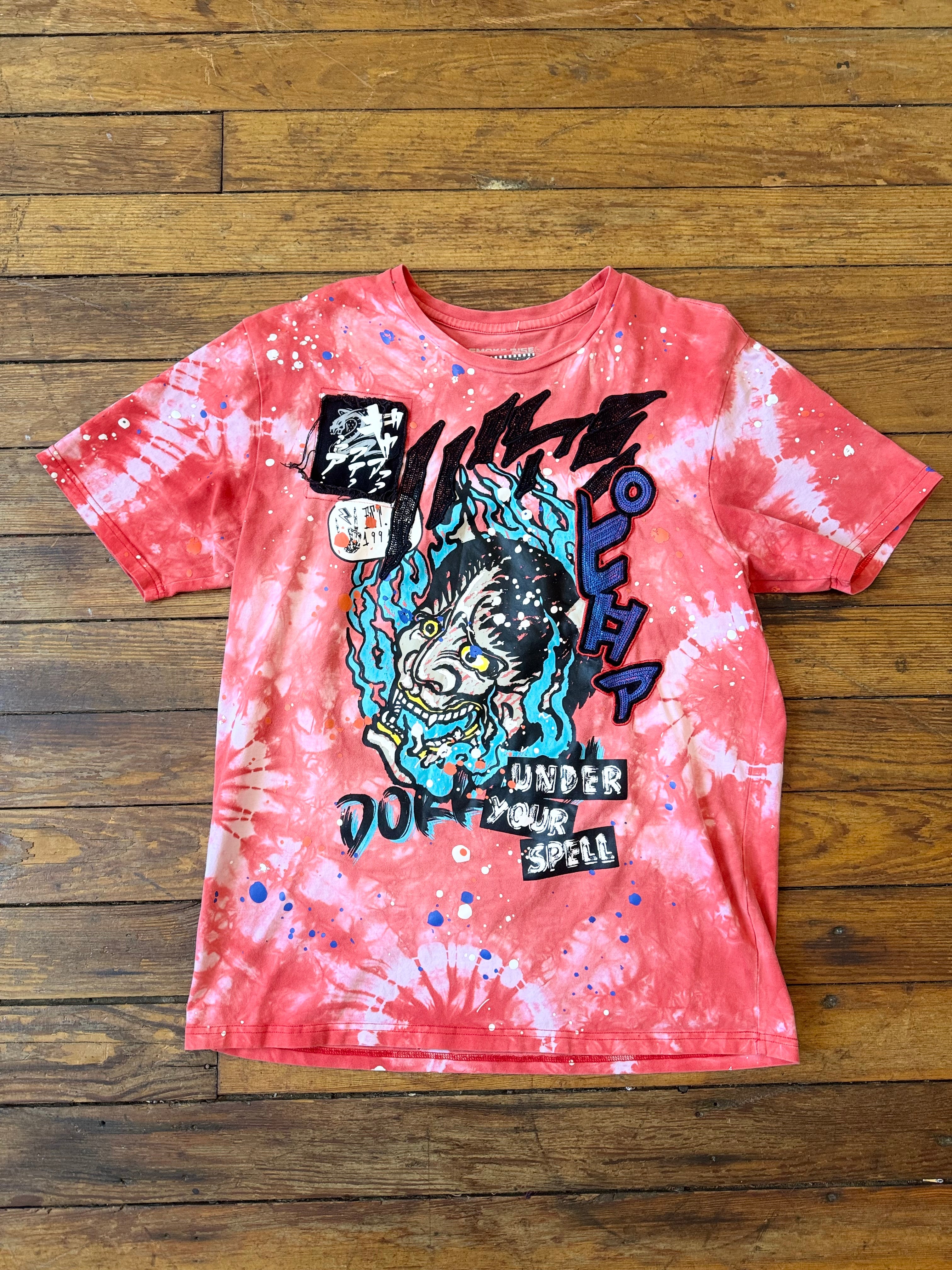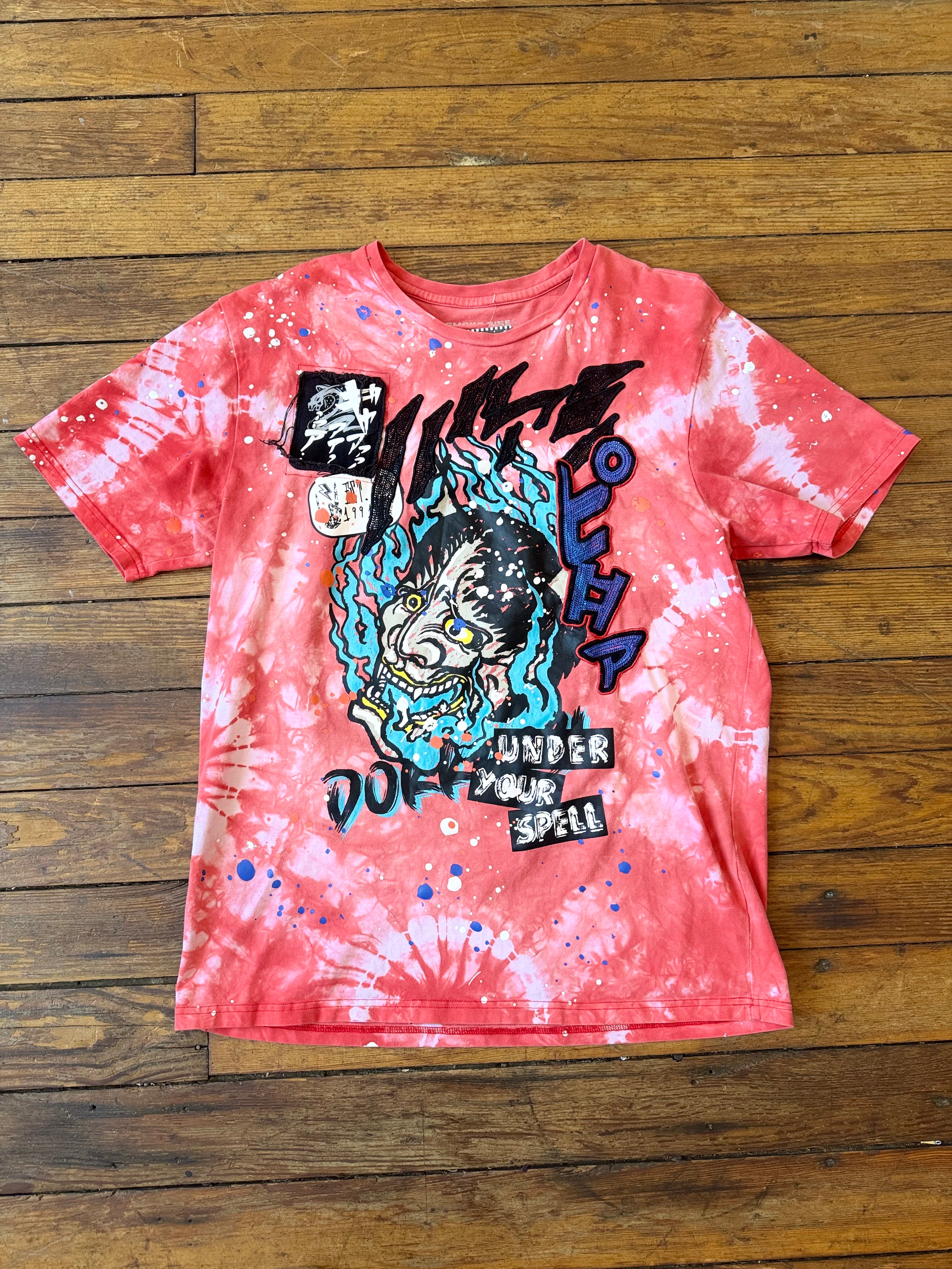 Tie Dye Red Graphic Mixed Fabric Embroidered Punk Tee Mens Large by SMOKE RISE