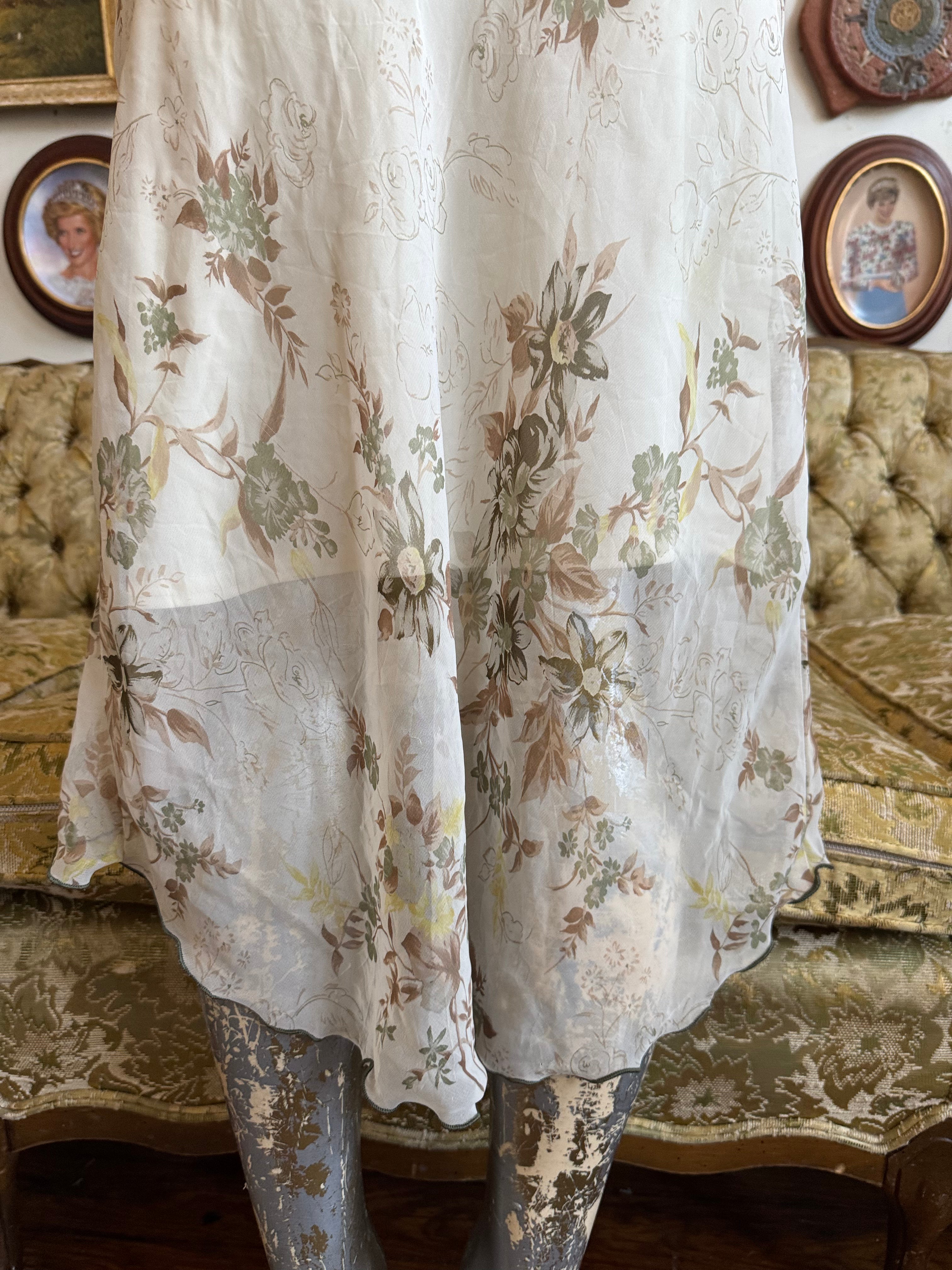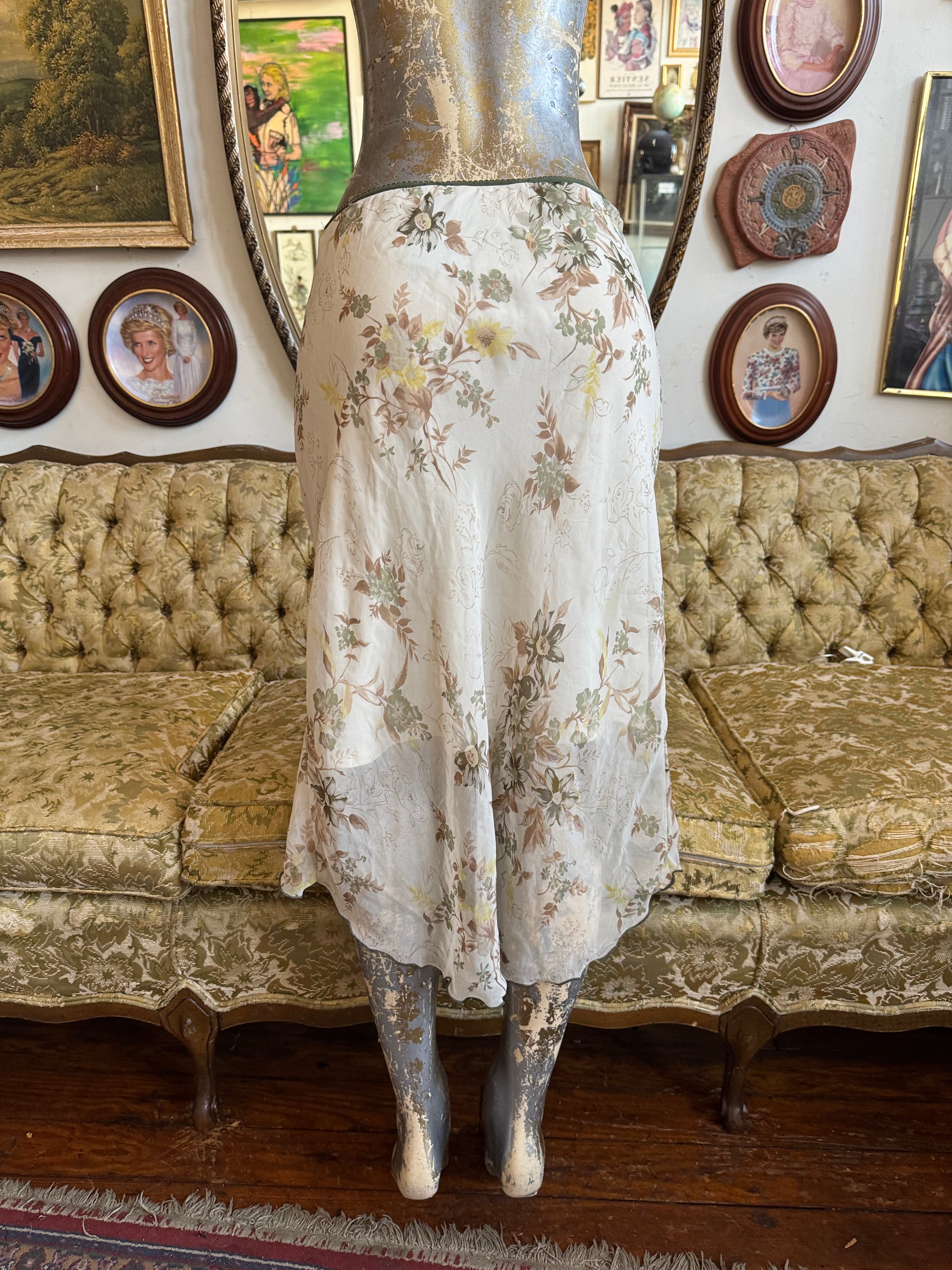 Y2K Off White Floral Print Sheer Hi Low Skirt Size Medium