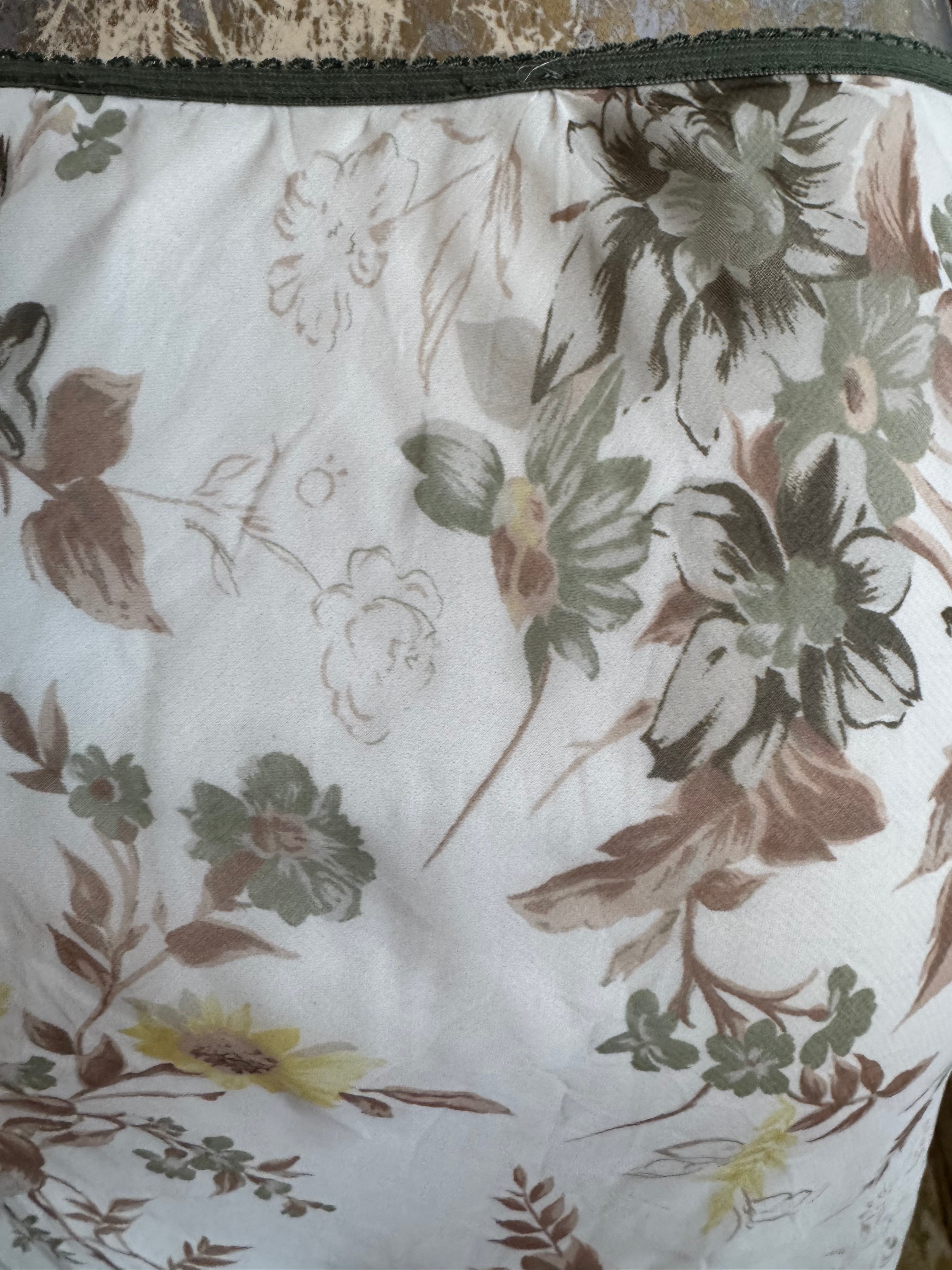 Description: Y2K Off White Floral Print Sheer Hi Low Curved Lettuce Hem Skirt