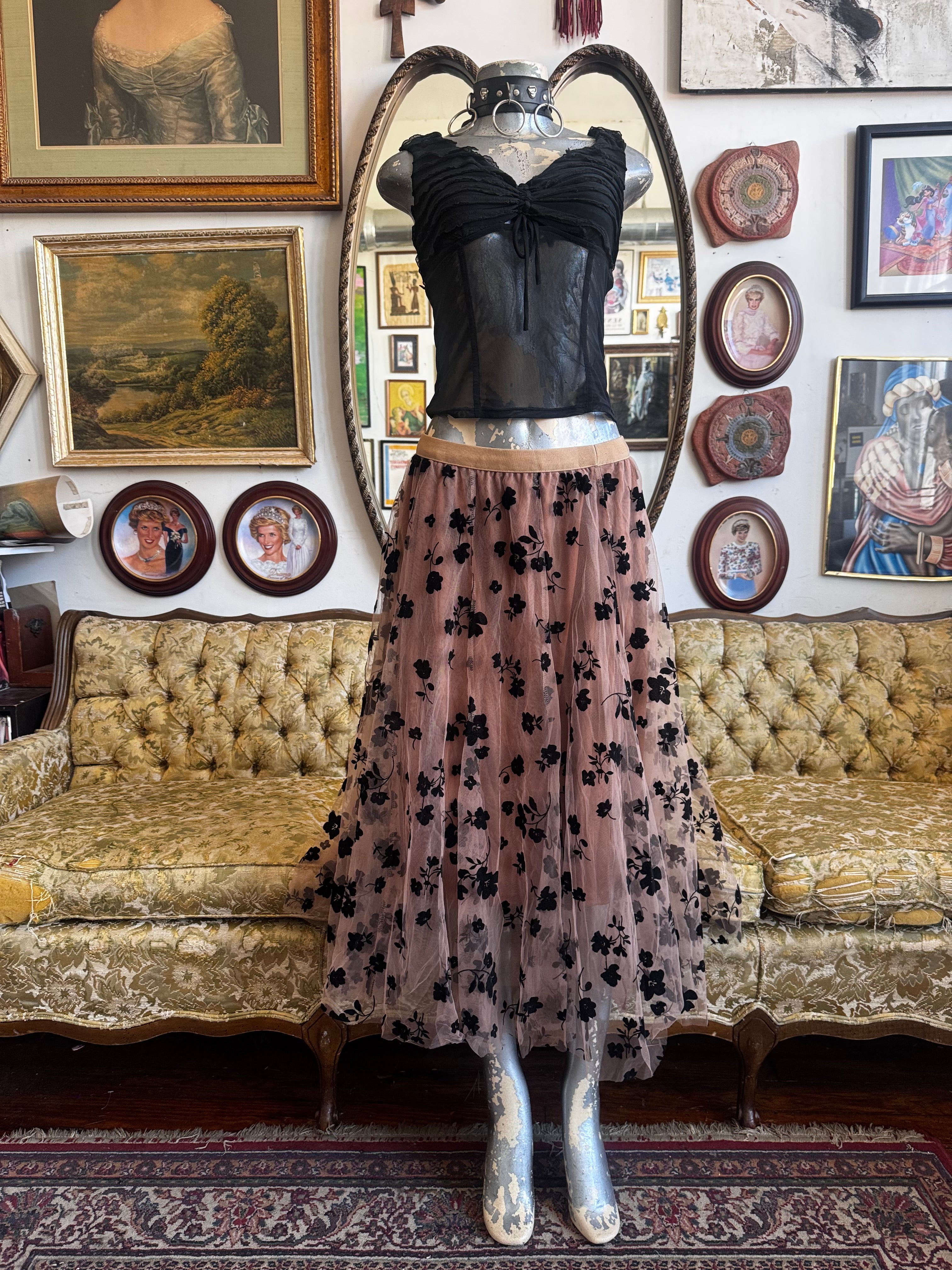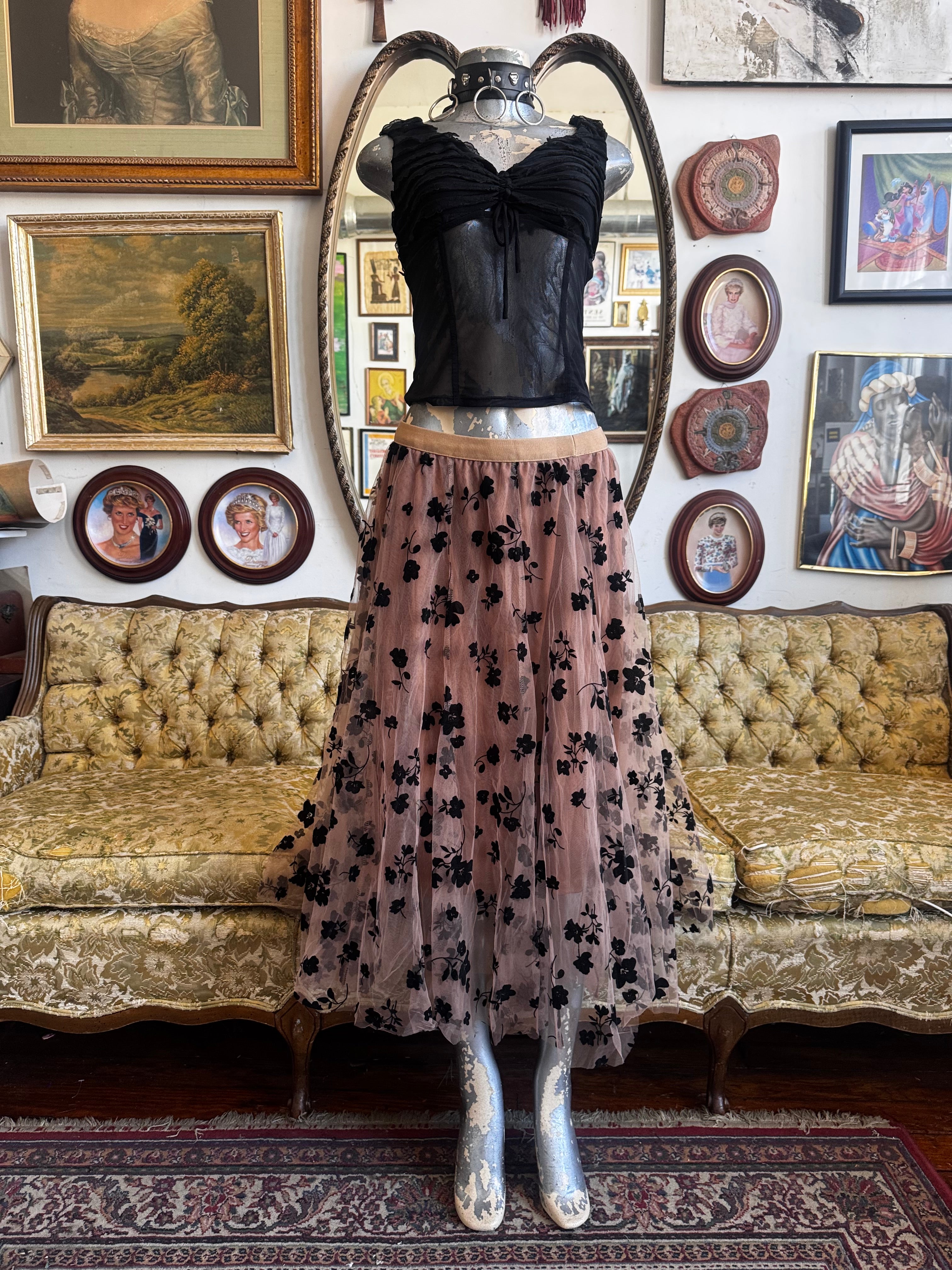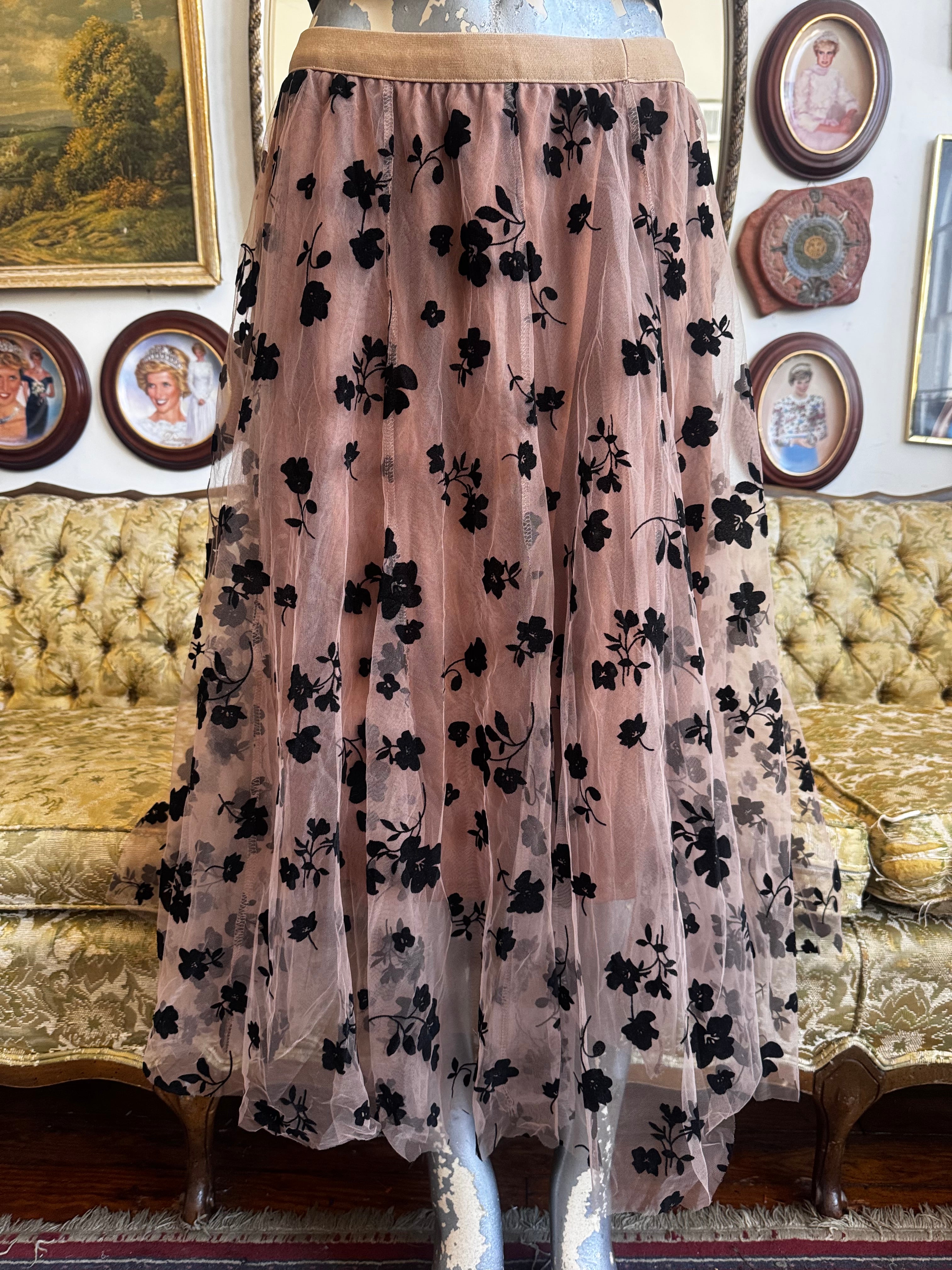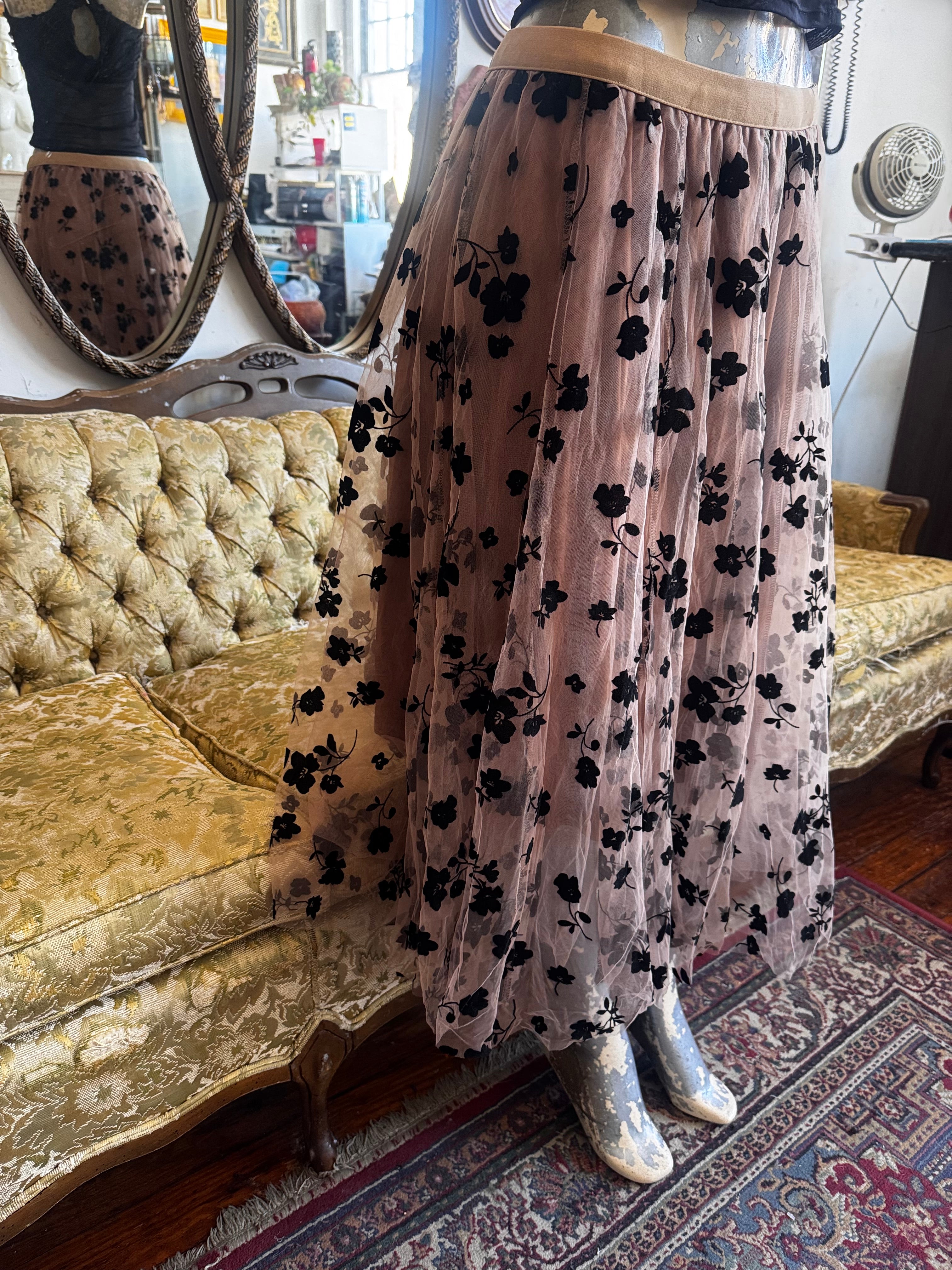 Mocha Floral Chiffon Maxi Skirt Size L/XL