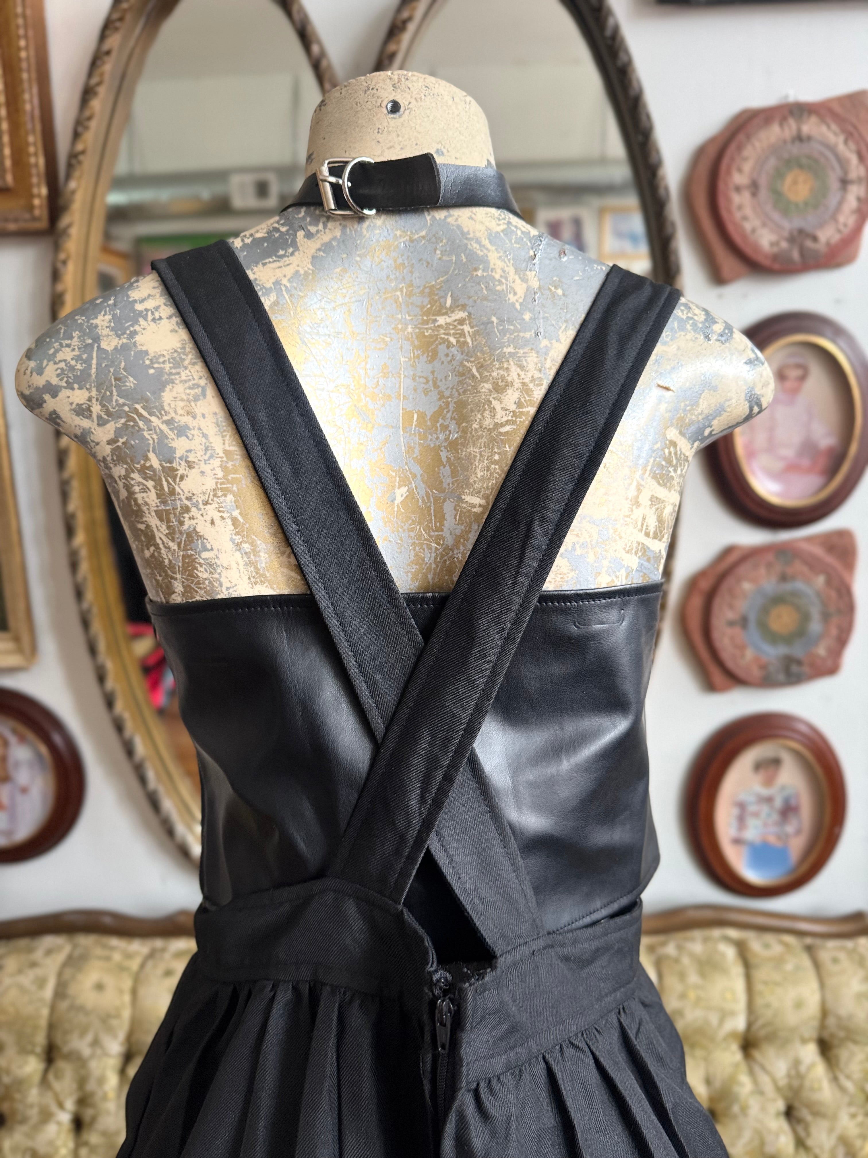 Length: 33.5" from waist to hem, not including straps which are adjustable.