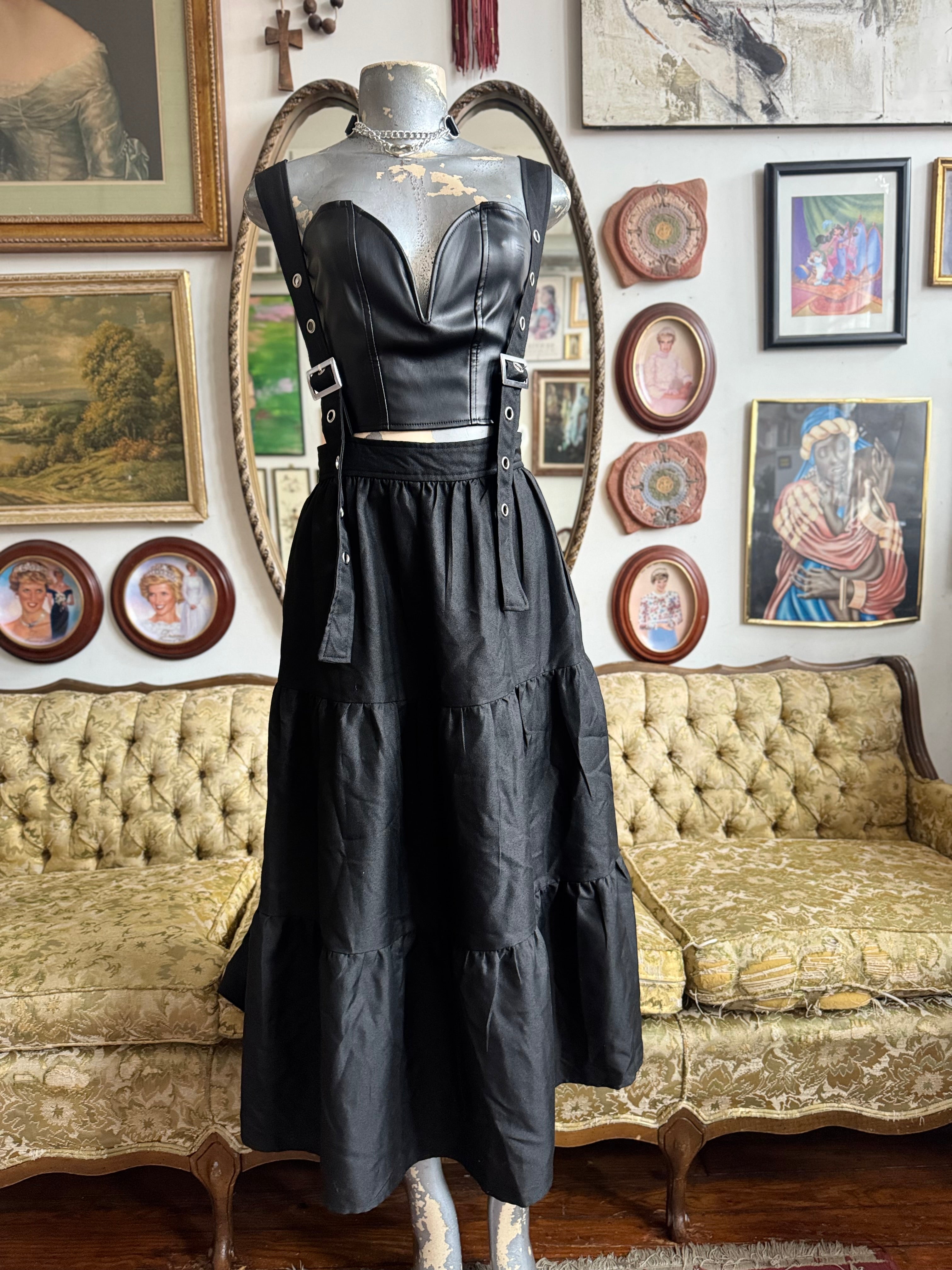 Cosmic Aura Tiered Grommet Overall Maxi Skirt Size Medium AS IS
