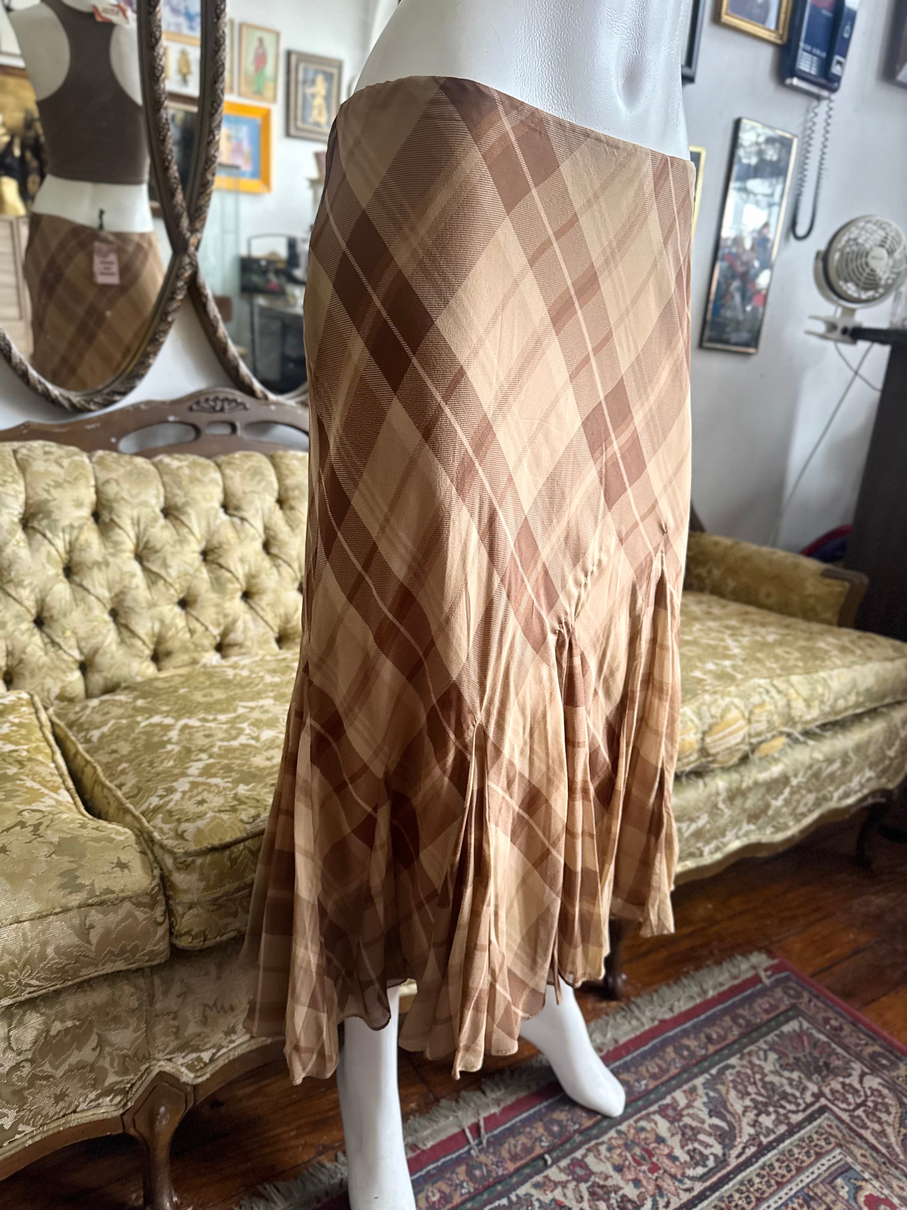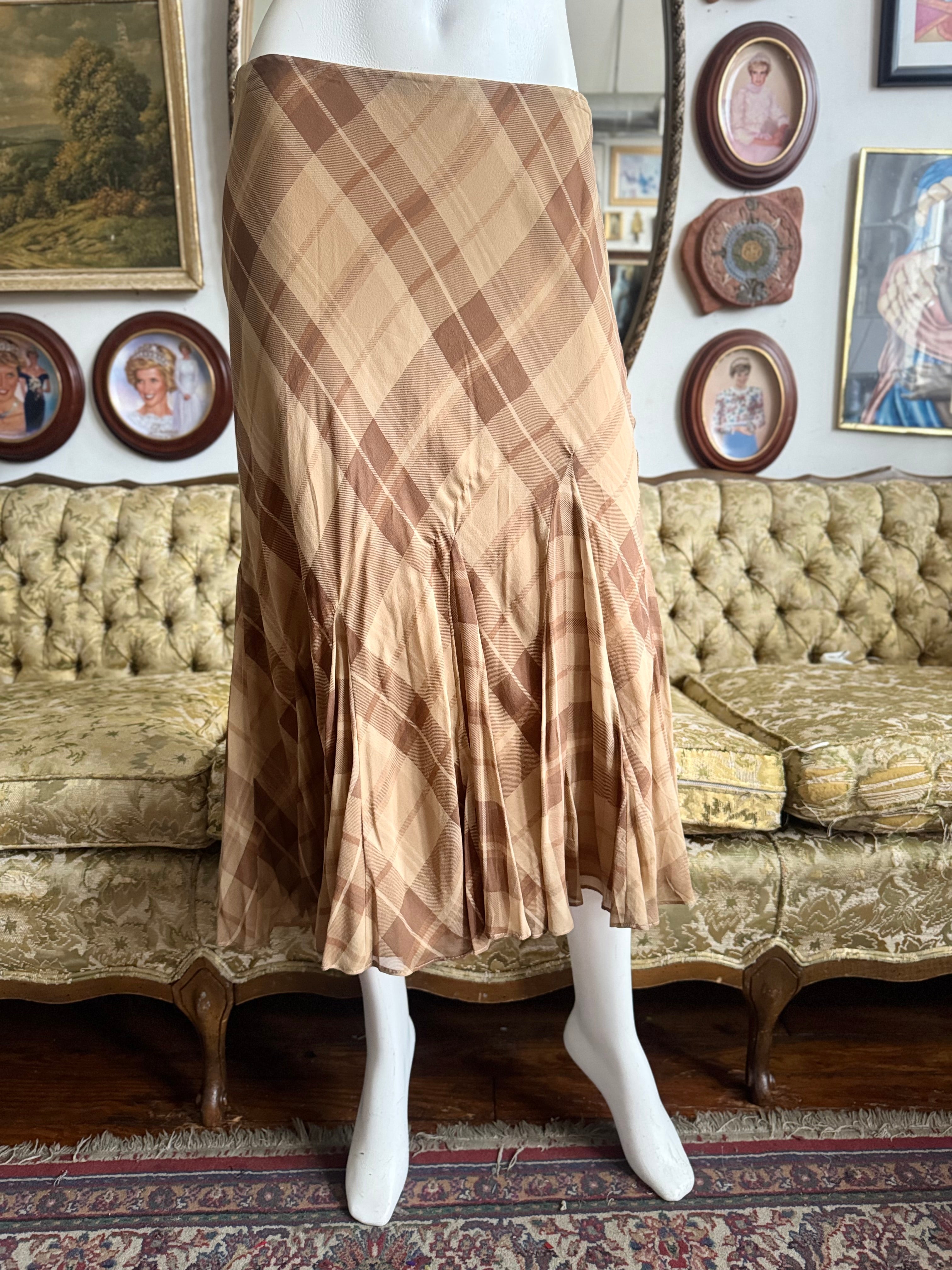 Vintage Y2K Ralph Lauren Silk Plaid Fairy Skirt Size Medium