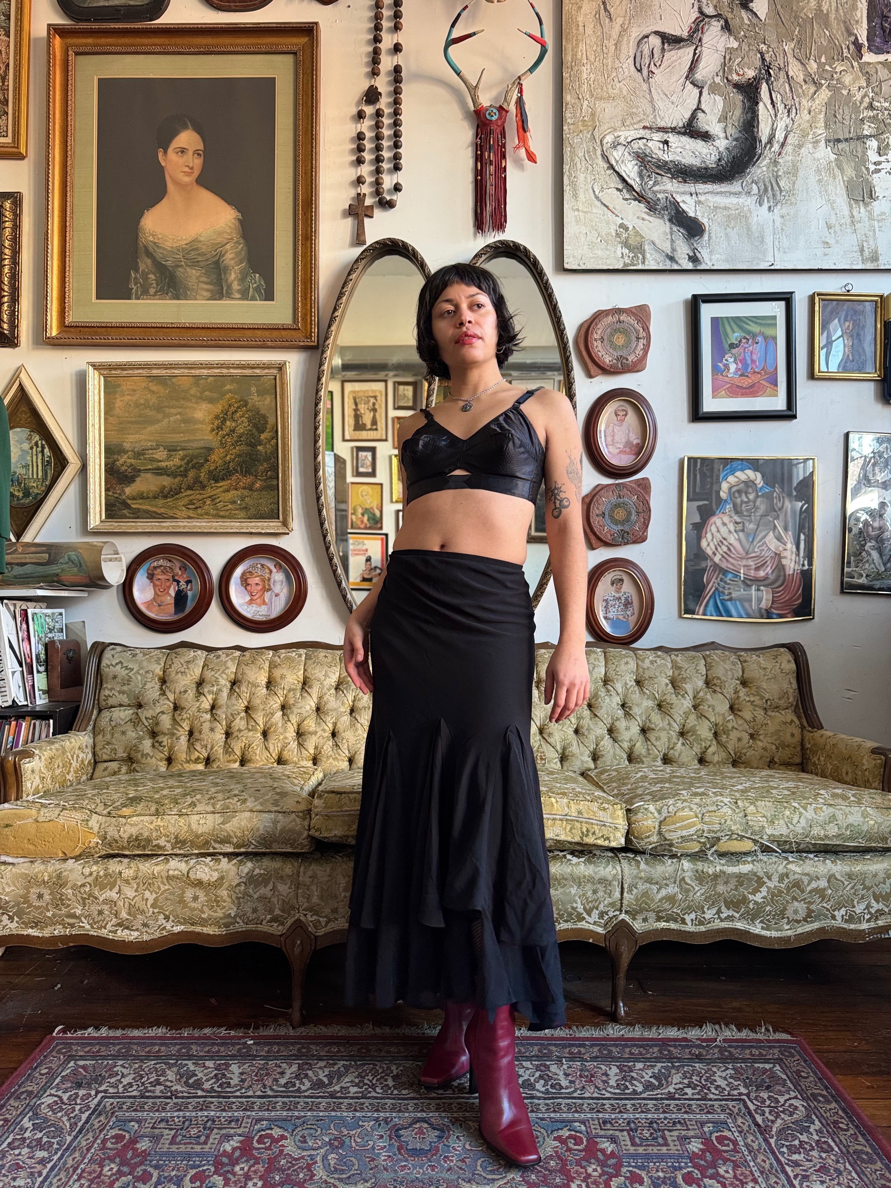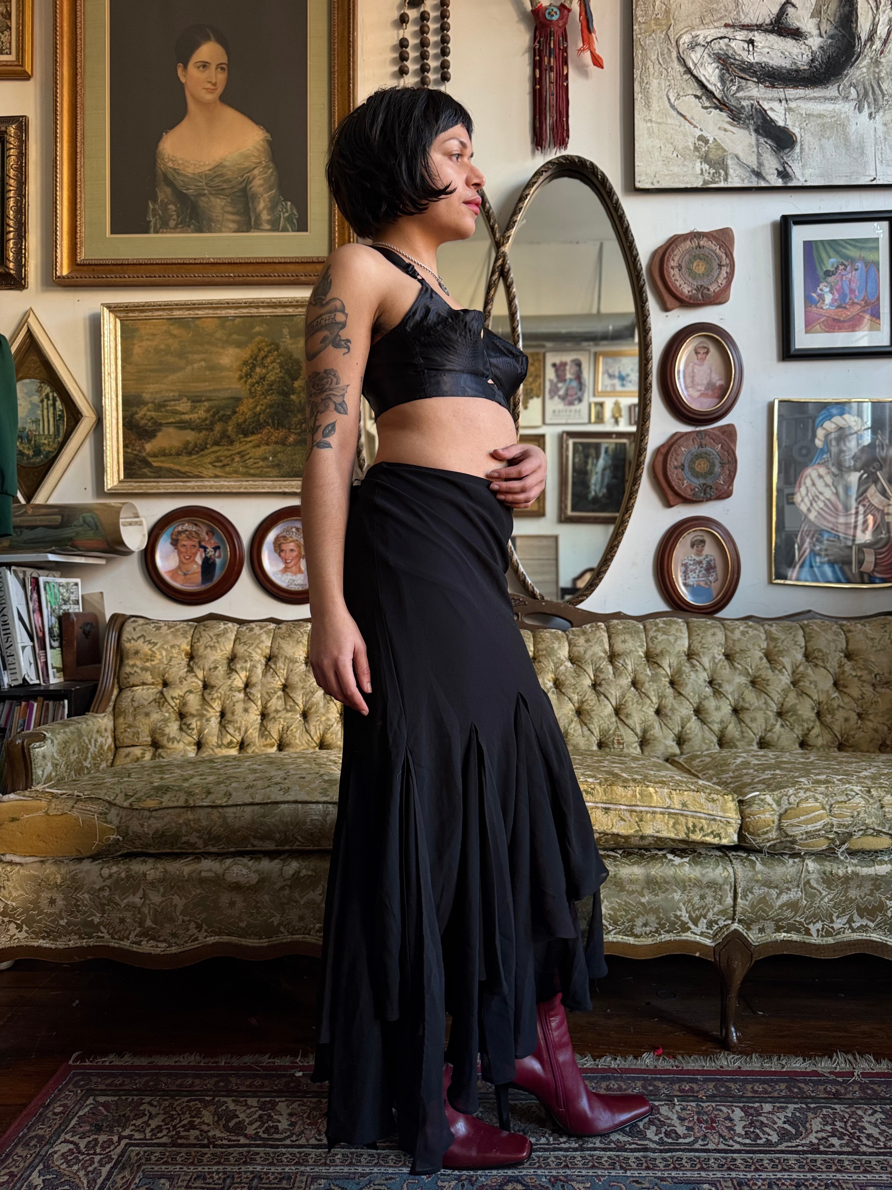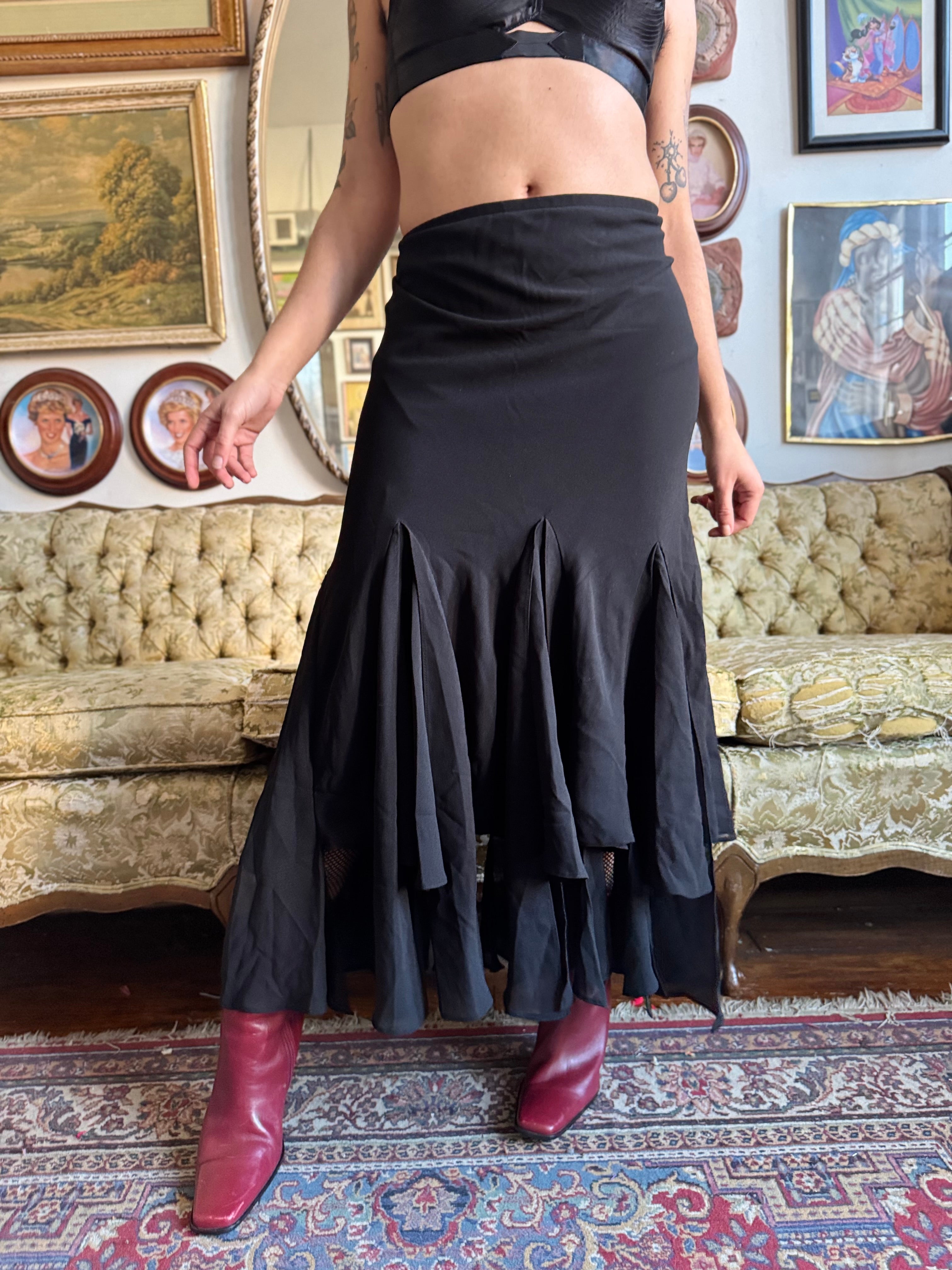 Y2k MSK Black Asymmetrical Hem Fluted Black Maxi Skirt Size S