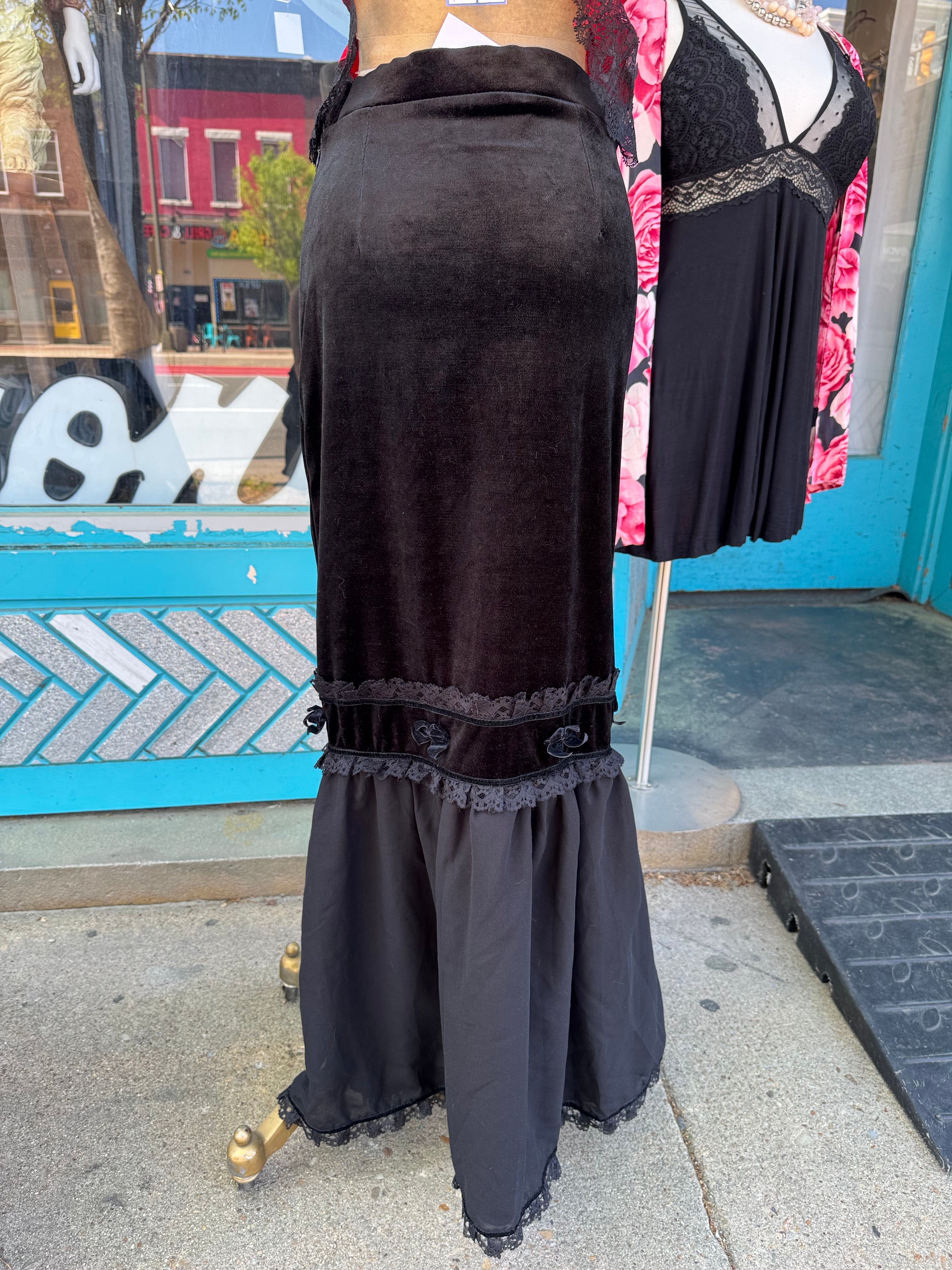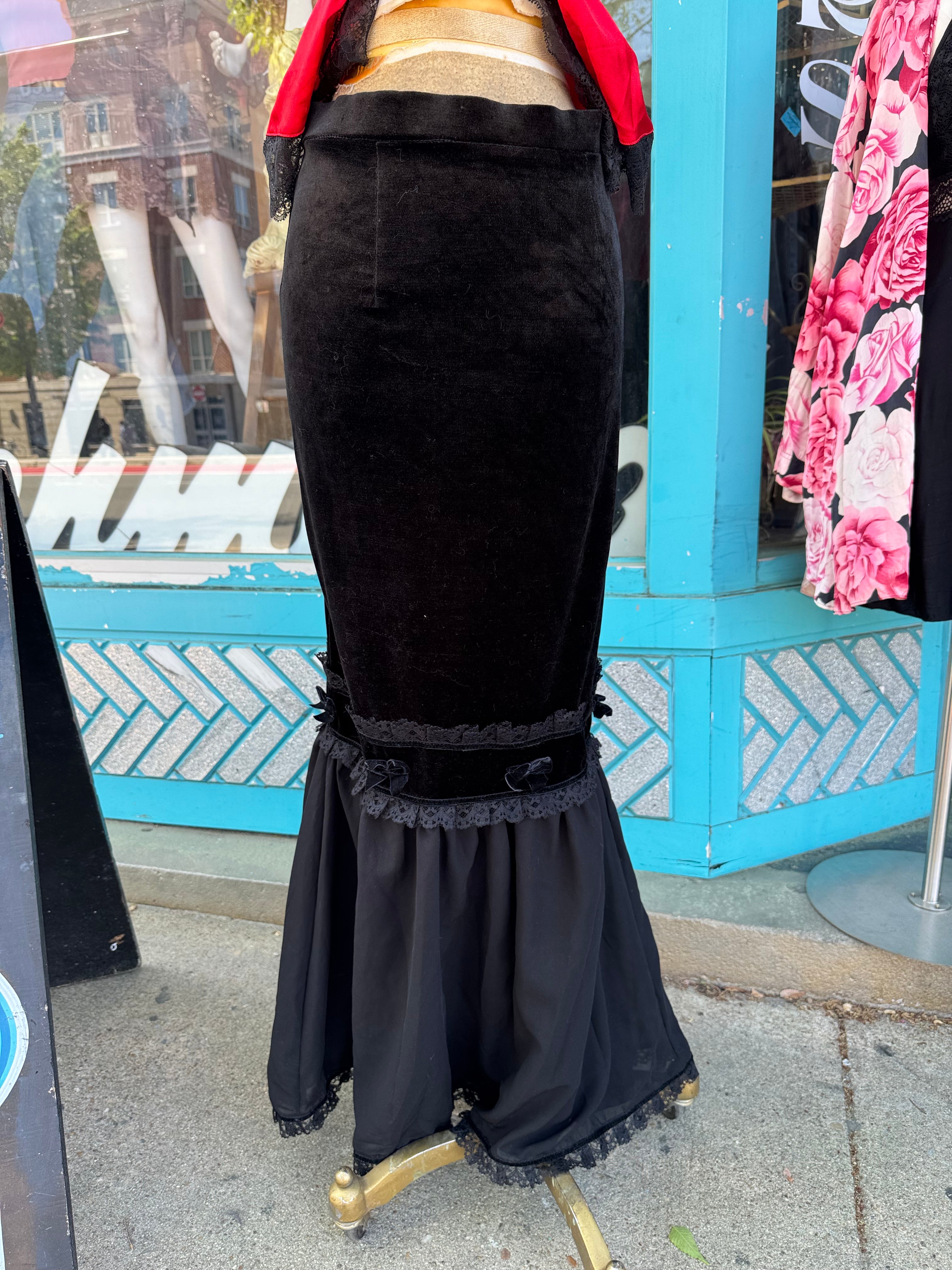 Sinister Black Velvet Lace Trim Mermaid Maxi Skirt Size S