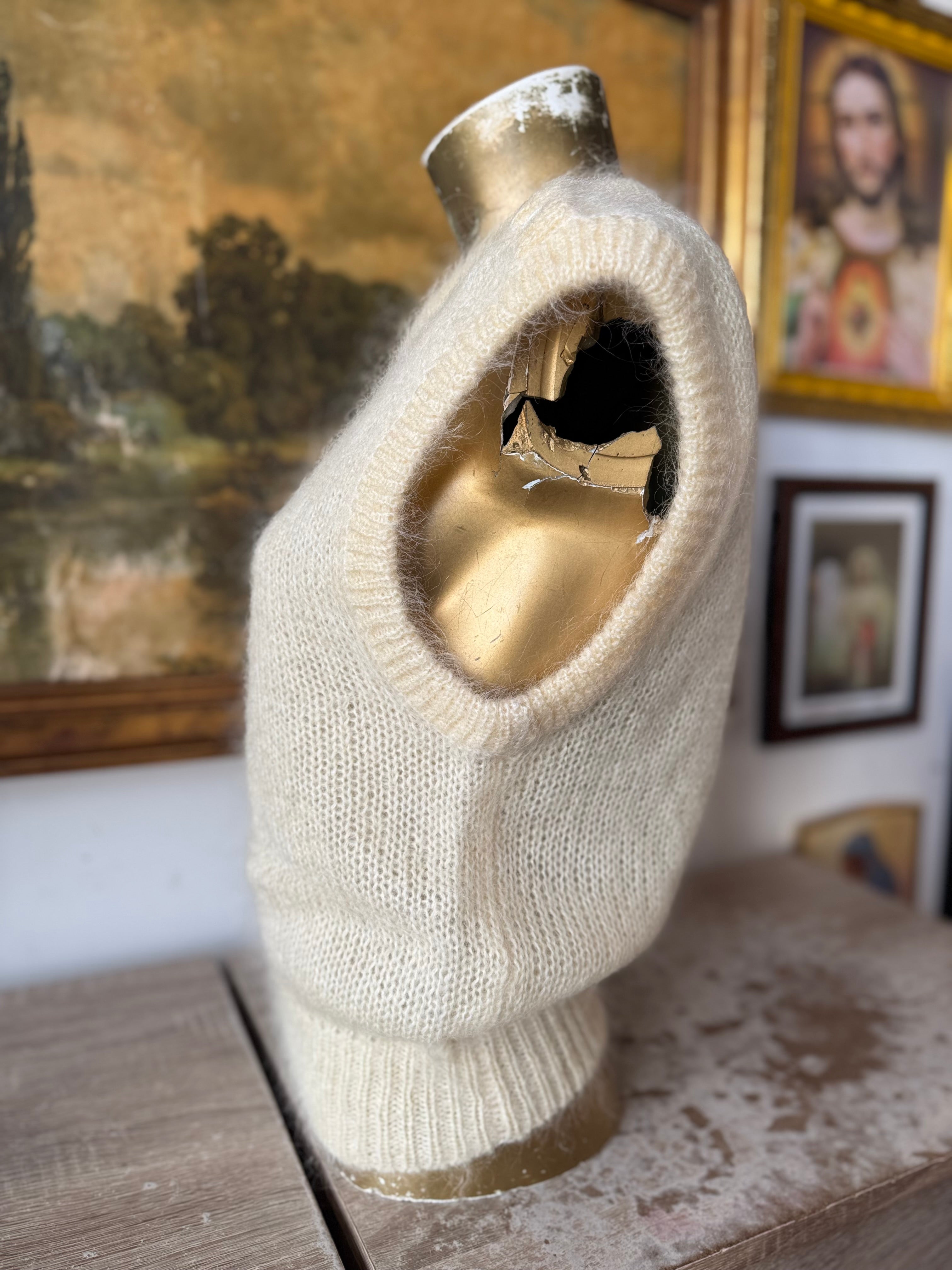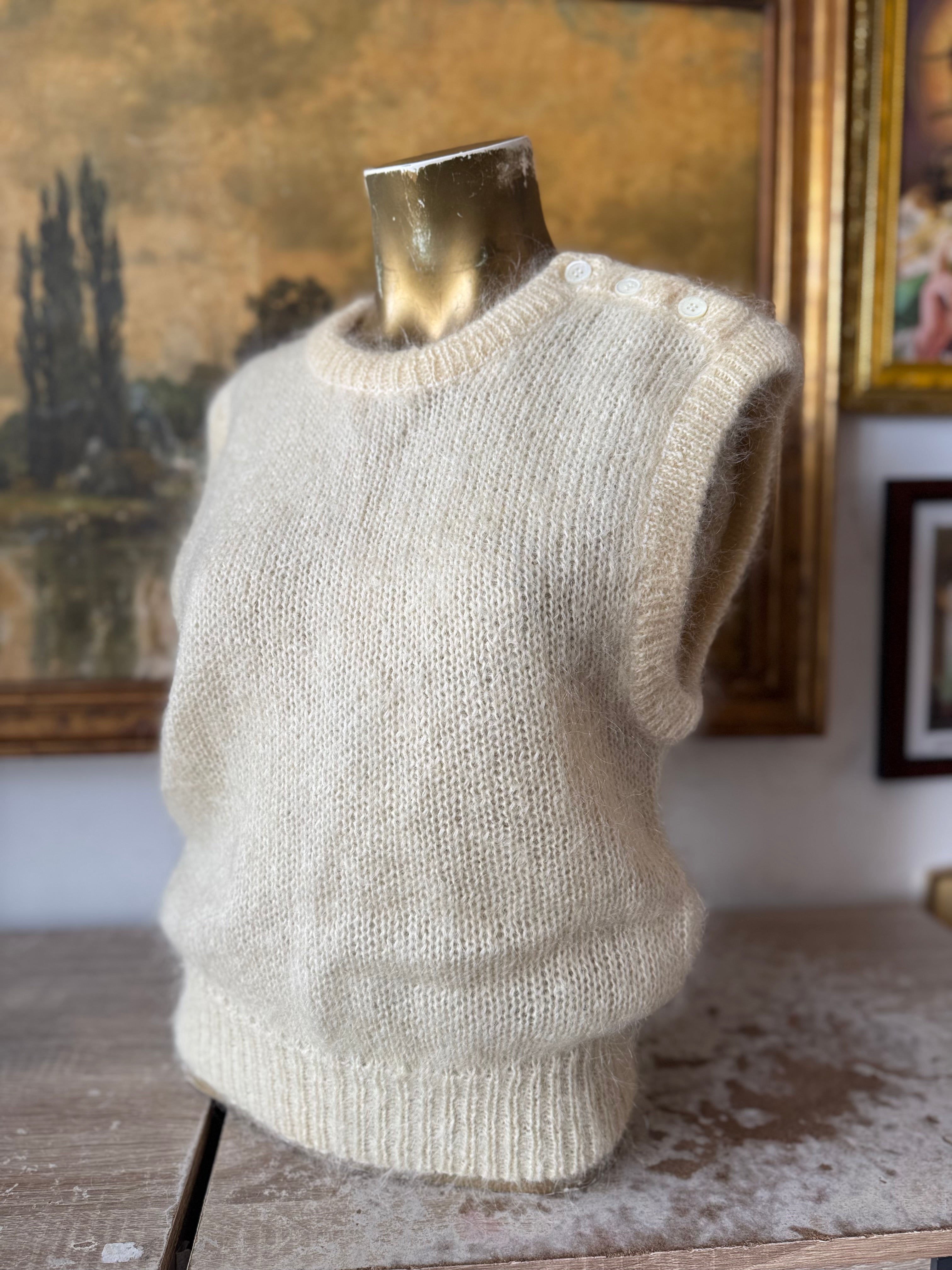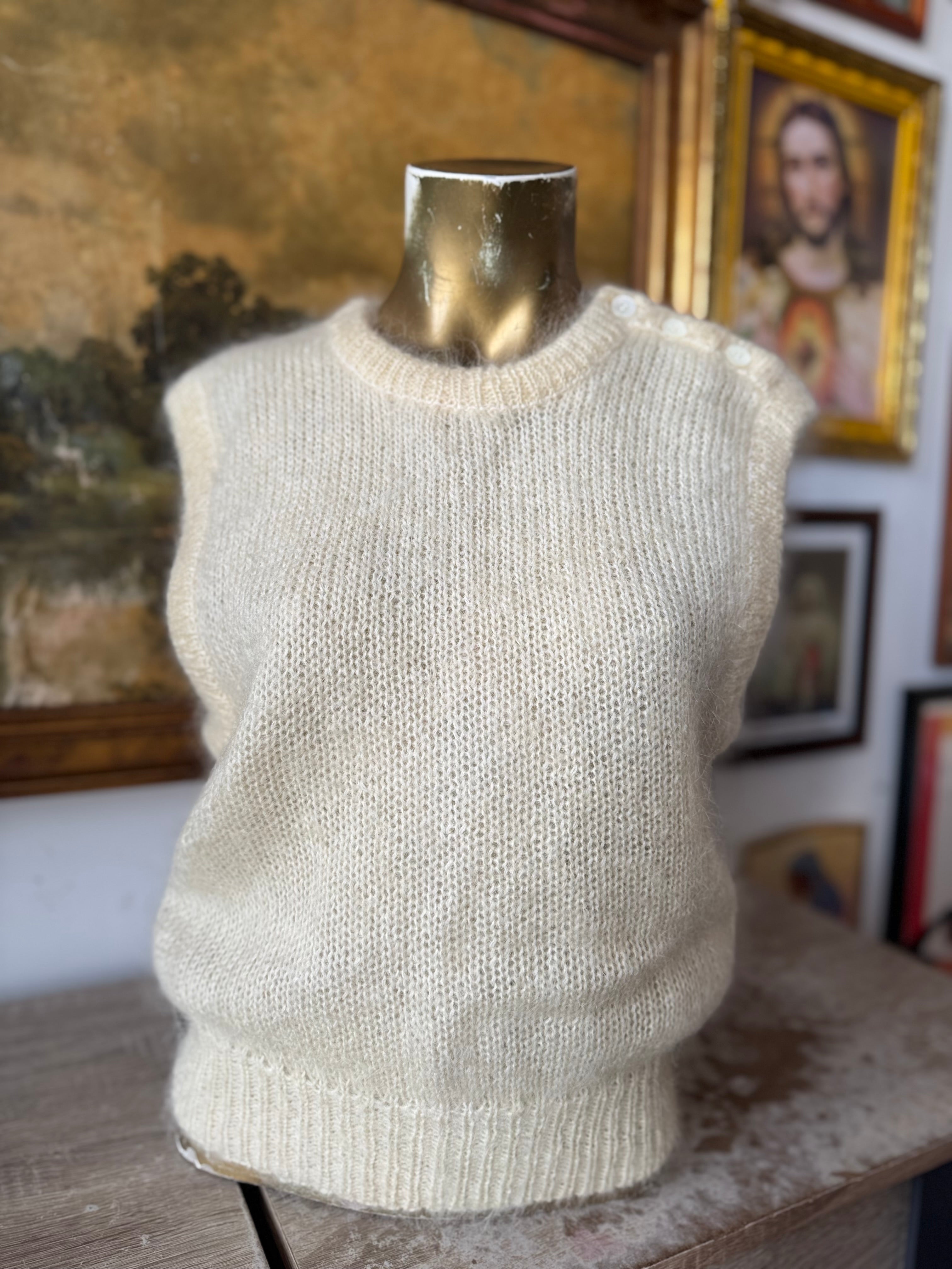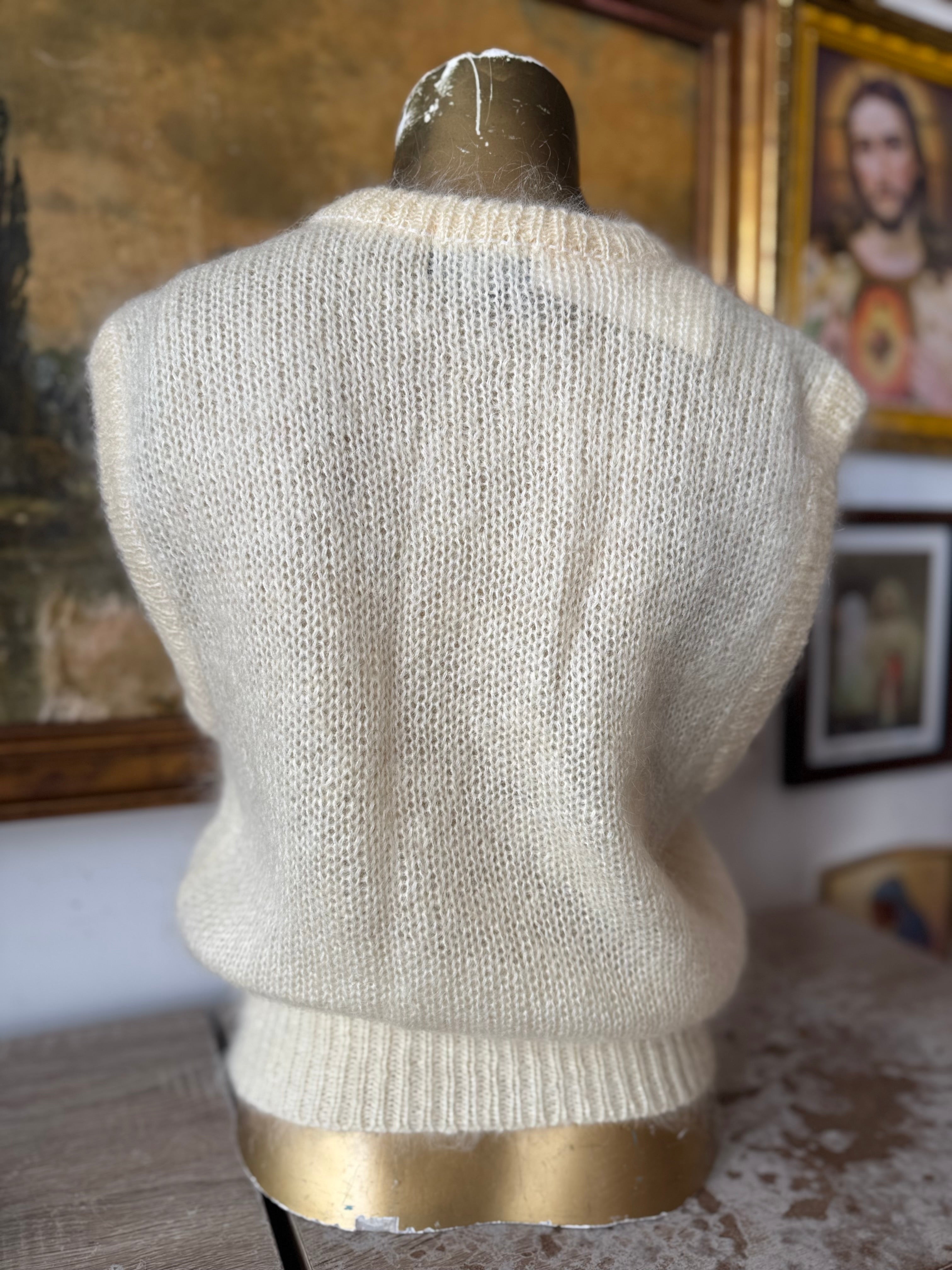 90s Vintage Cream Sleeveless Mohair Sweater Size M