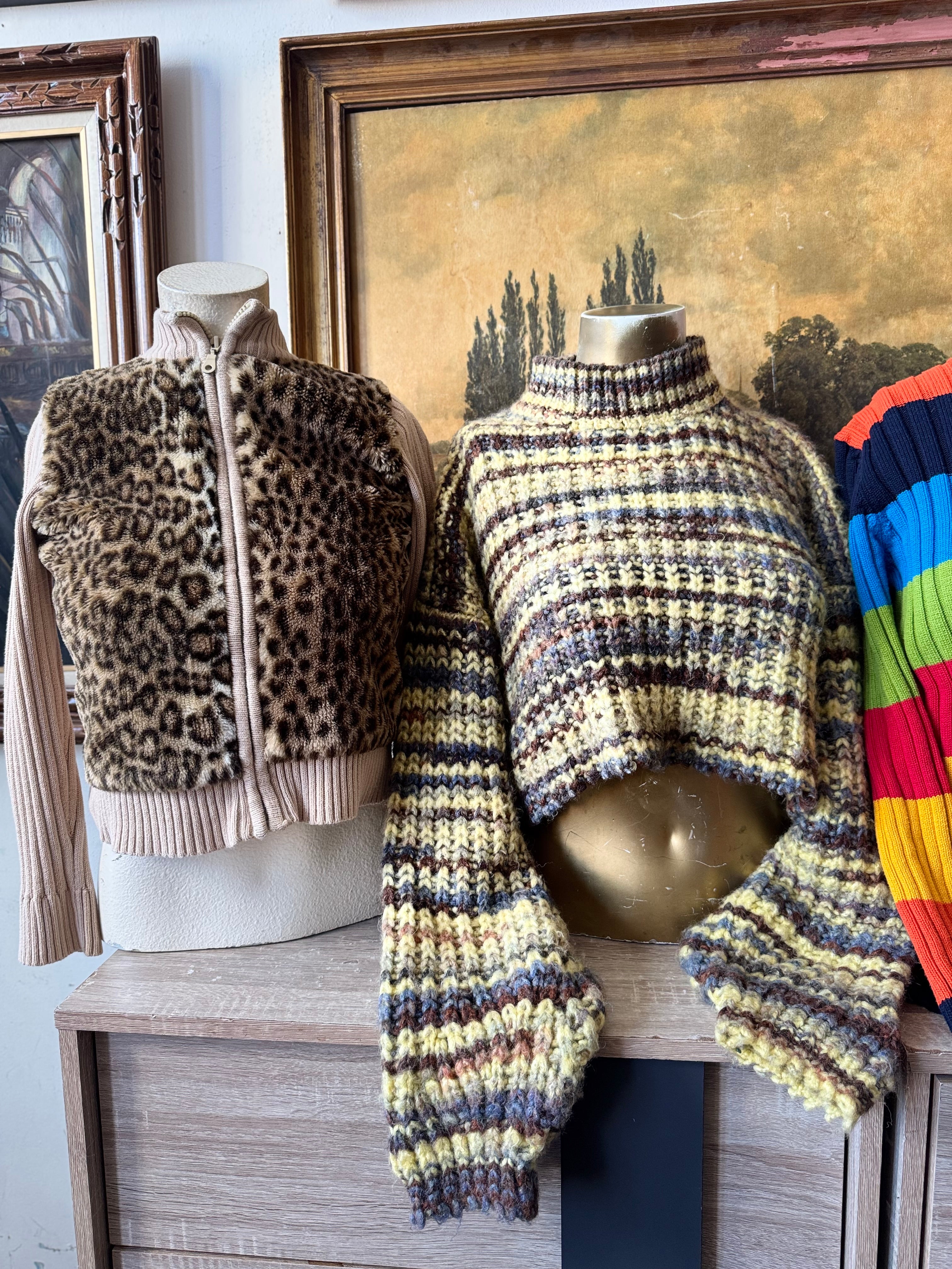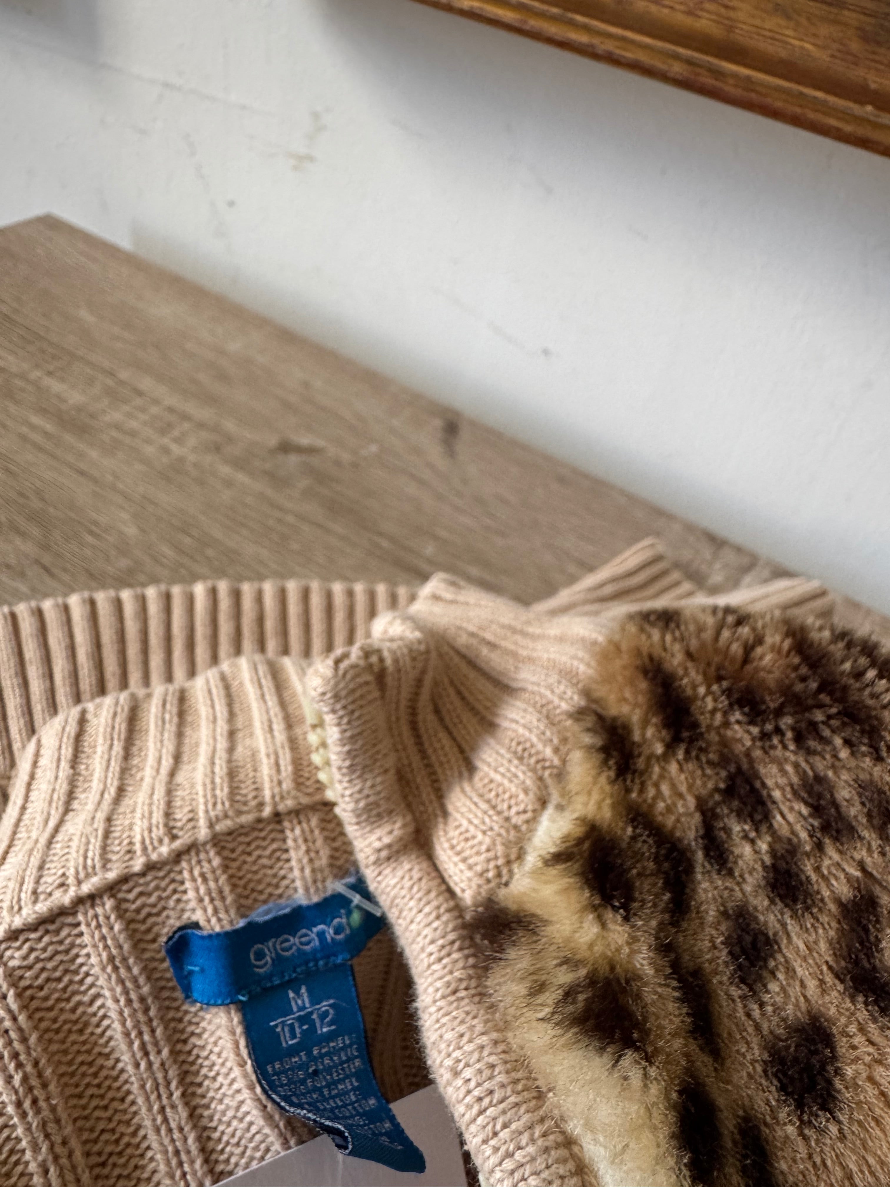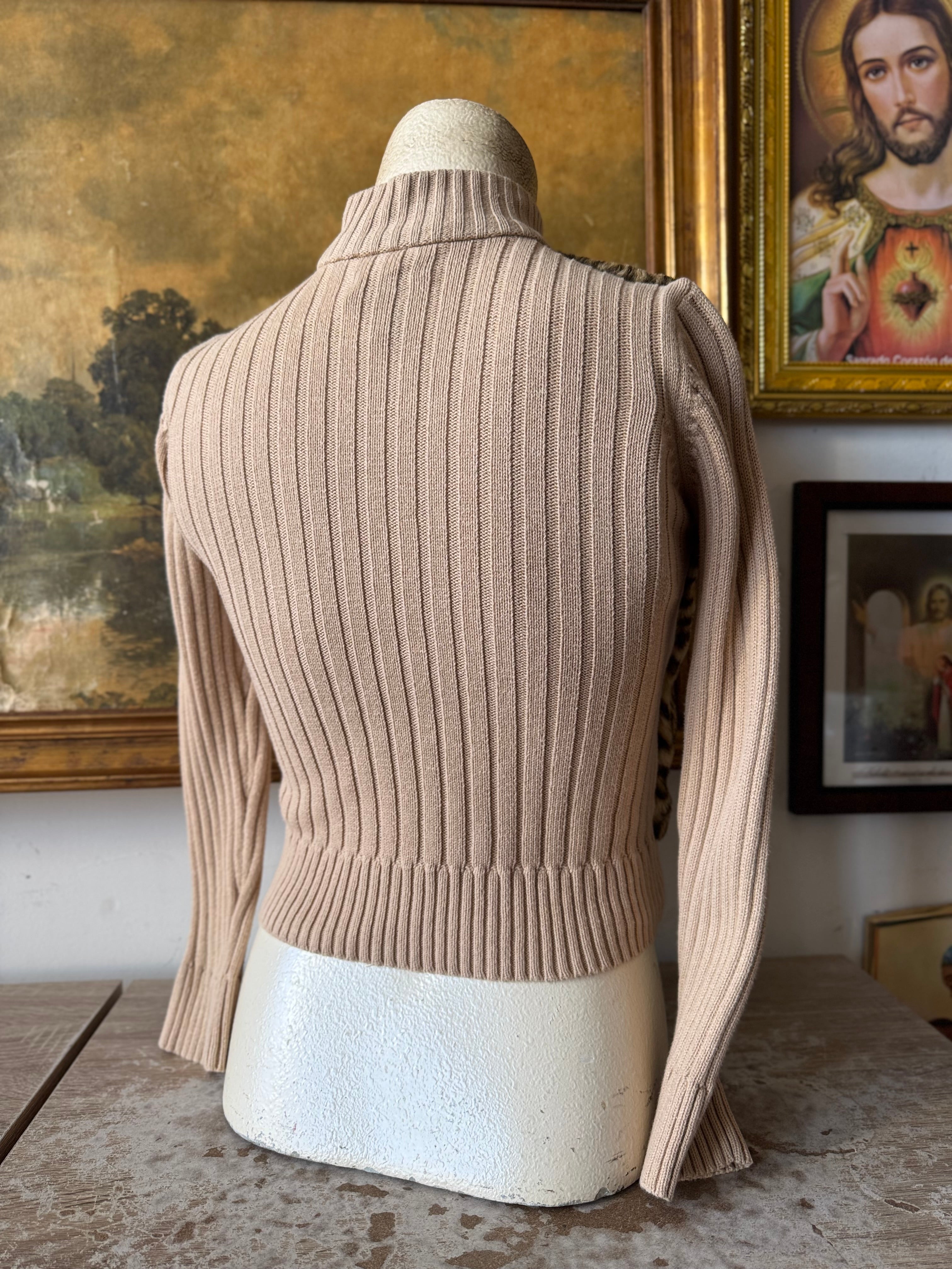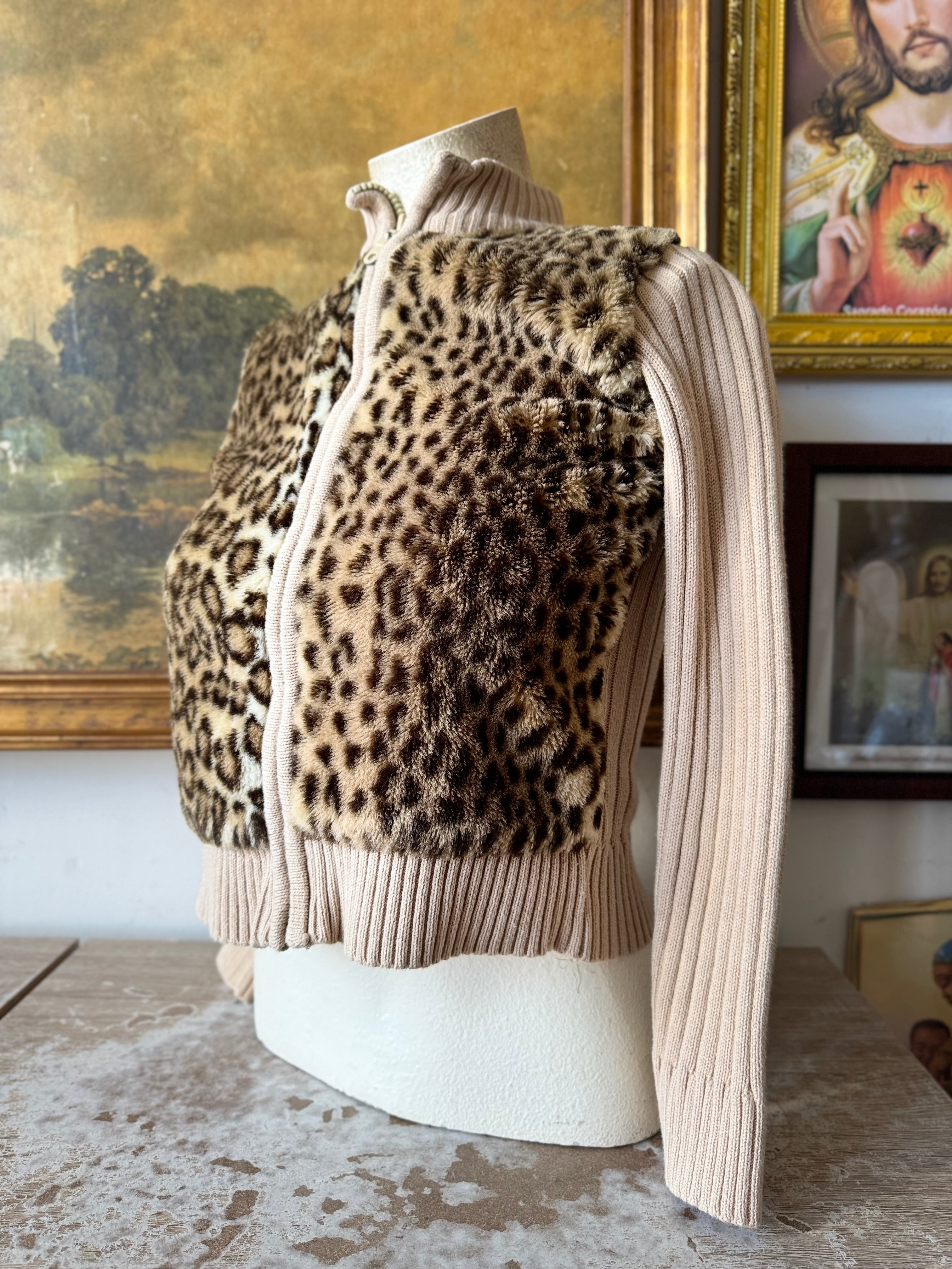 Vintage 2000s Faux Leopard Zip Ribbed Sweater Size Medium by Greendog