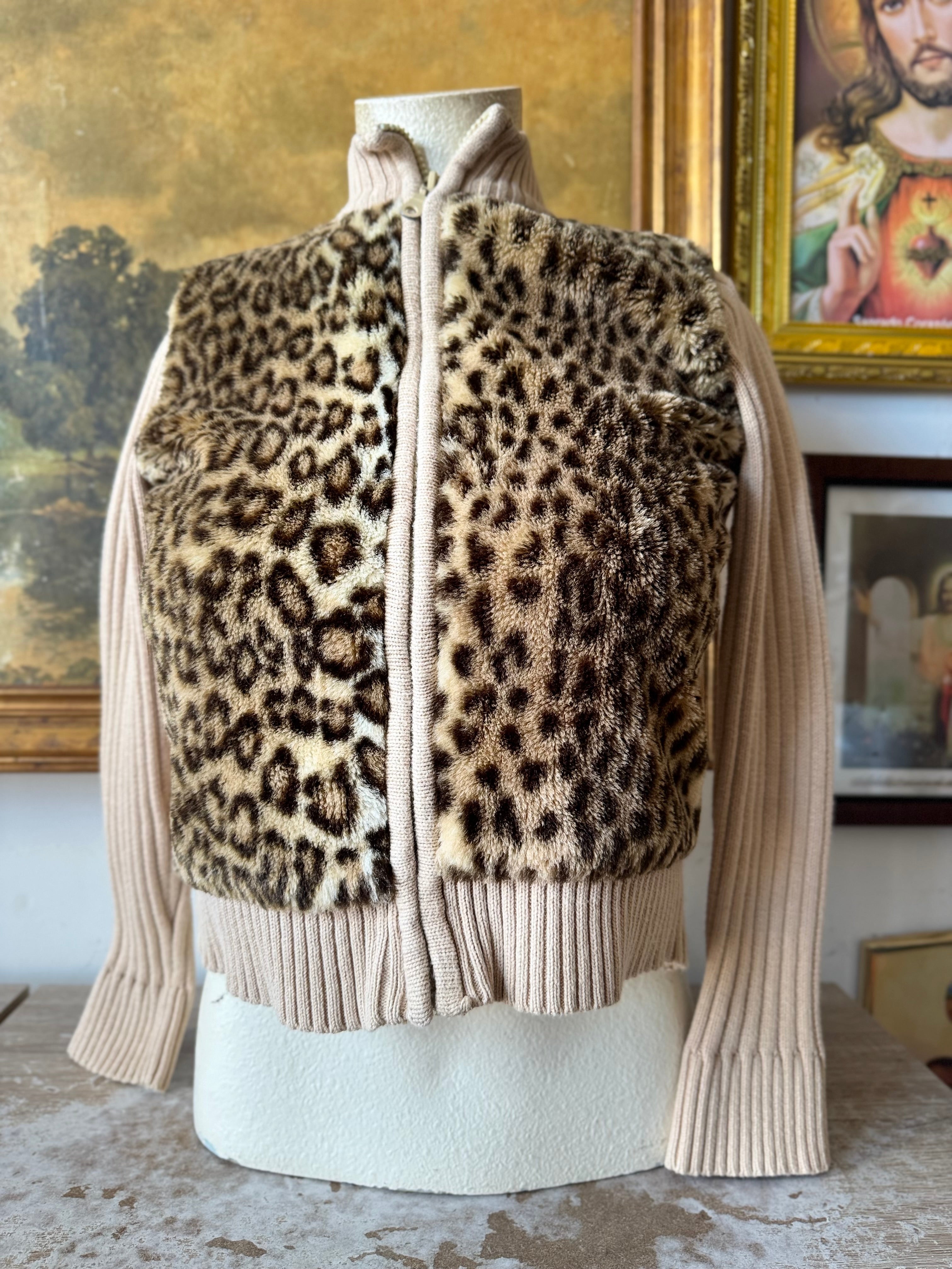 Vintage 2000s Faux Leopard Zip Ribbed Sweater Size XS by Greendog