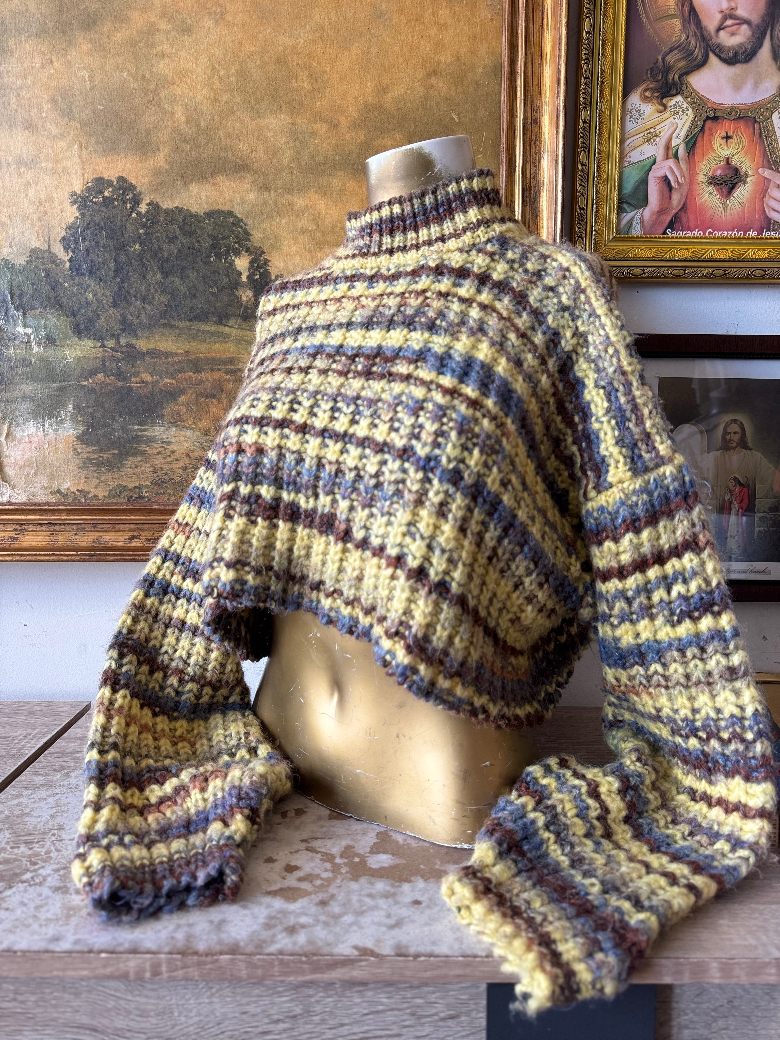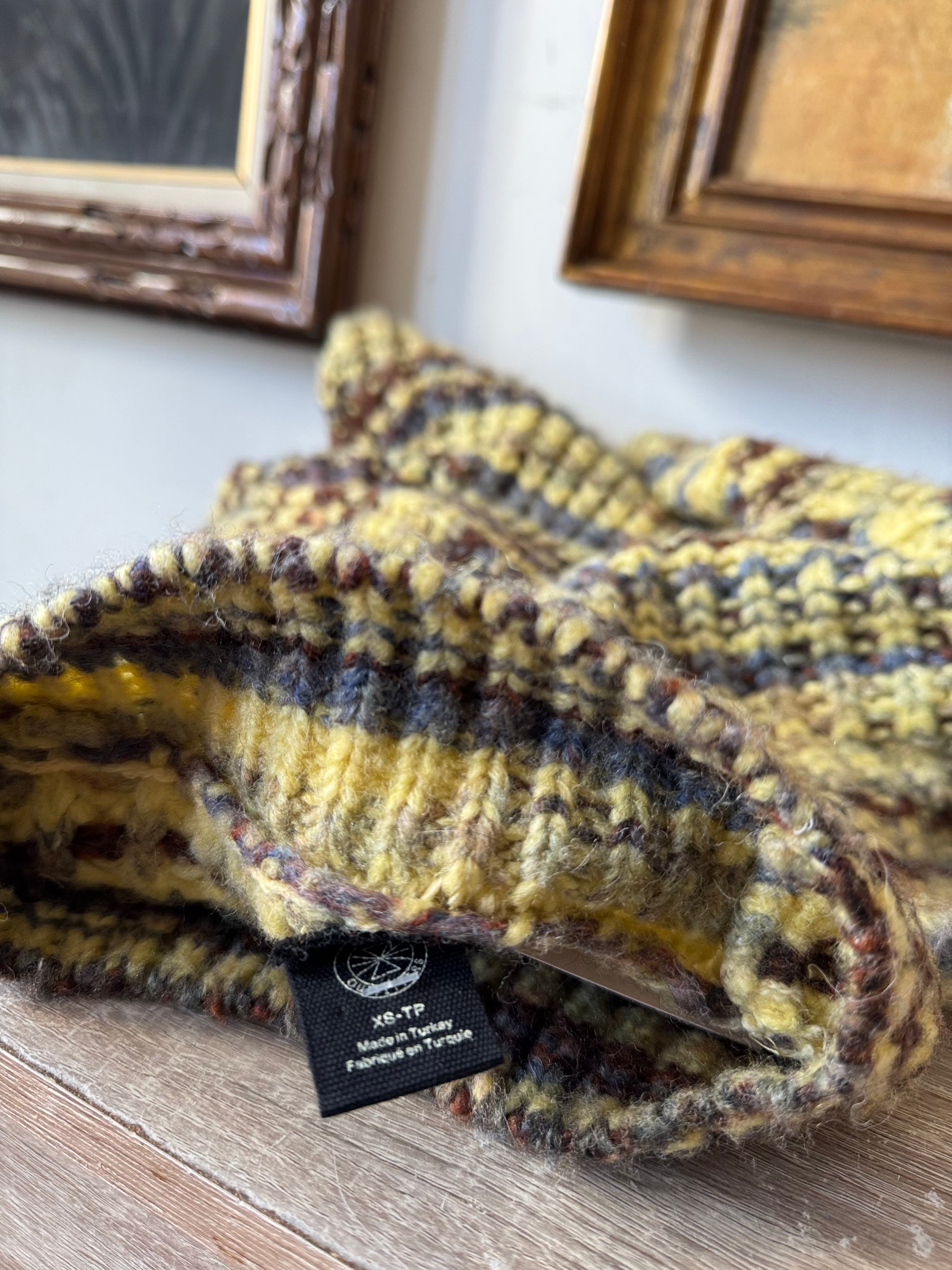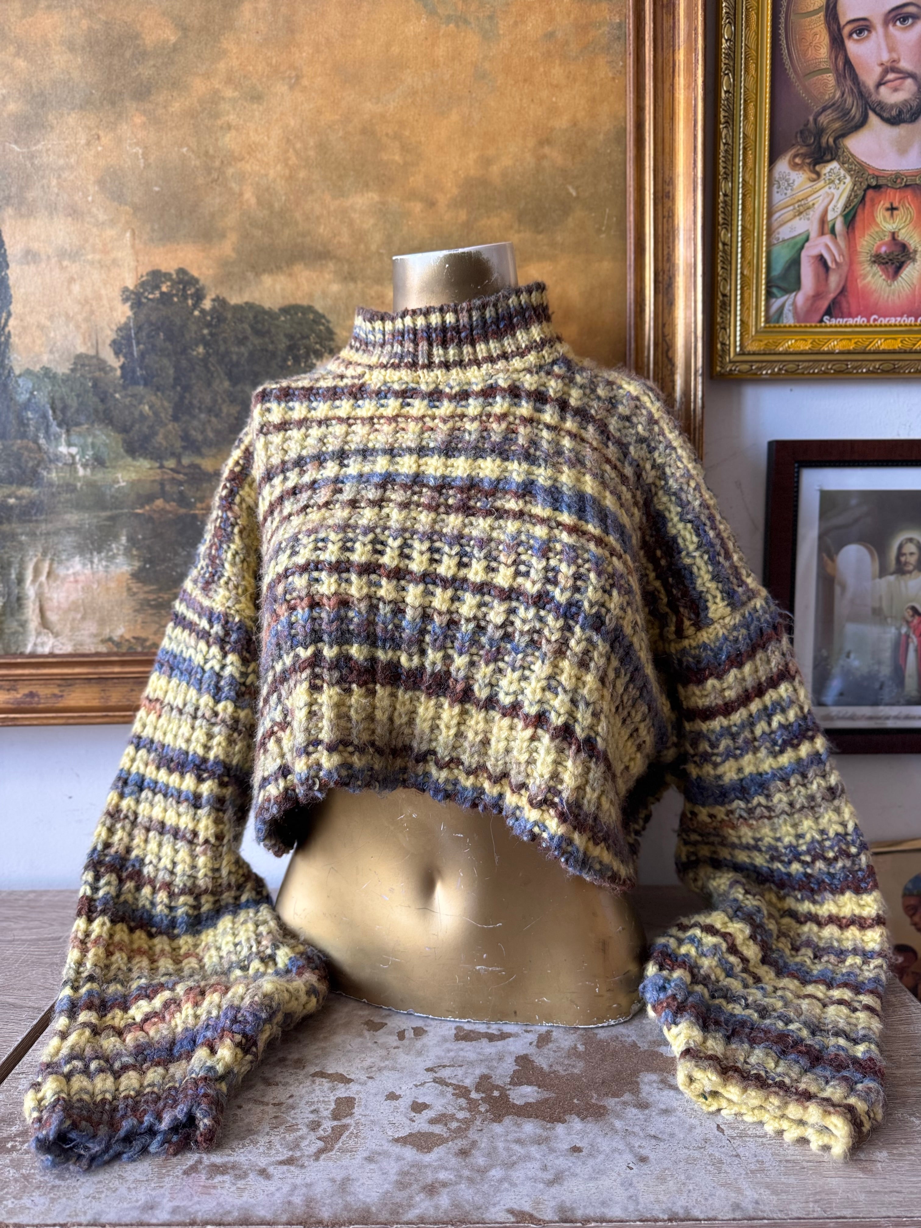 UO Yellow, Brown and Gray Striped Turtle Neck Sweater w Raw Crop Size XS