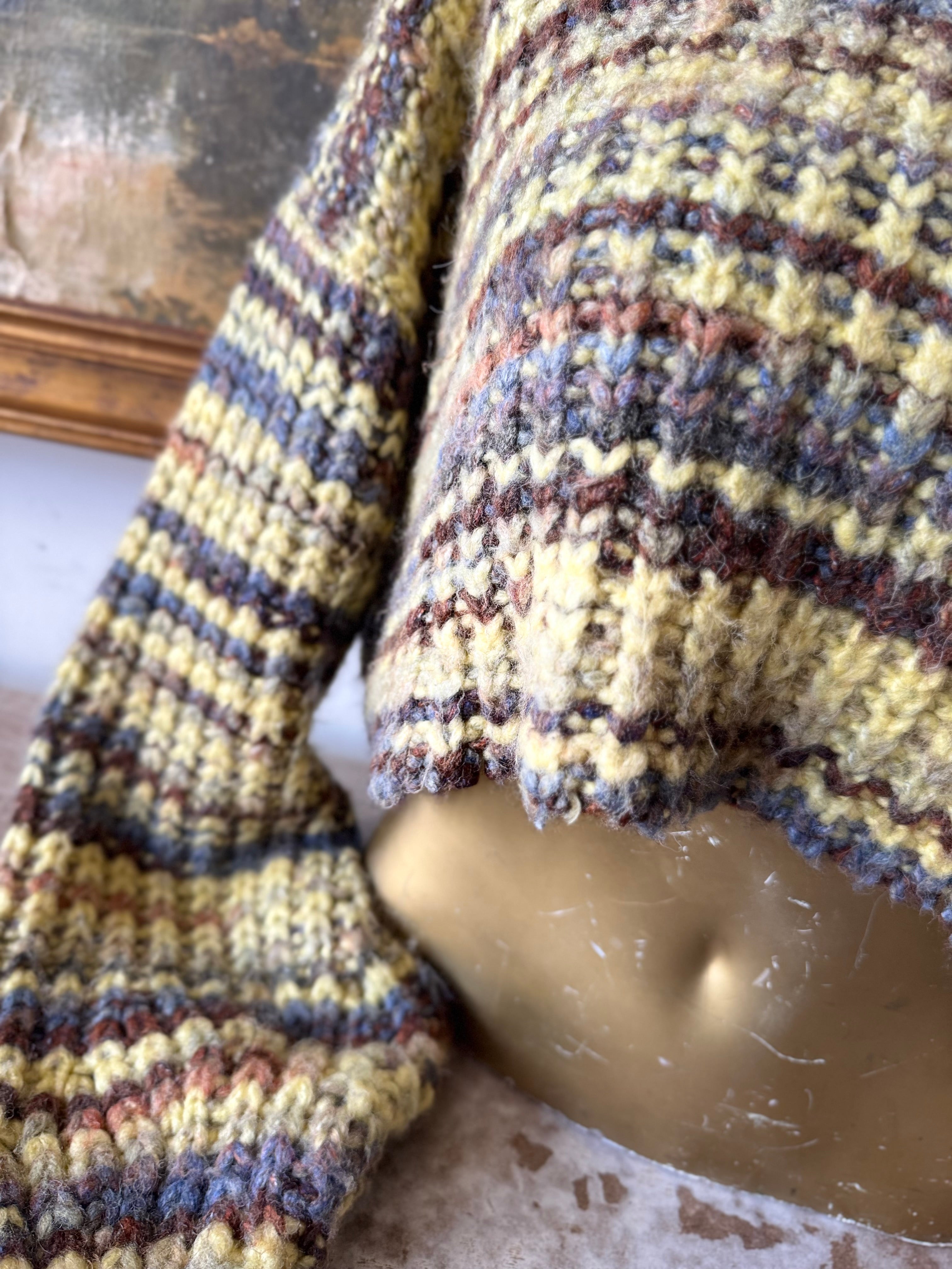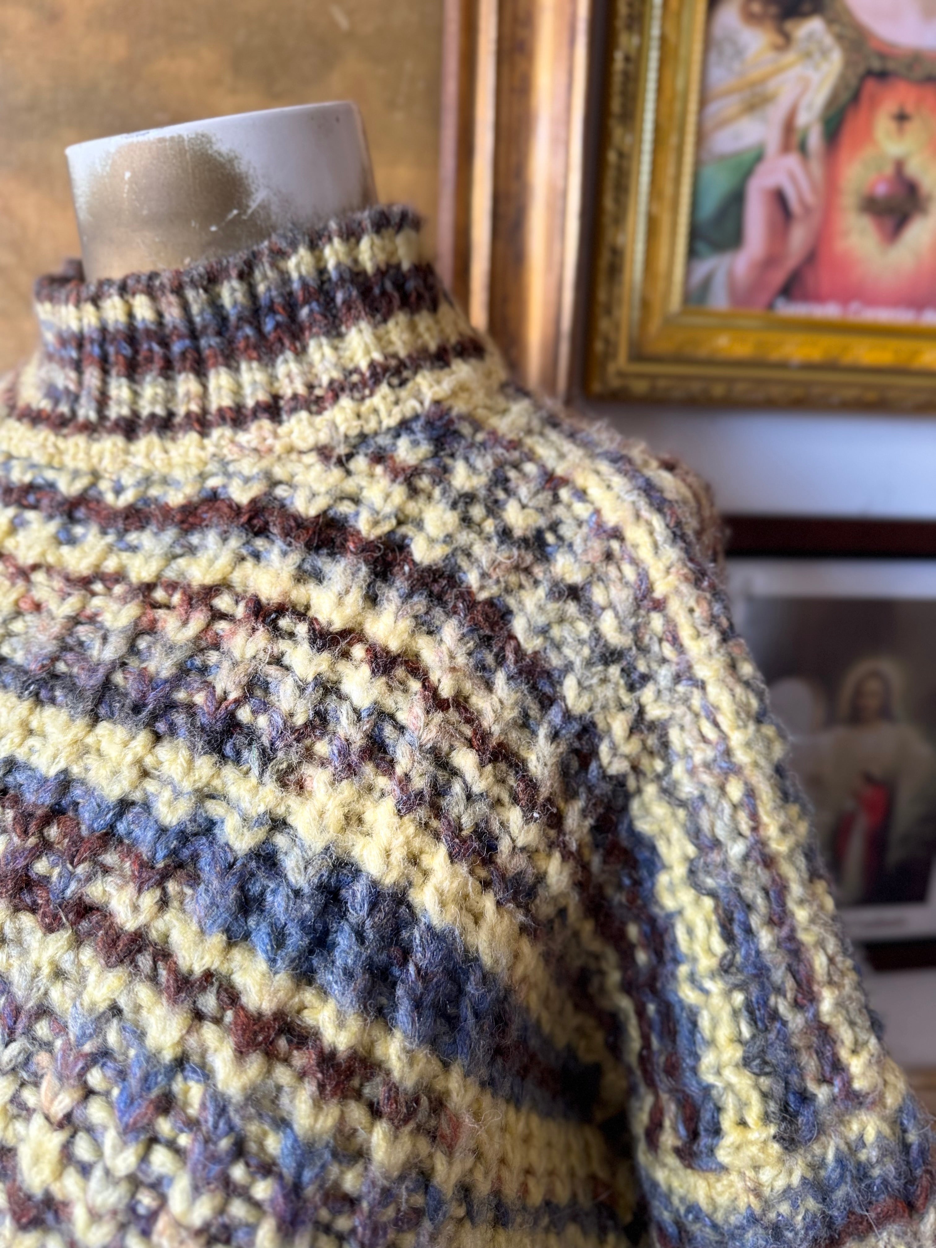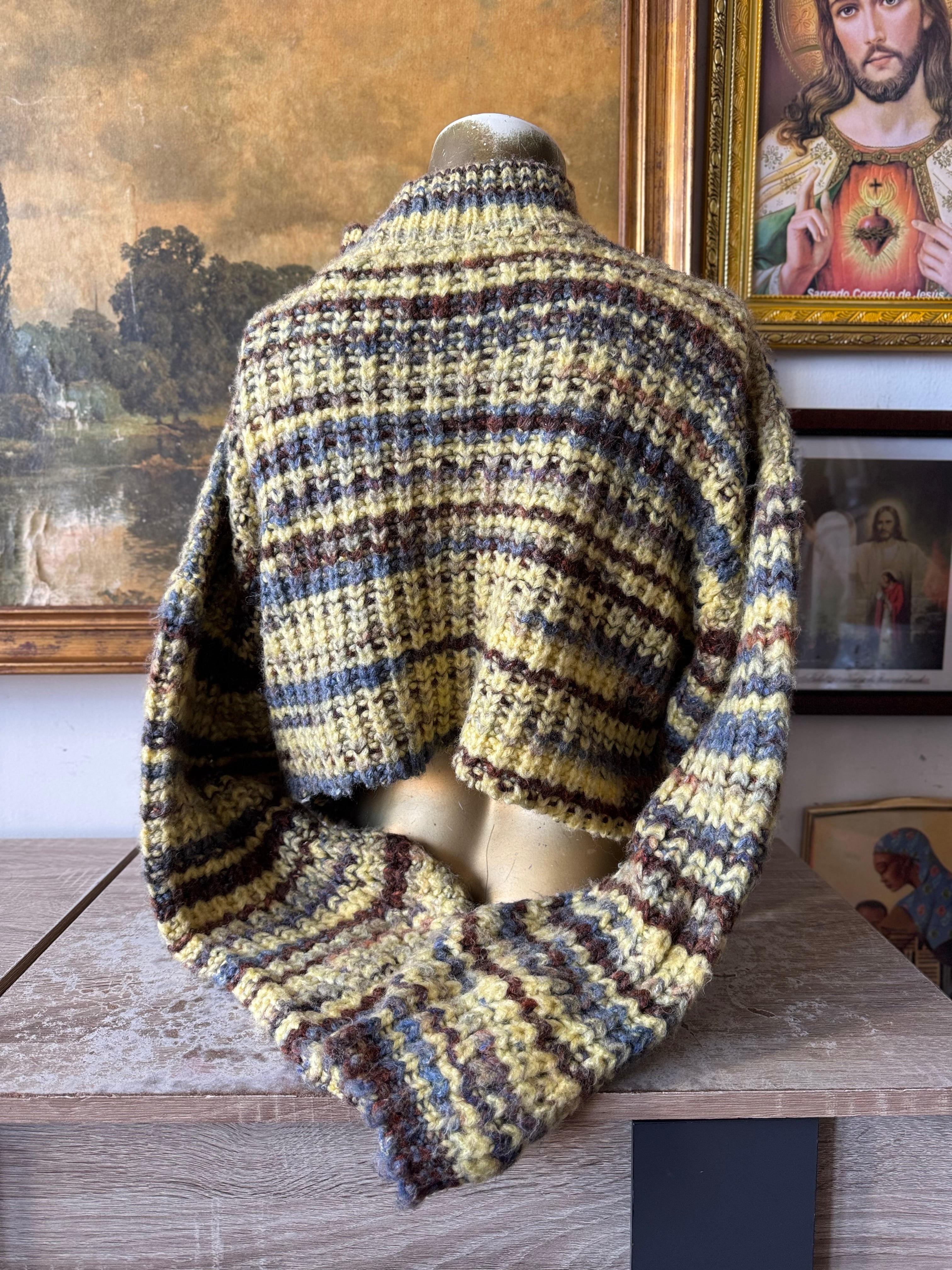 UO Yellow, Brown and Gray Striped Turtle Neck Sweater w Raw Crop Size XS
