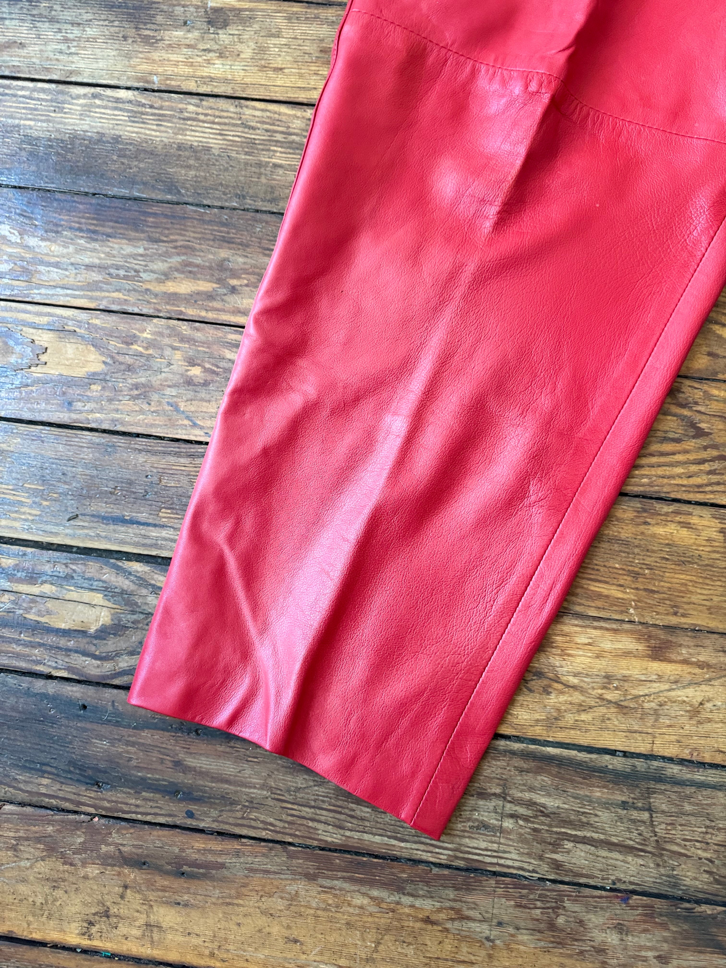 90s Vintage Manart Cherry Red Leather Pants Size 34